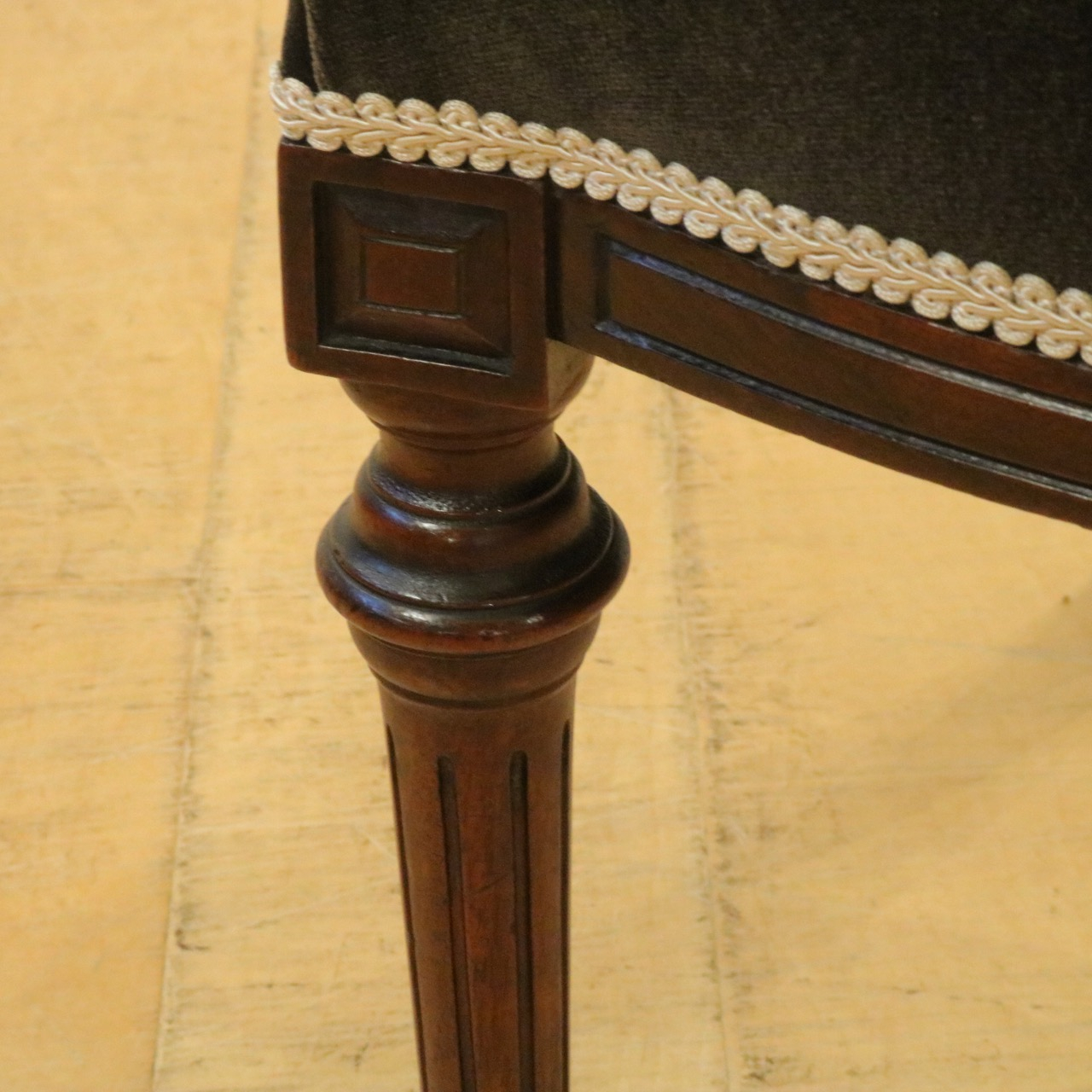 リーディング(縦溝)が施された先細りの脚部は華美過ぎず、それでいてアンティークらしい佇まいを持った美しいデザインです。