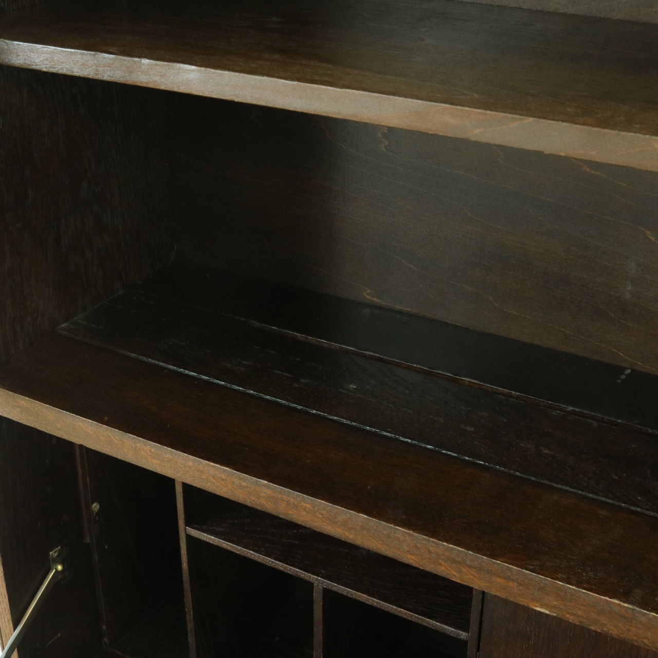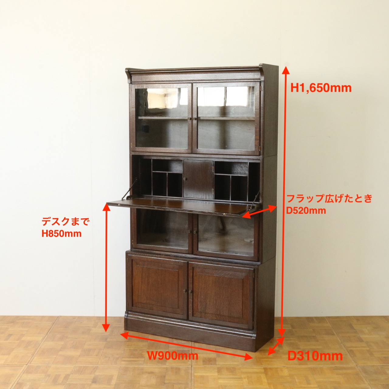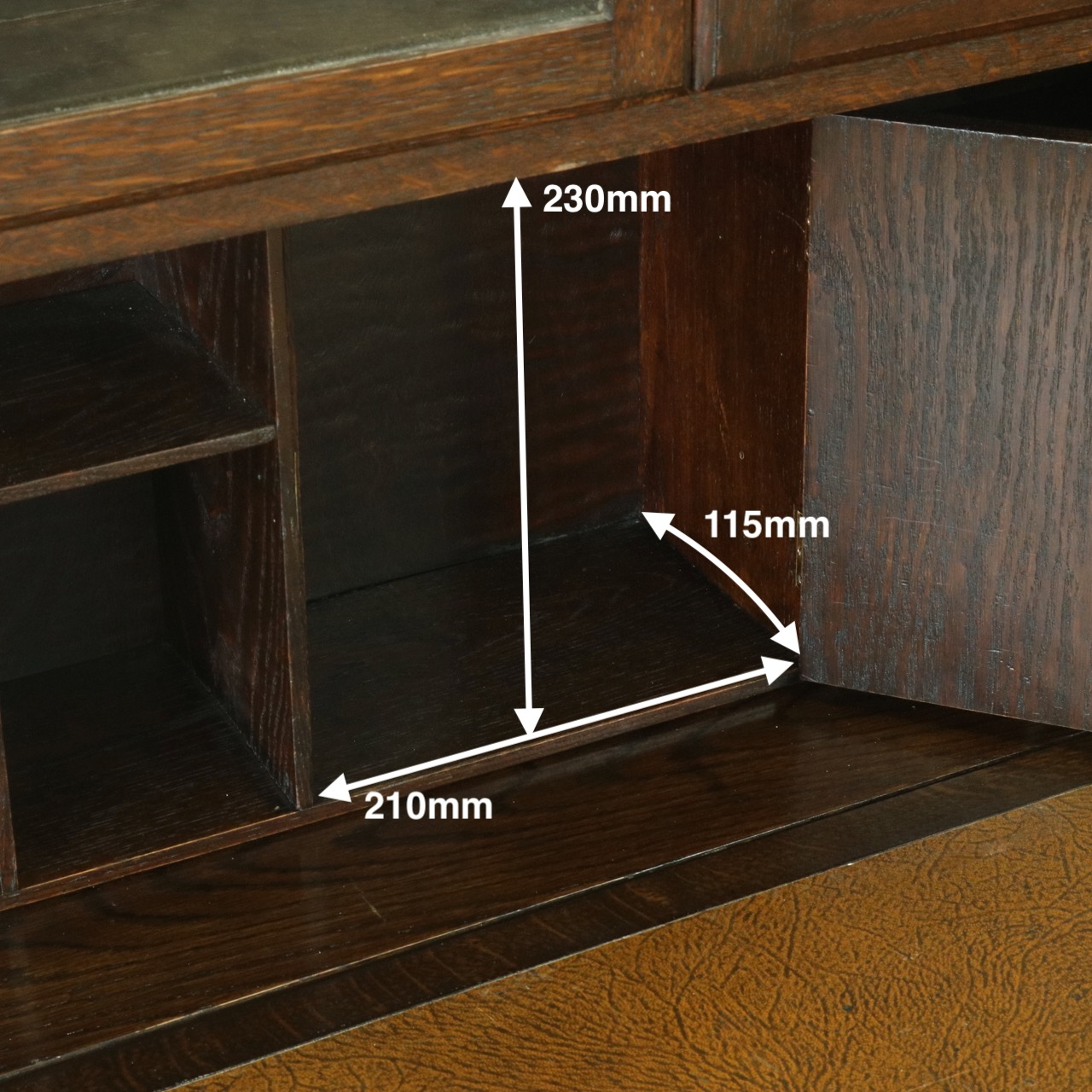 一番上の大きなガラス扉を開けると棚板で2段に分かれたブックケース収納。