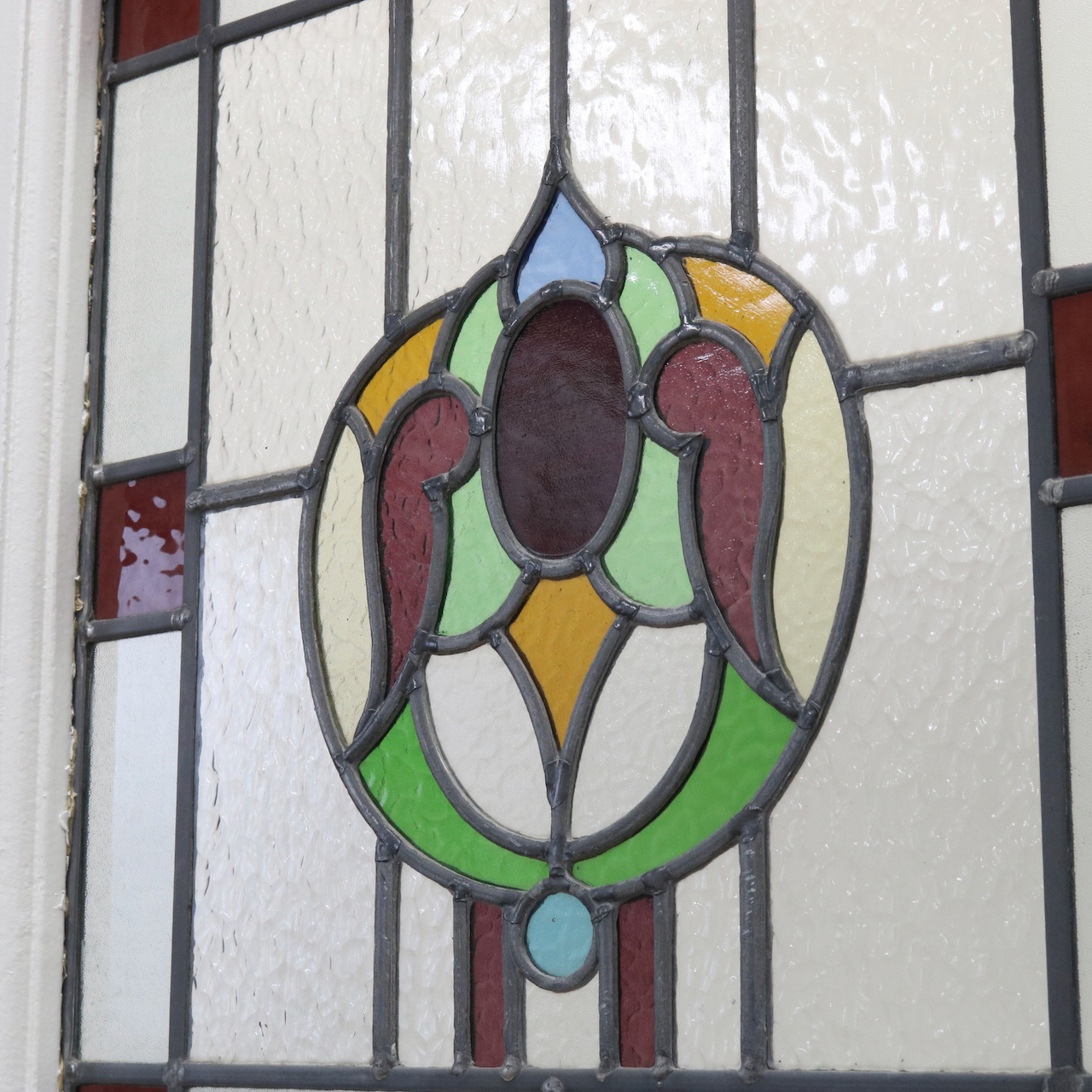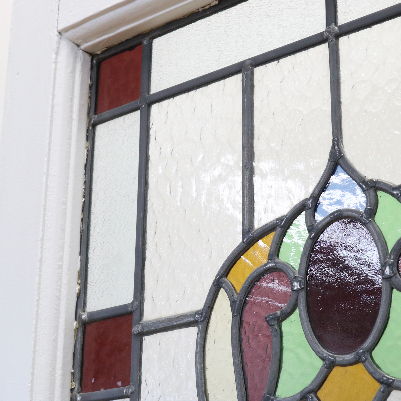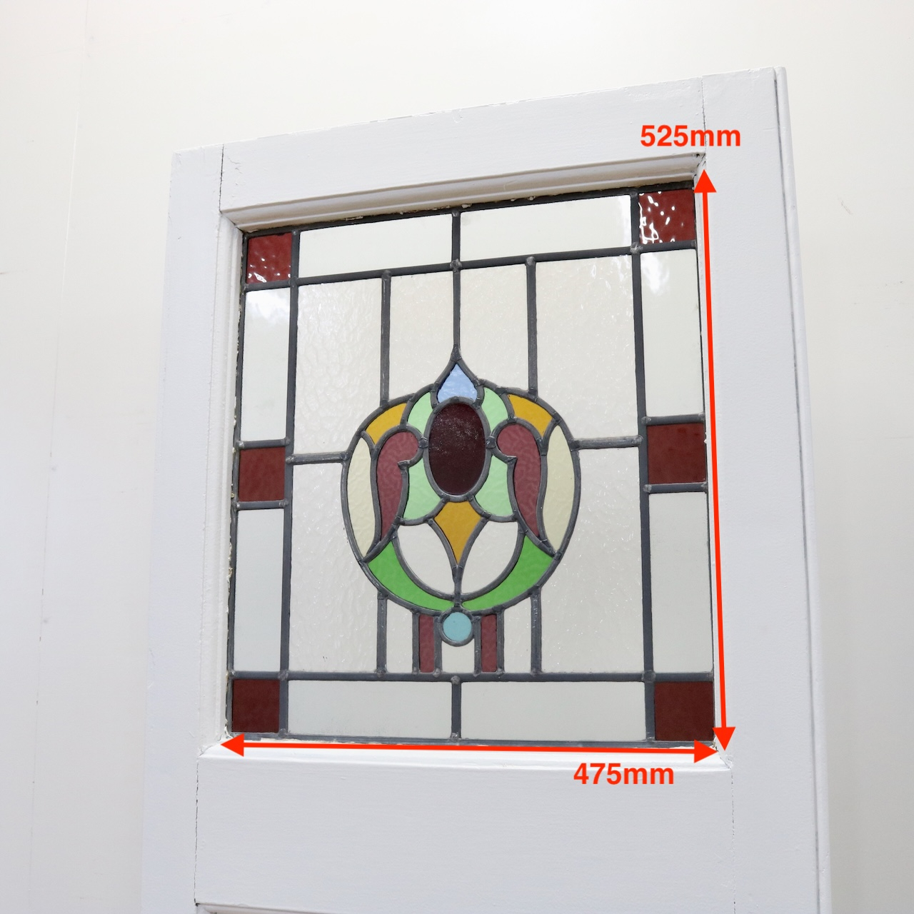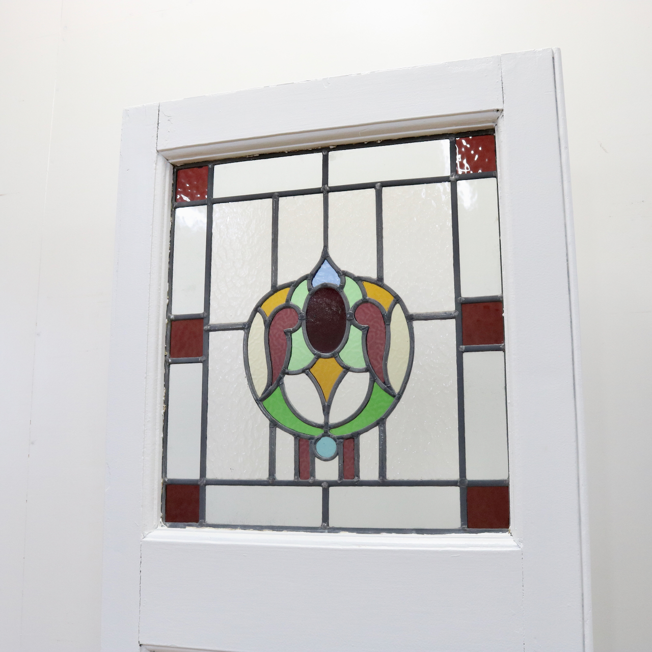 ステンドグラスの入ったアンティークのドア。カラフルでクラシックなステンドグラスは光を通すと美しい存在感を示します。ノブ等は付属しておりません。