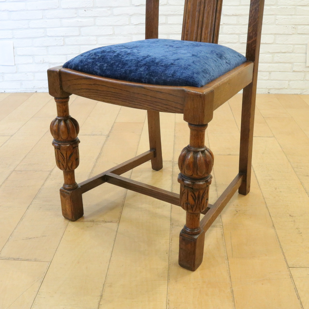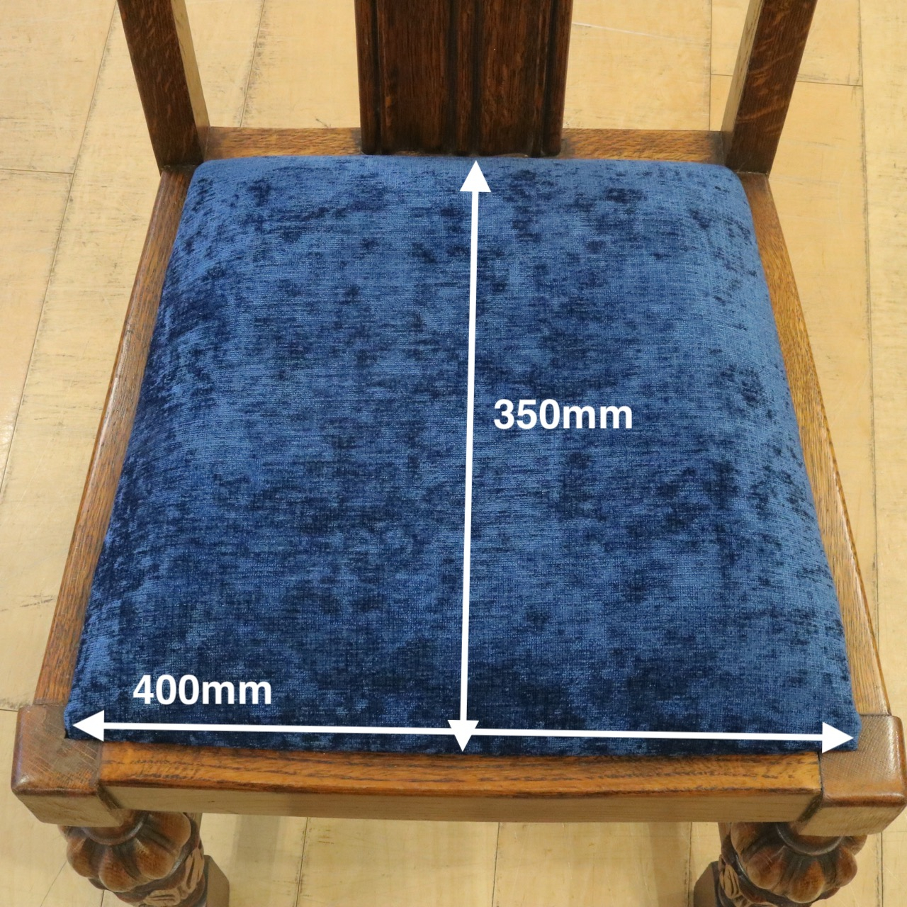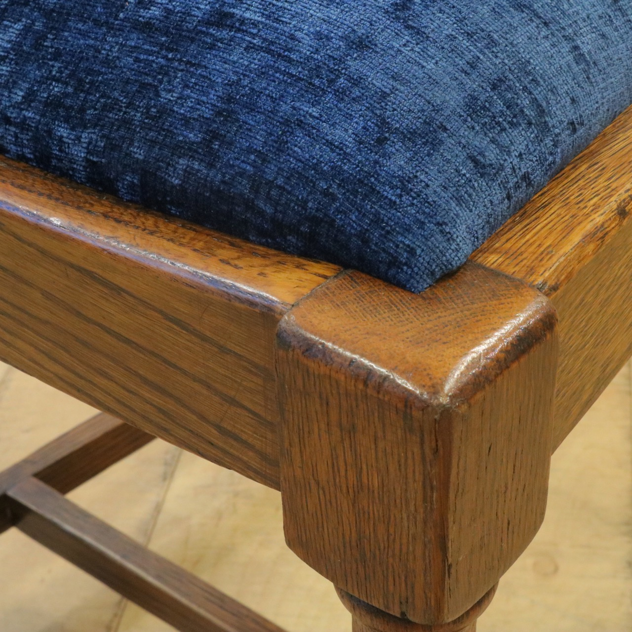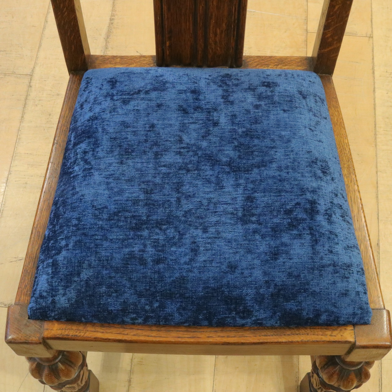 座面は鮮やかなブルーのモケット生地で張り替えました。