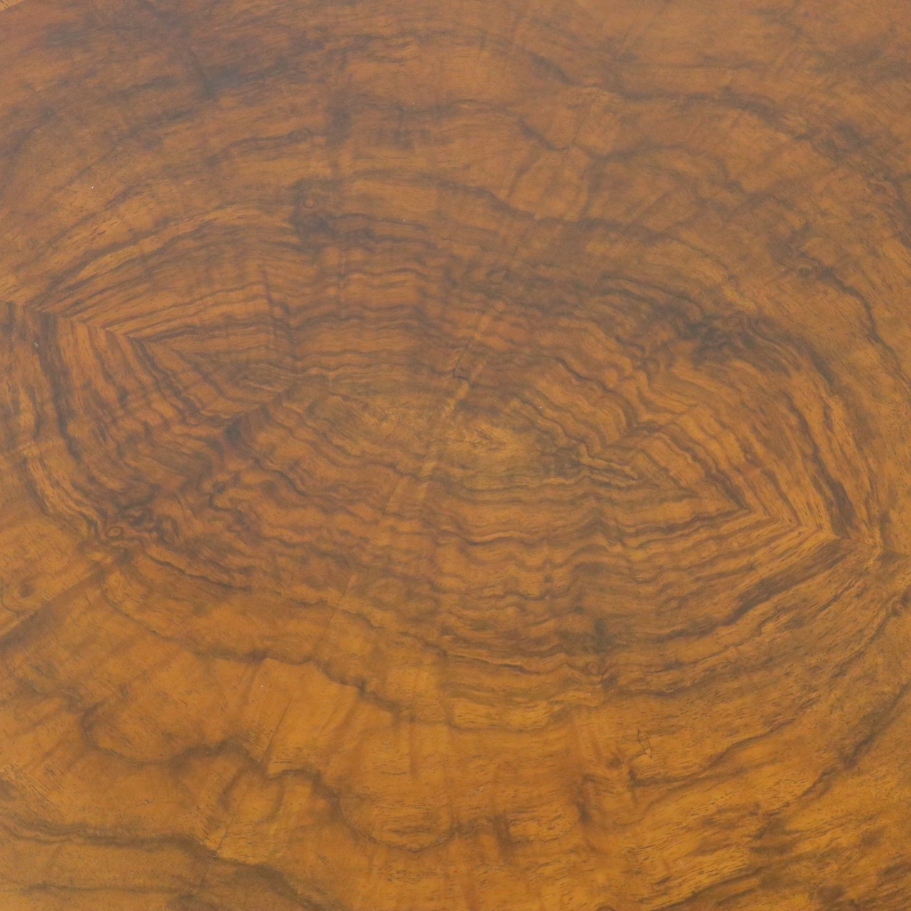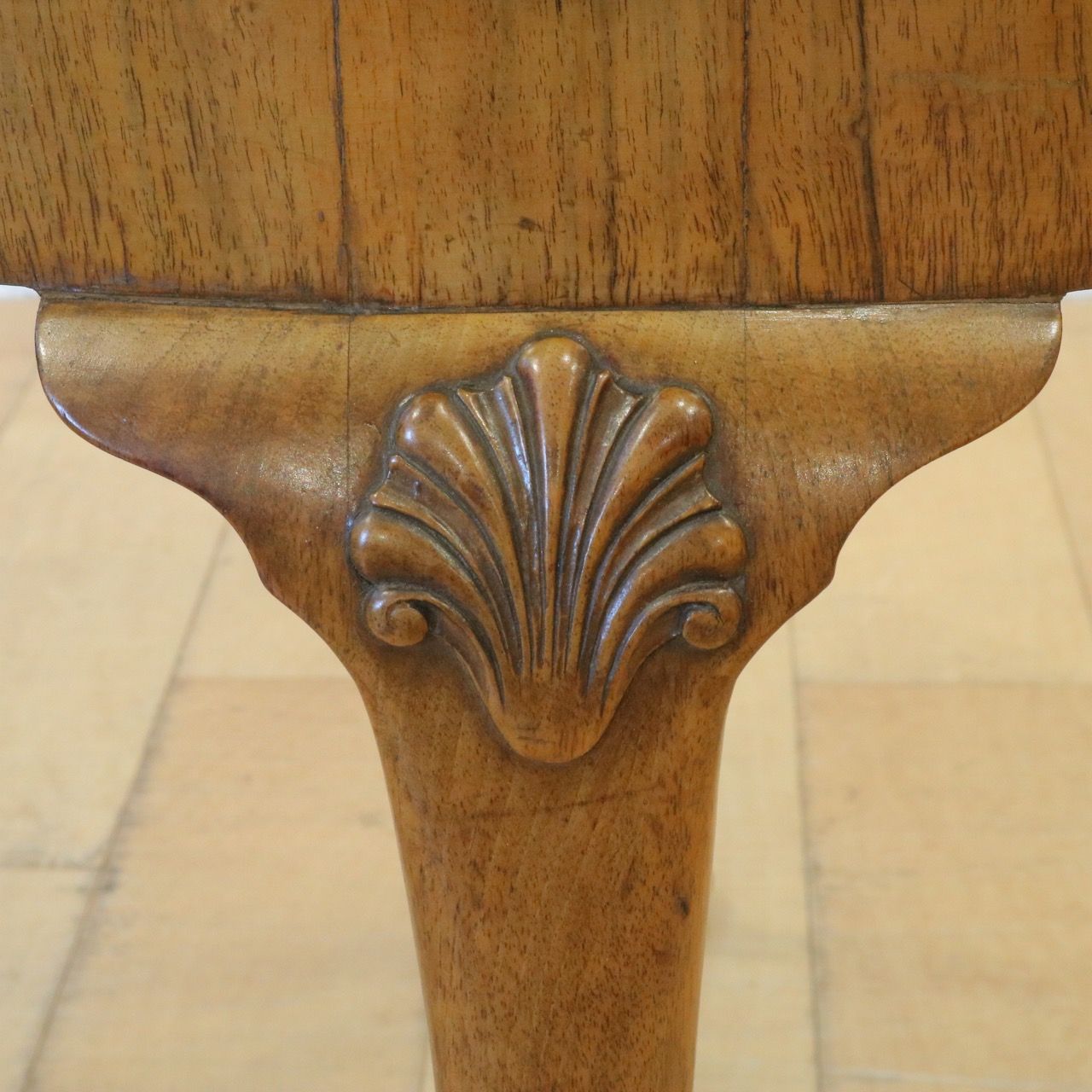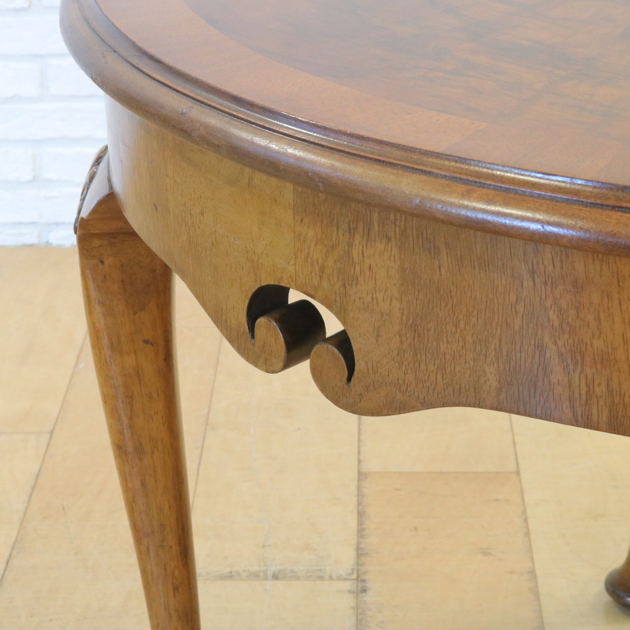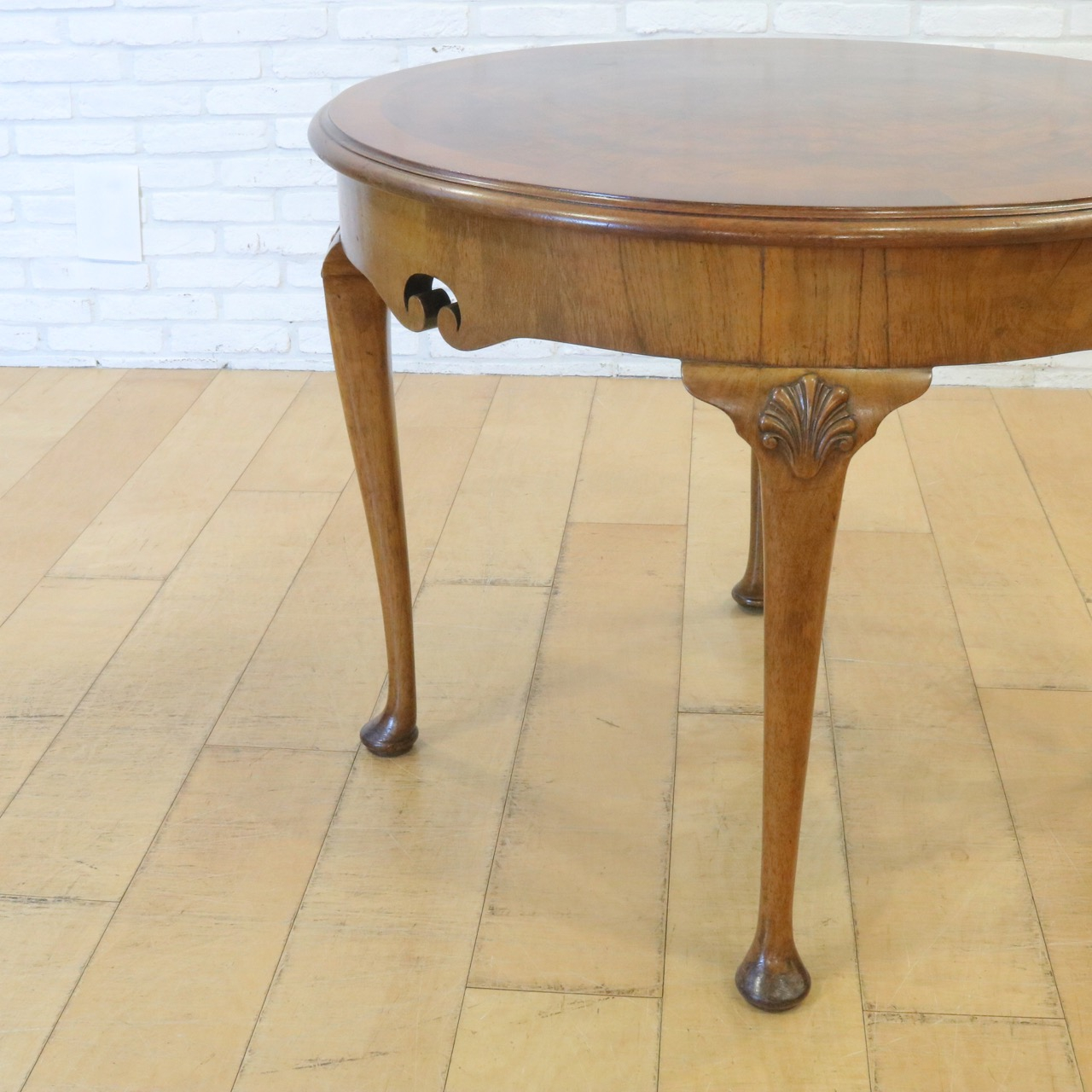 ラウンドの天板にウォールナット らしい美しい杢目を堪能できます。カブリオールレッグに貝殻の装飾が優雅なポイントです。