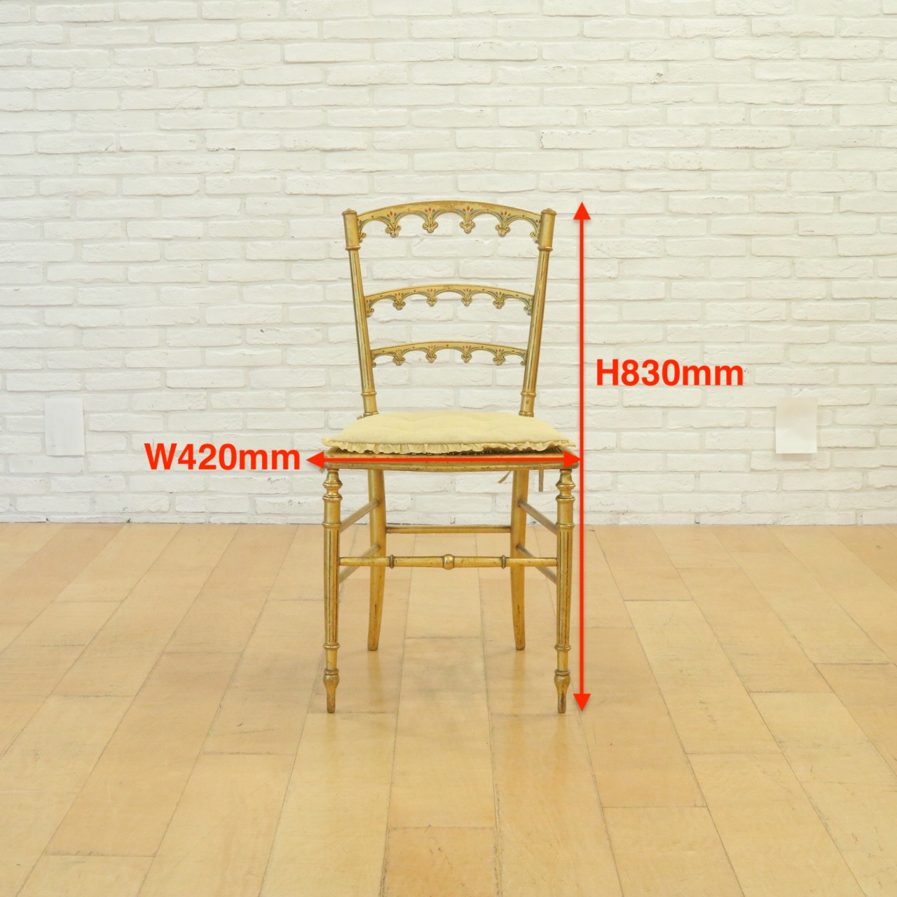 ペイントの掠れ具合も趣深く、長い年月を経たアンティークのみが纏う美しさと特有の存在感を放つチェアーです。