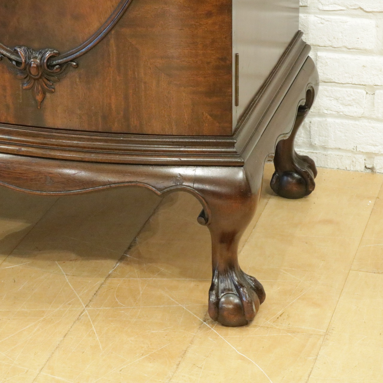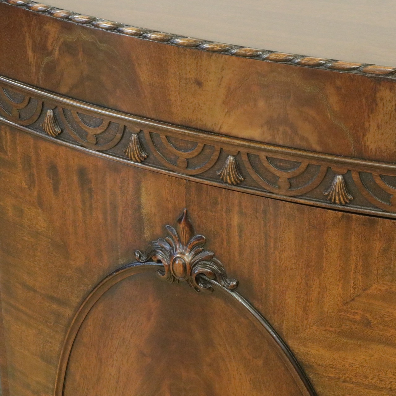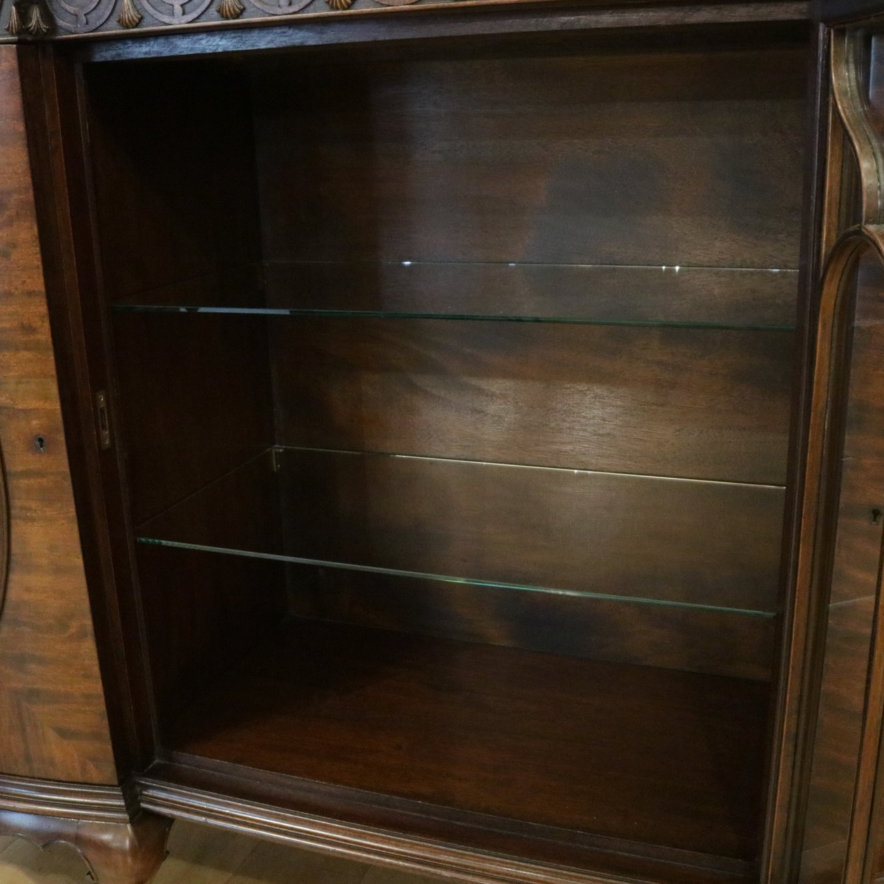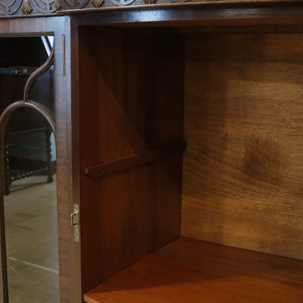 マホガニーの杢目も美しくあらわれ繊細な意匠がポイントです。