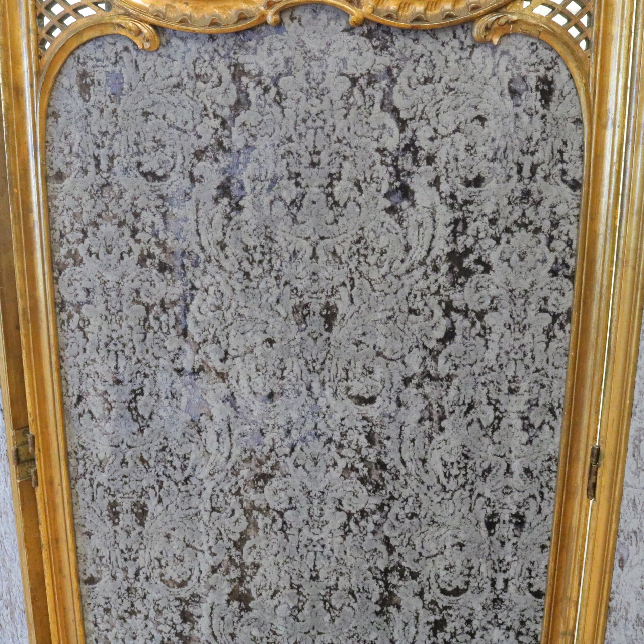 トップにはロカイユのレリーフが印象的に配され、ボタニカルモチーフの装飾が流れるように全体を覆っています。
