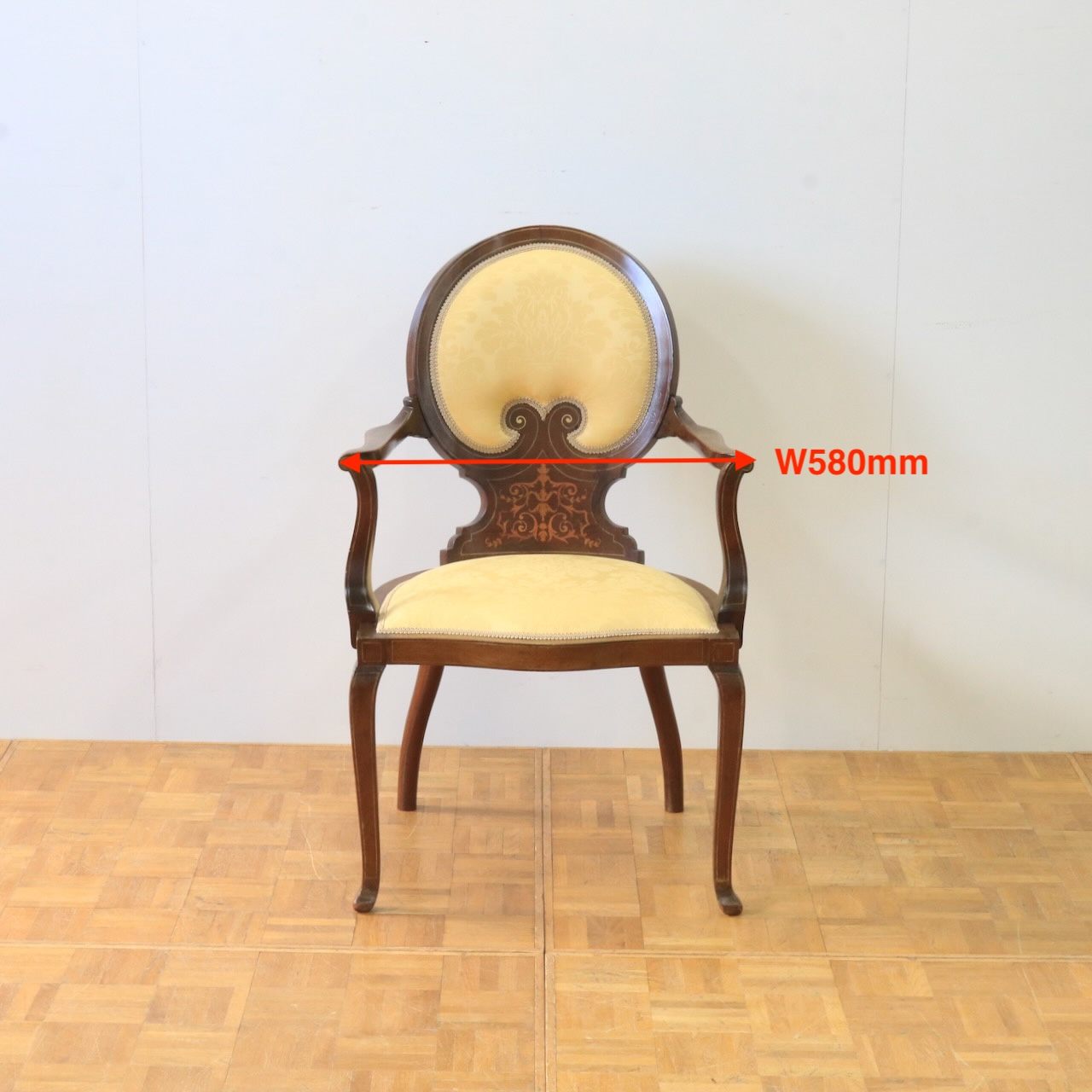 インレイ細工は全体に施され、細部まで美しく仕上げらたアームチェアーです。