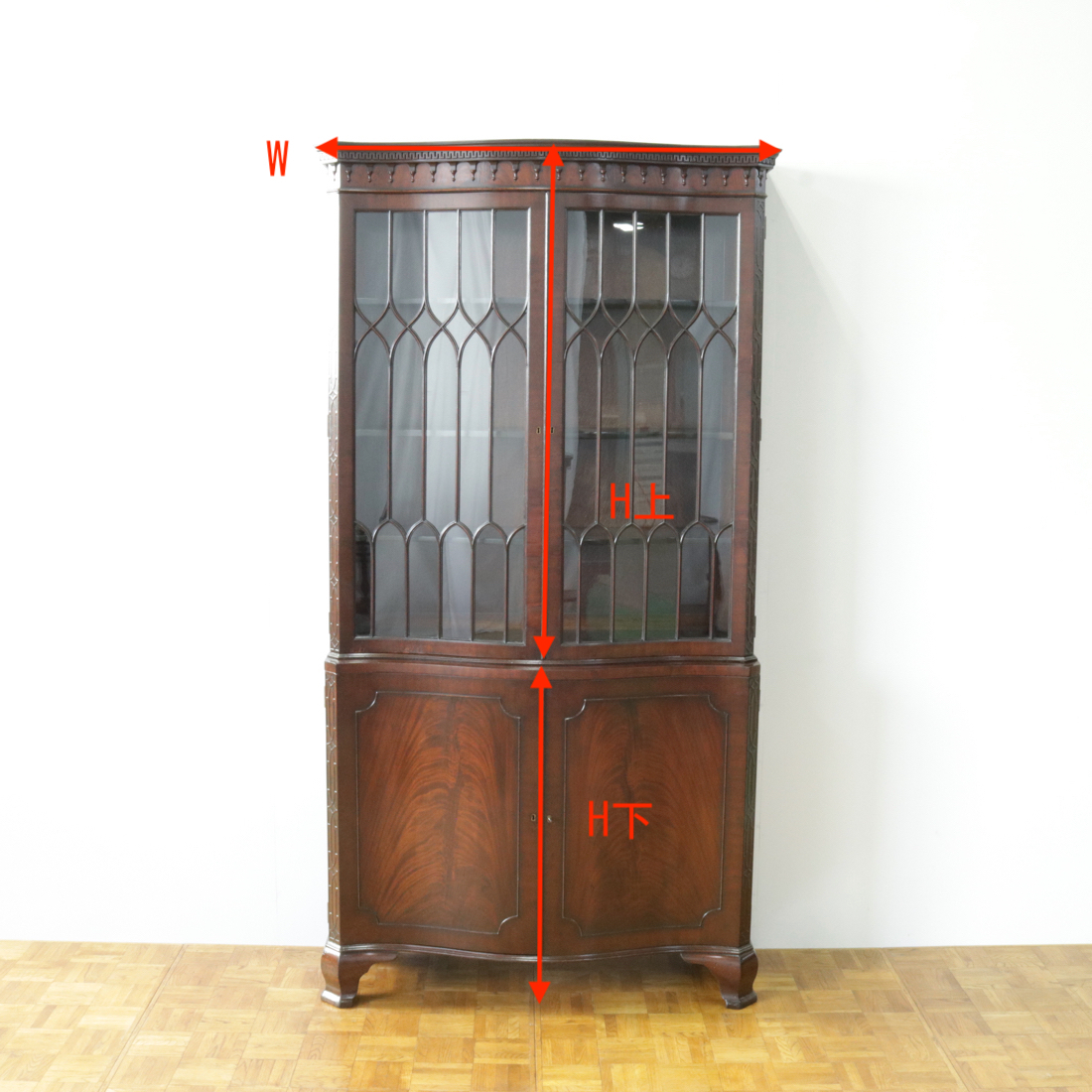 繊細な木桟デザインのガラス扉。曲線を取り入れた手が込んだ造りです。中に飾るものも美しく見えます。