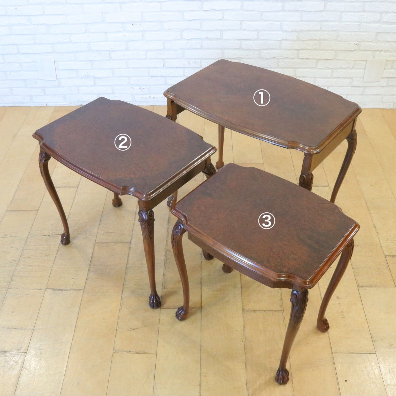3つのサイズ違いのテーブルがワンセットになっています。