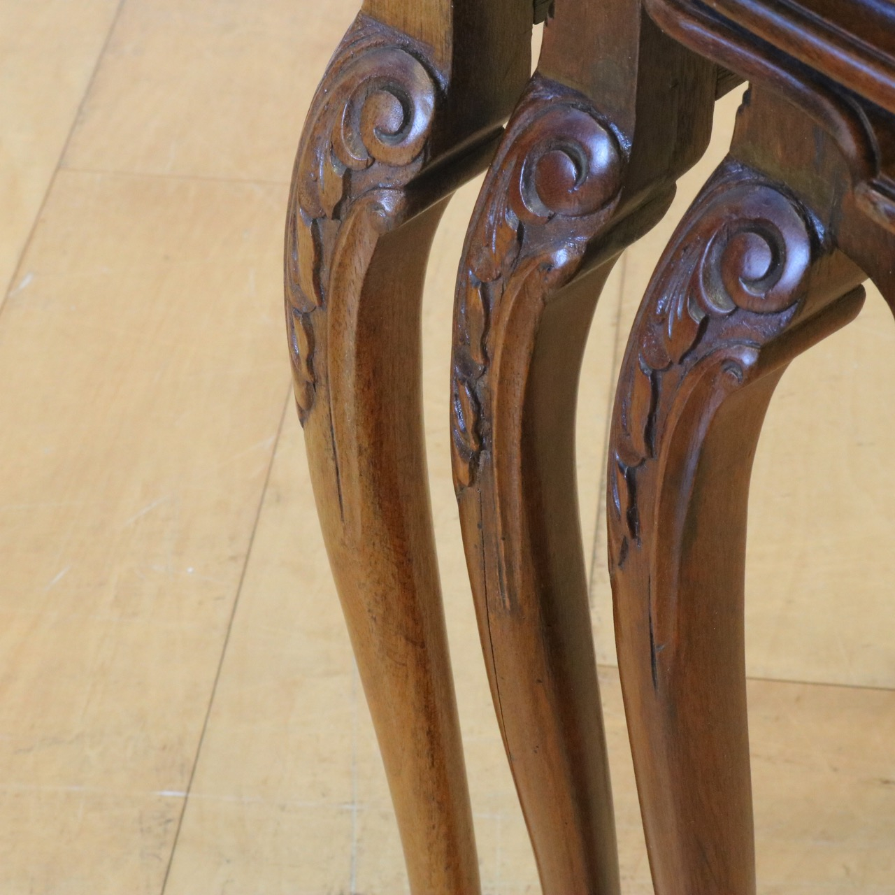 アカンサスなど美しい彫刻がポイントに施されたアンティークらしさも魅力的。