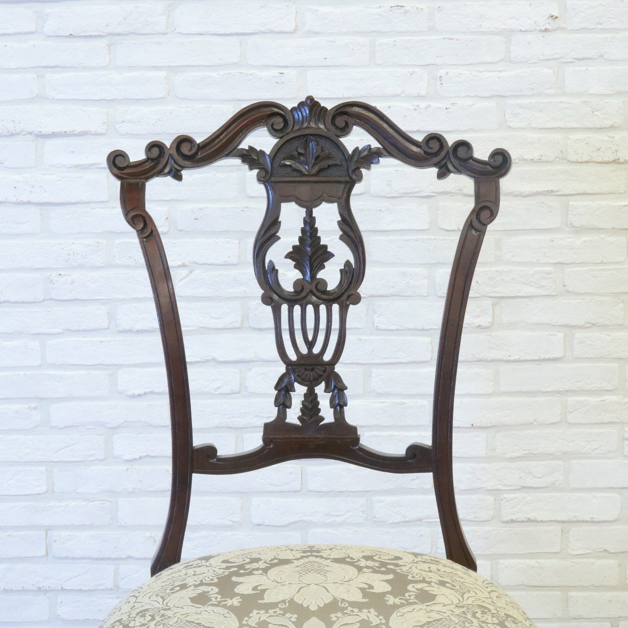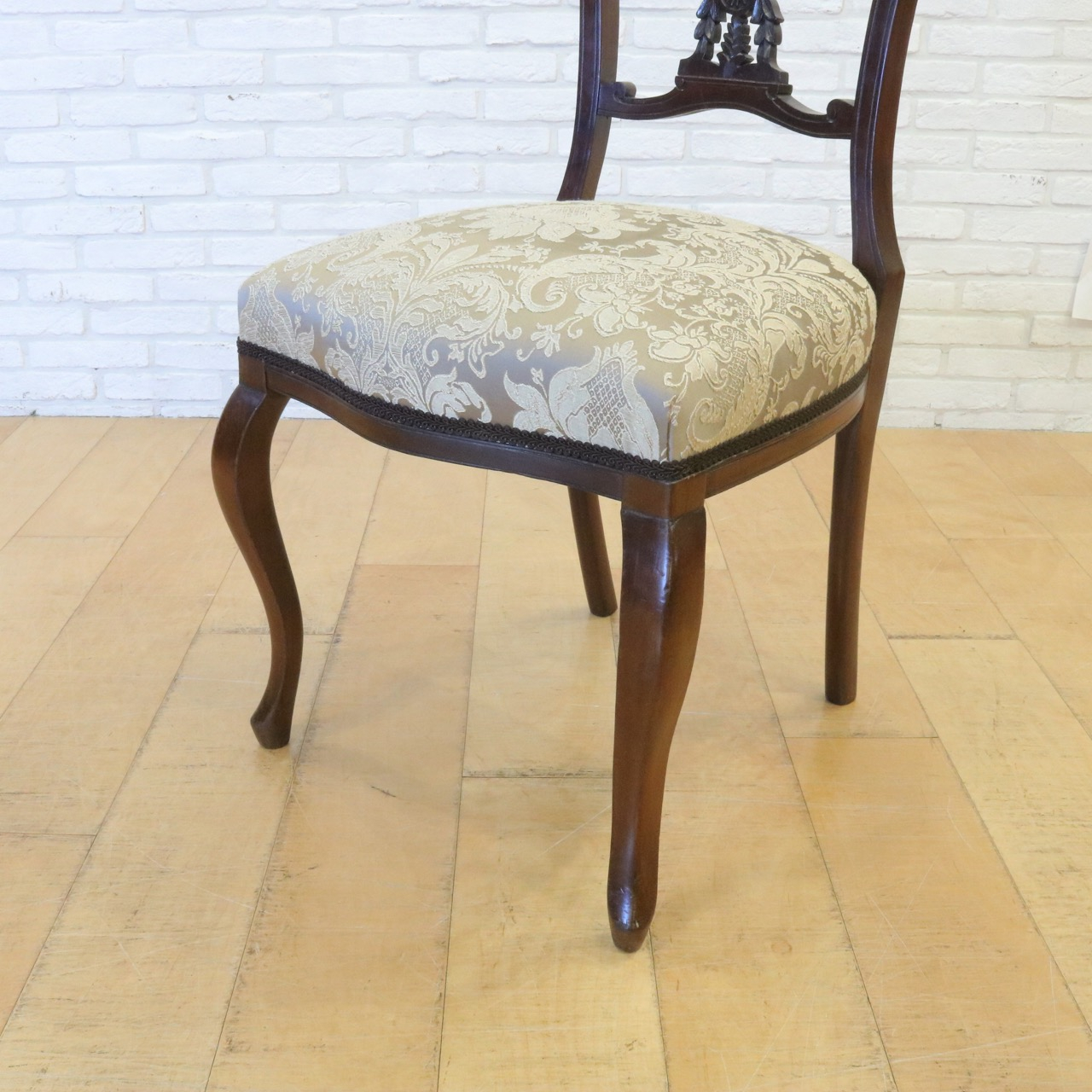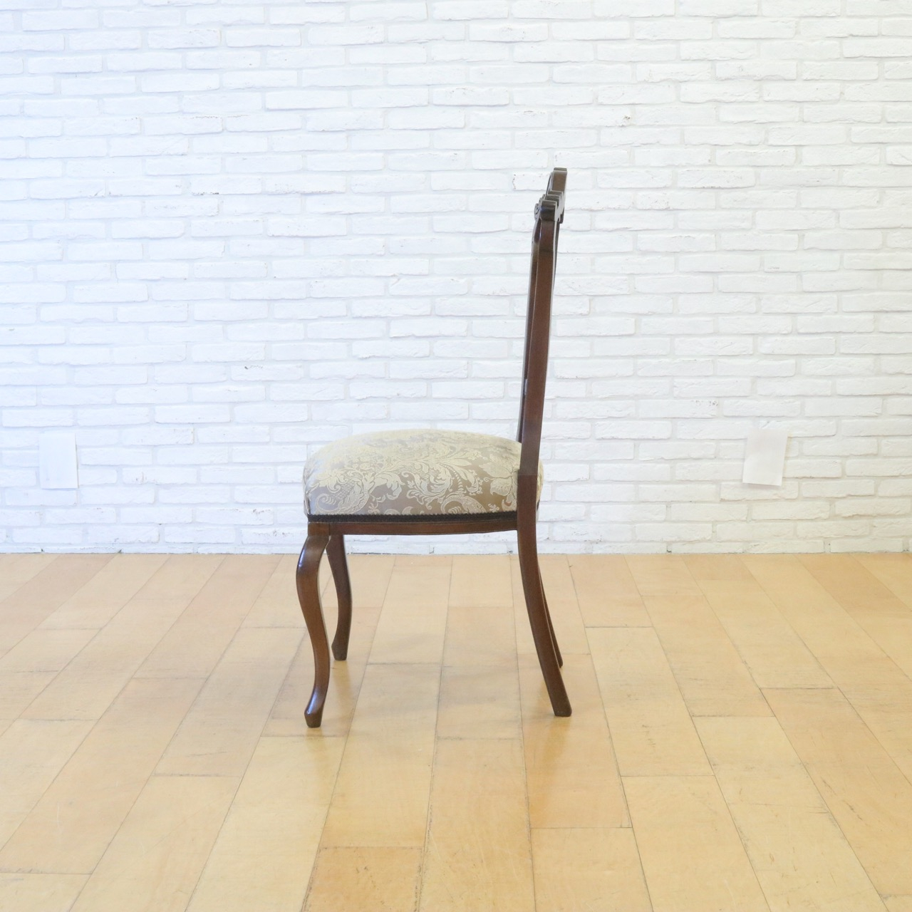背もたれの彫刻が華やかで、アンティークらしい佇まいです。