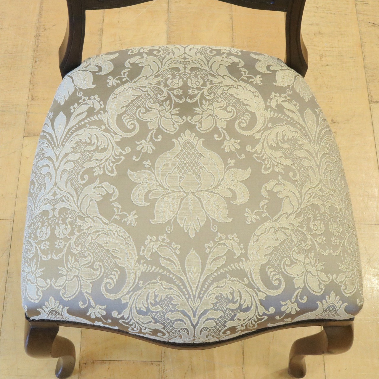 座面はクラシックなダマスク柄の生地で張り替えました。