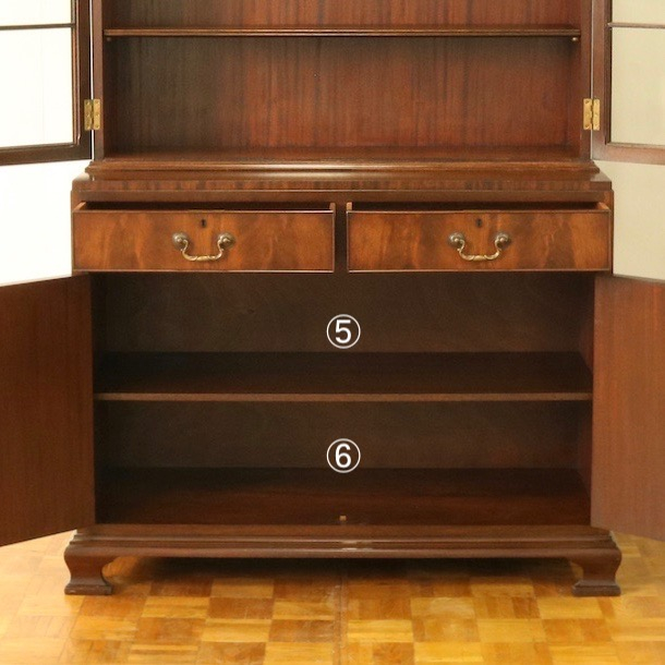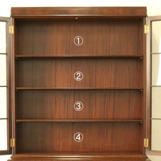 こちらのブックケースも、質の良いマホガニー材を使用し、しっかりとした造りになっています。