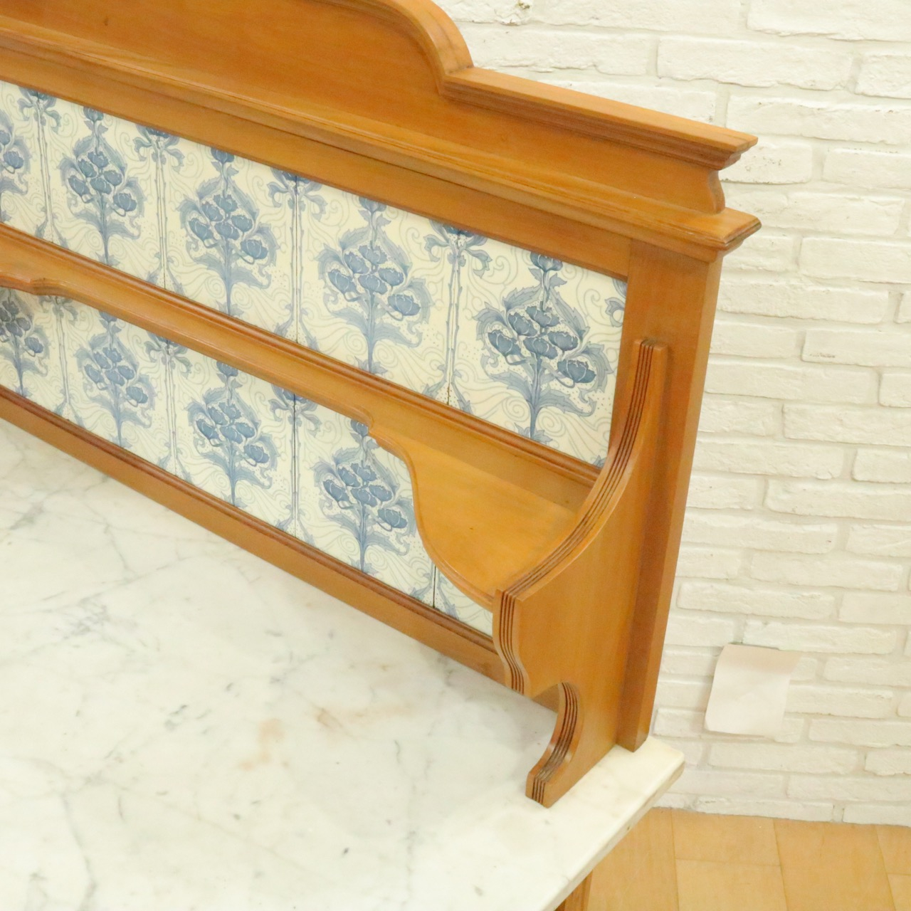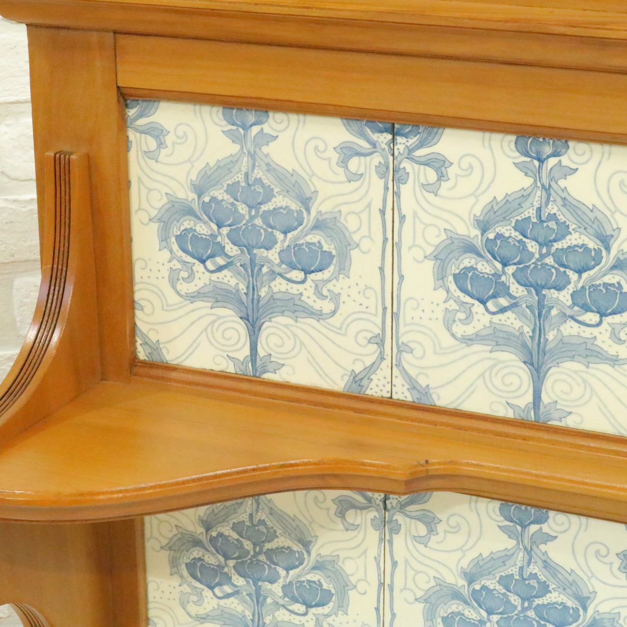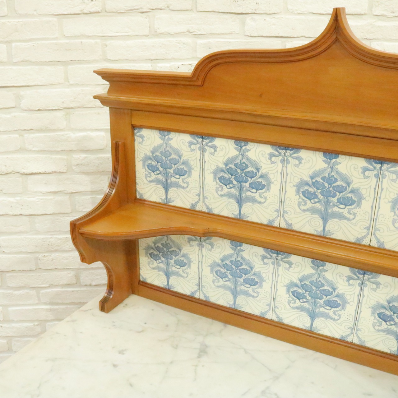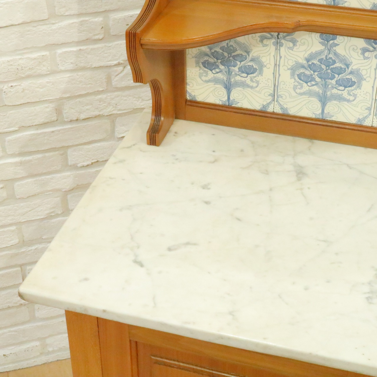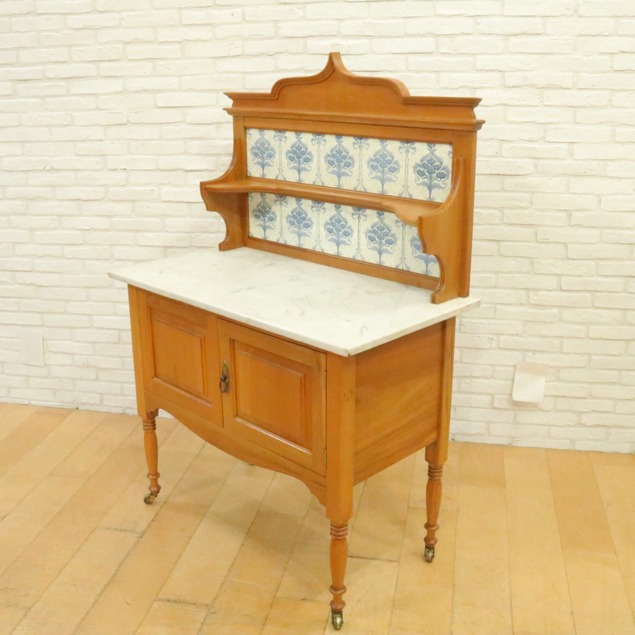 白地にライトブルーの爽やかなタイルが一際目を引くウォッシュハンドスタンドです。