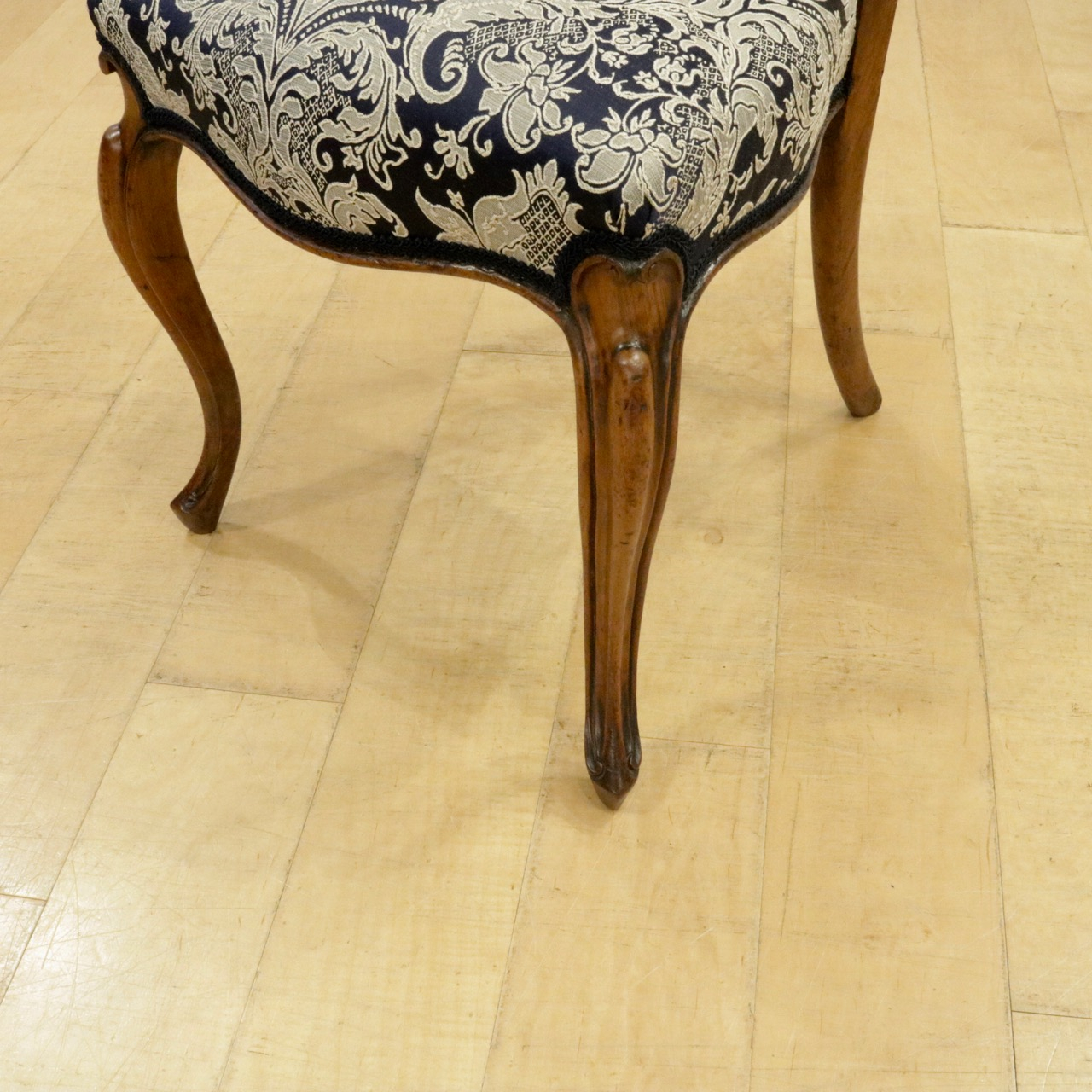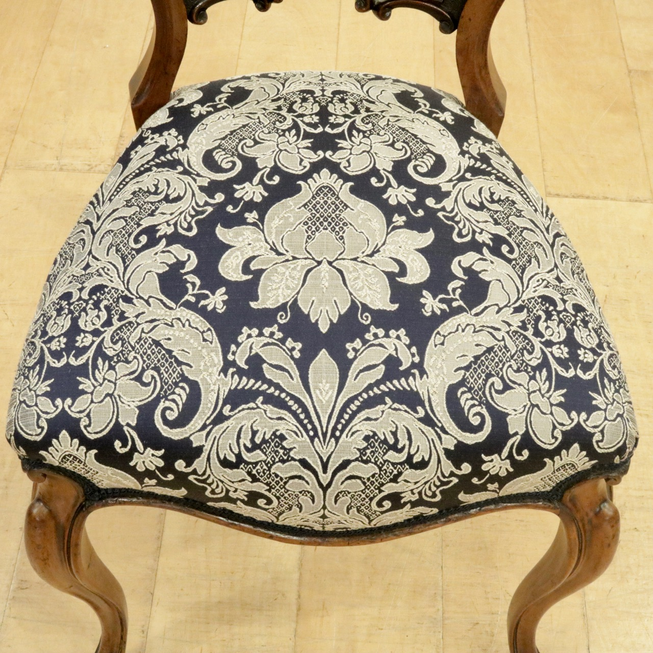 座面は高級感のあるダマスク柄の織り生地で張り替えました。
