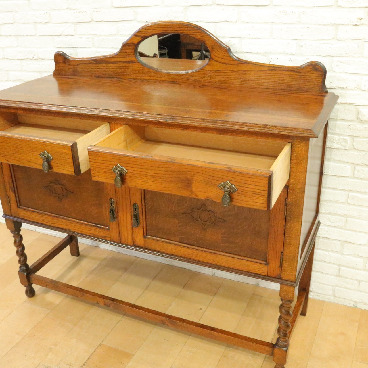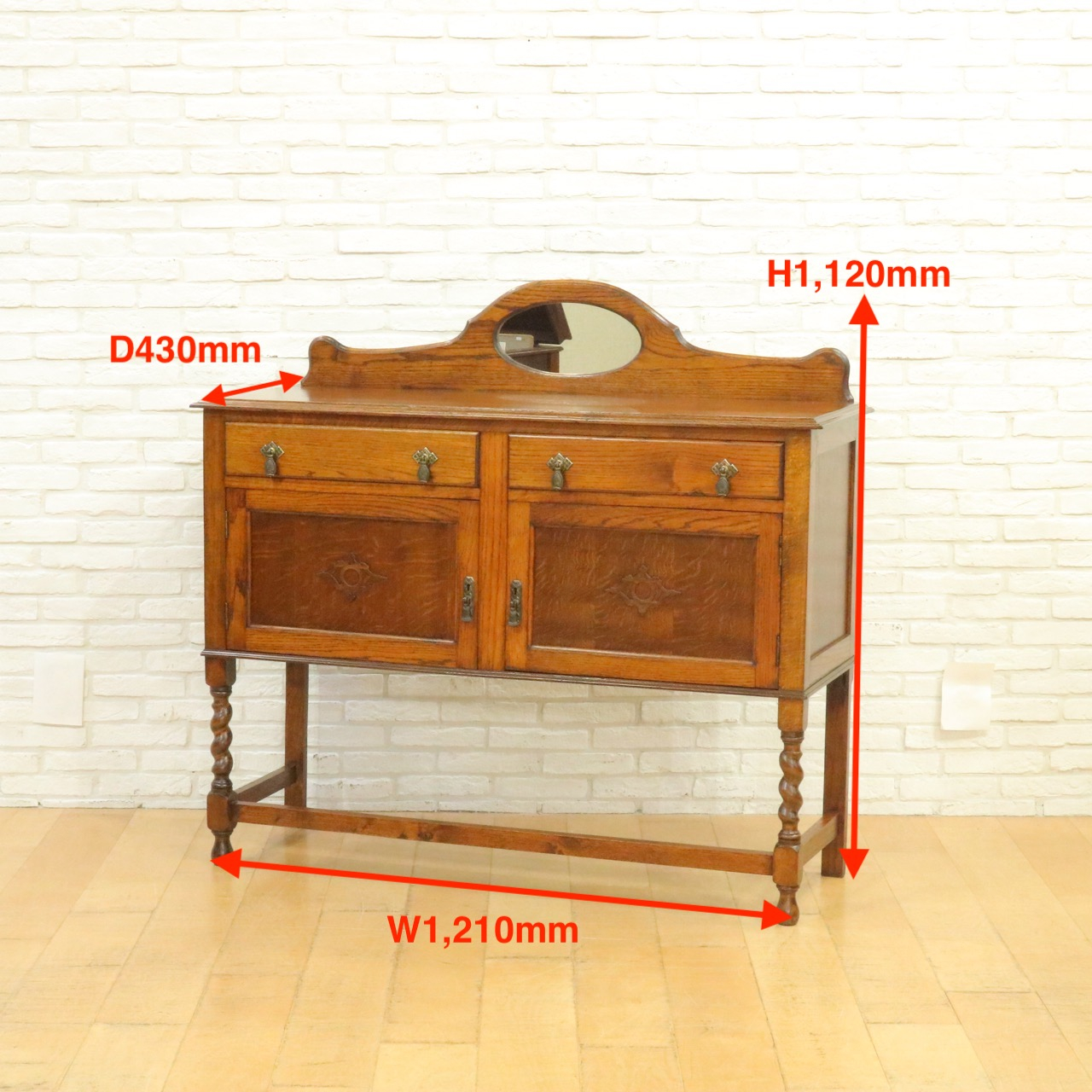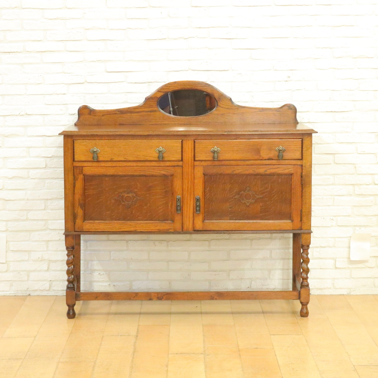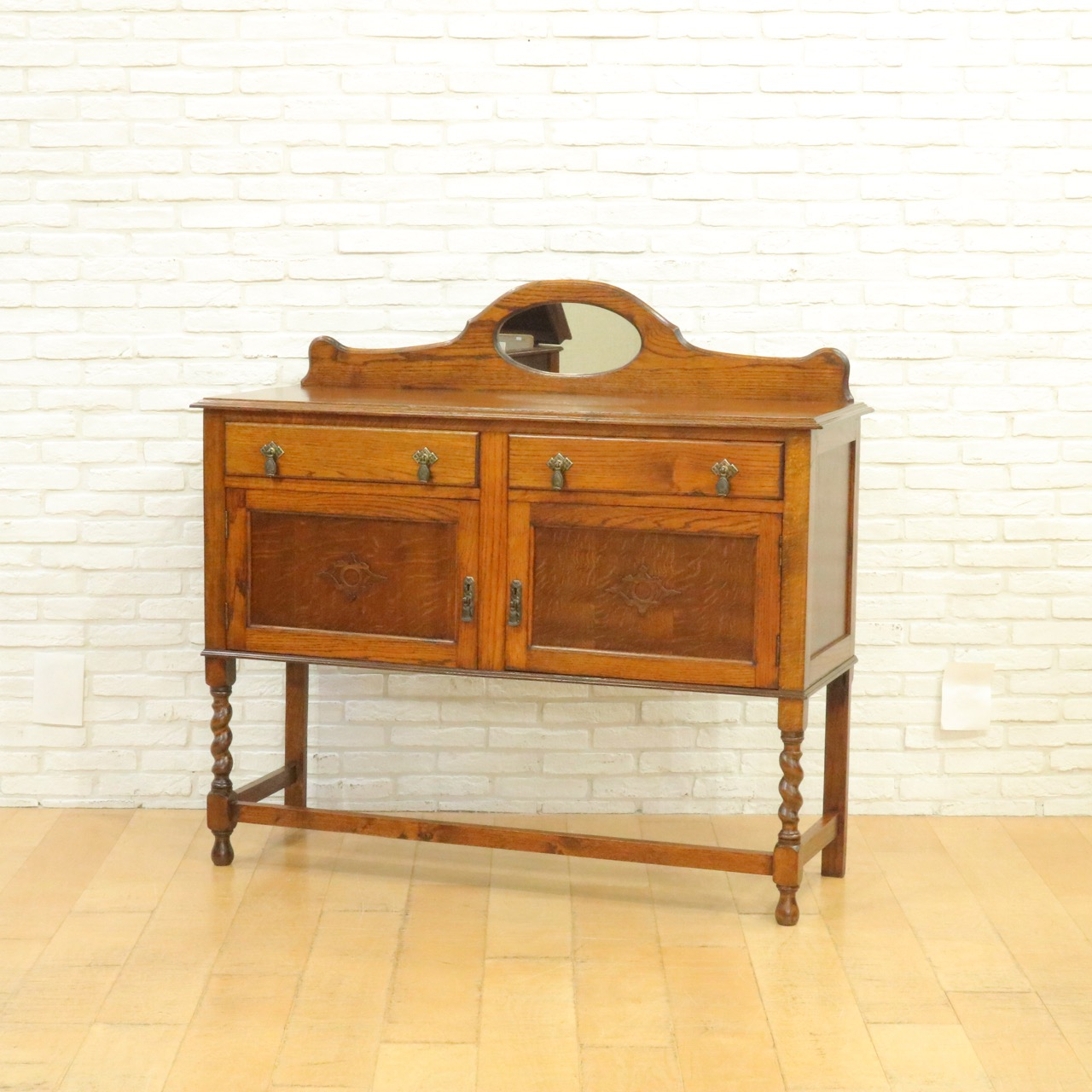 配送料の目安 ▶︎1930年代、オークのミラーバックサイドボード。