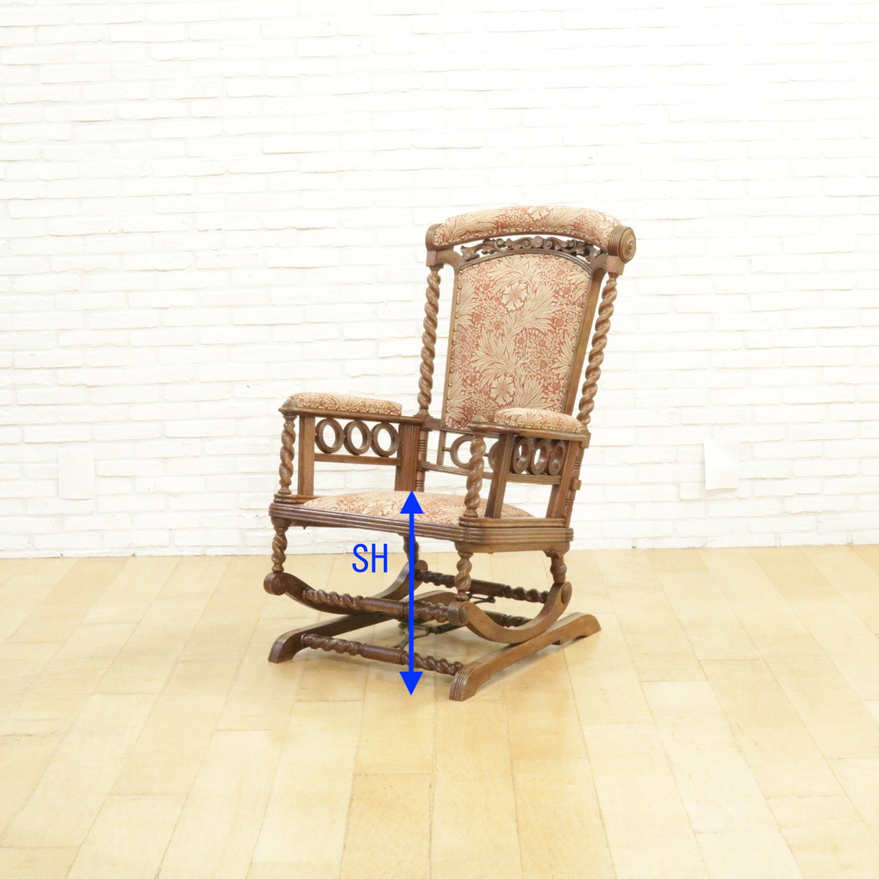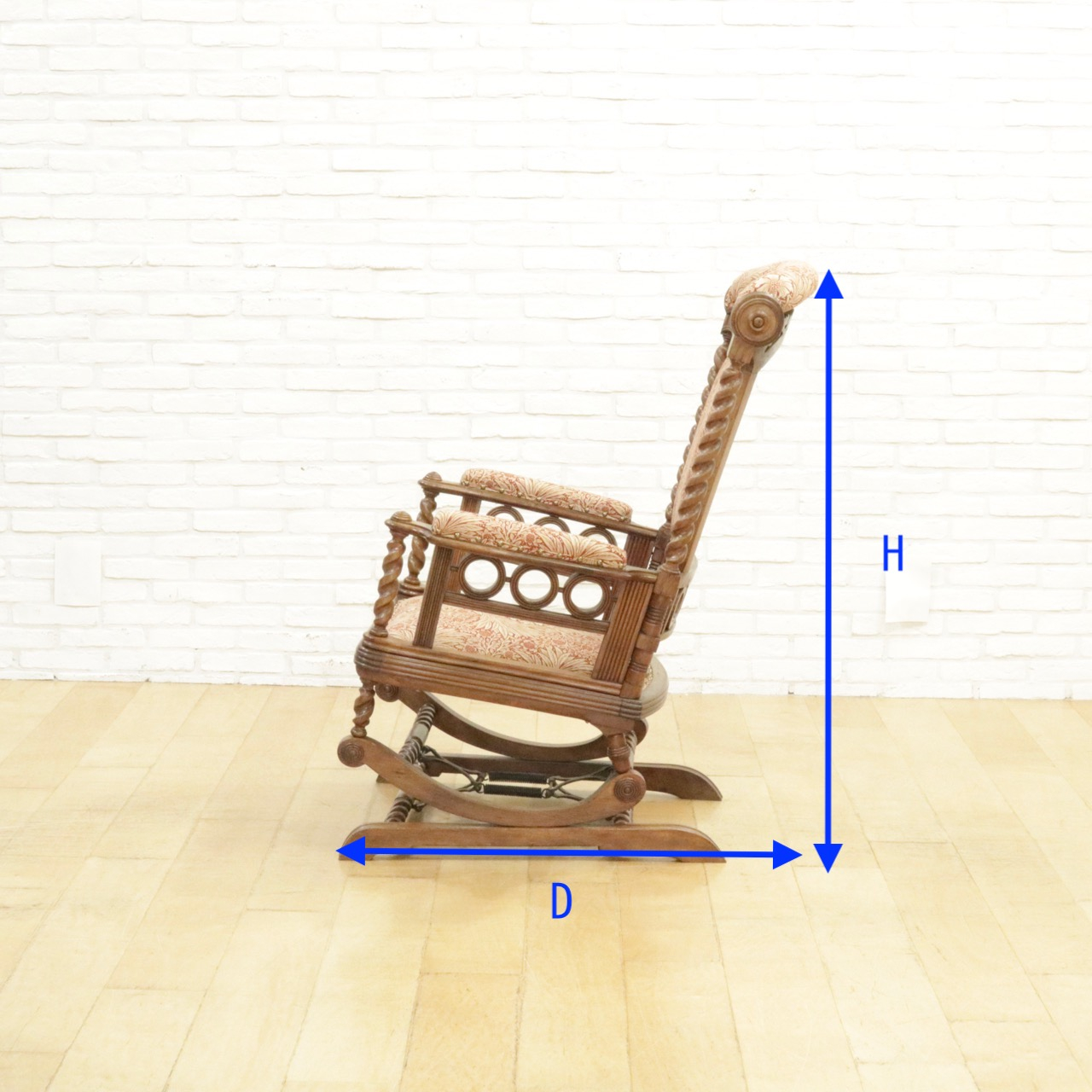 配送料の目安 ▶︎1910年代、ビーチ材のロッキングチェアー。繊細な挽物や彫刻が組み合わされた美しいデザイン。座面が緩やかに揺れるゆったりとした座り心地をお楽しみいただけます。