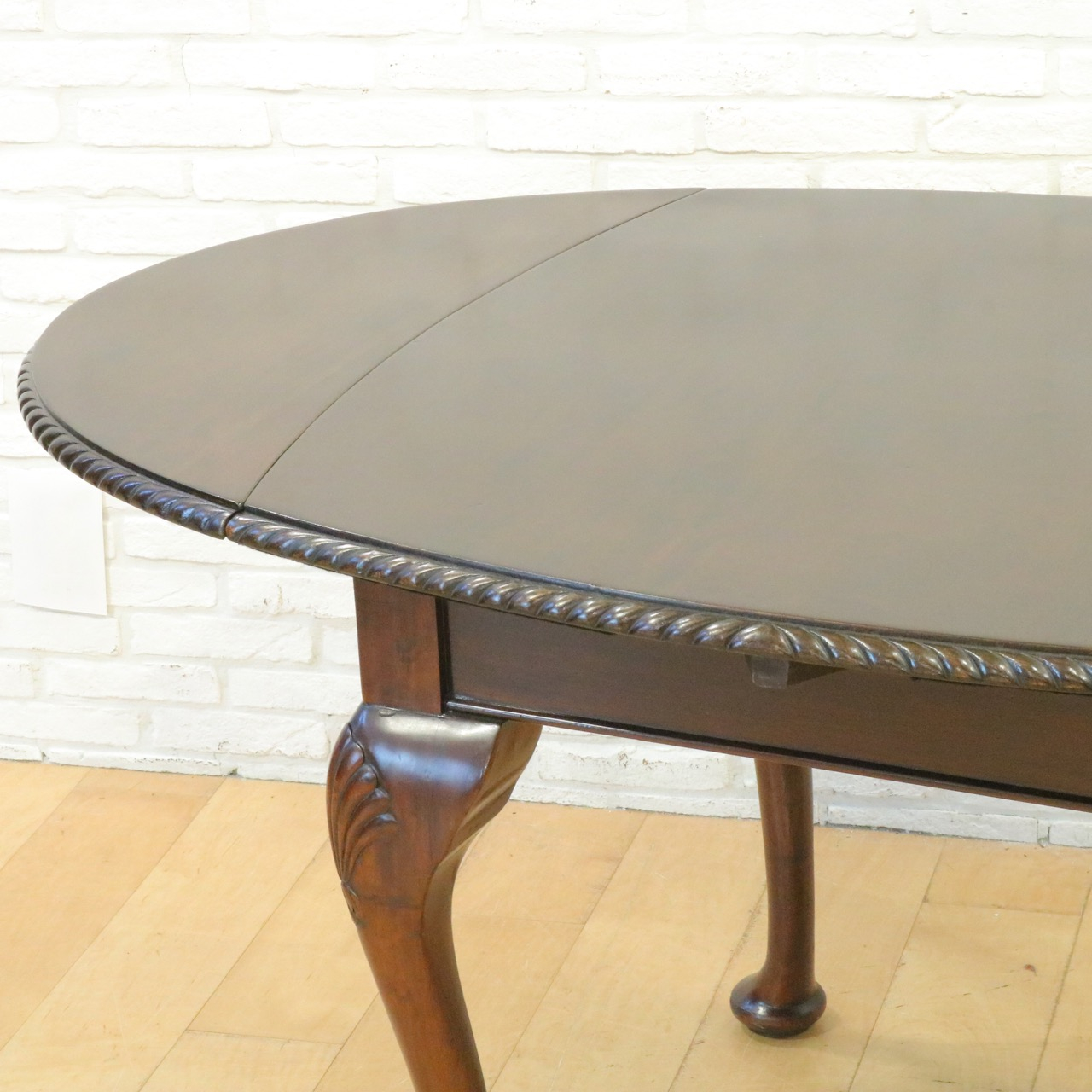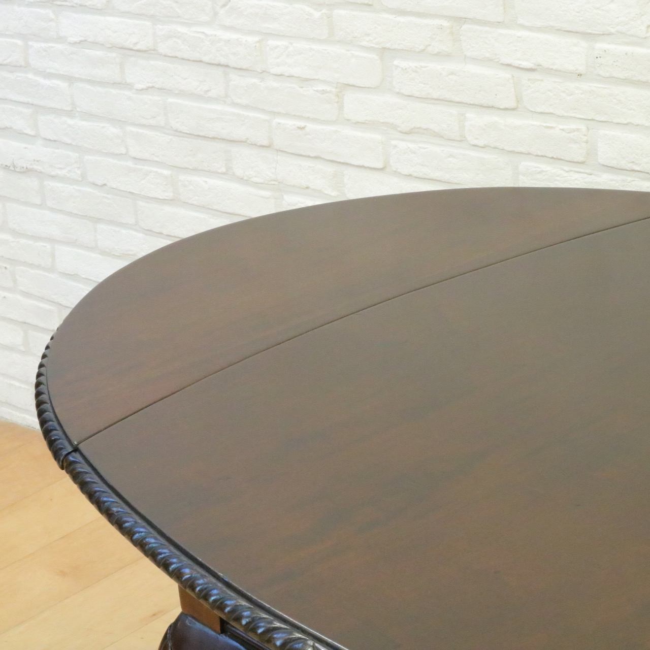 珍しいオーバル型の天板で、縁はガドルーニングが施されています。
