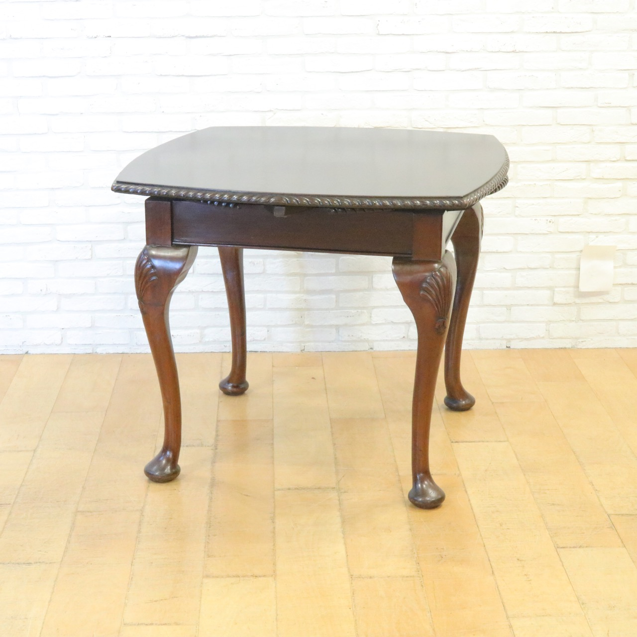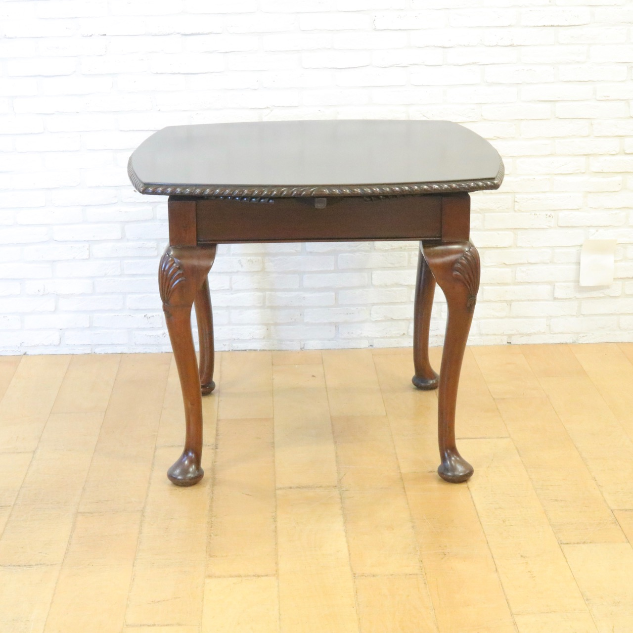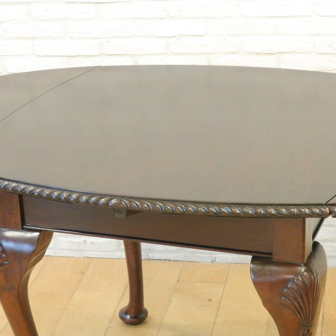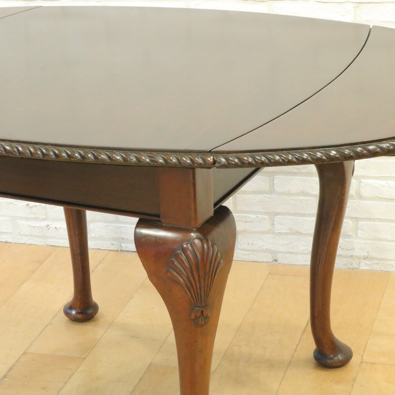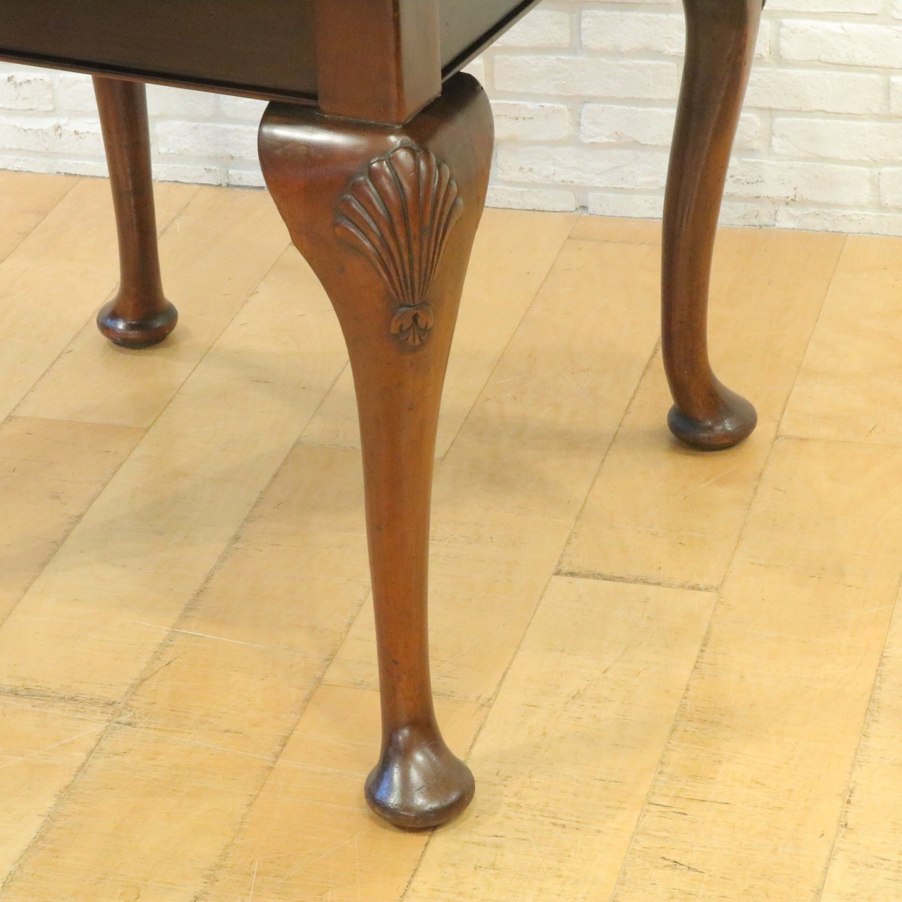 優雅に貝殻が施されたカブリオールレッグ の脚元で優雅な佇まい。