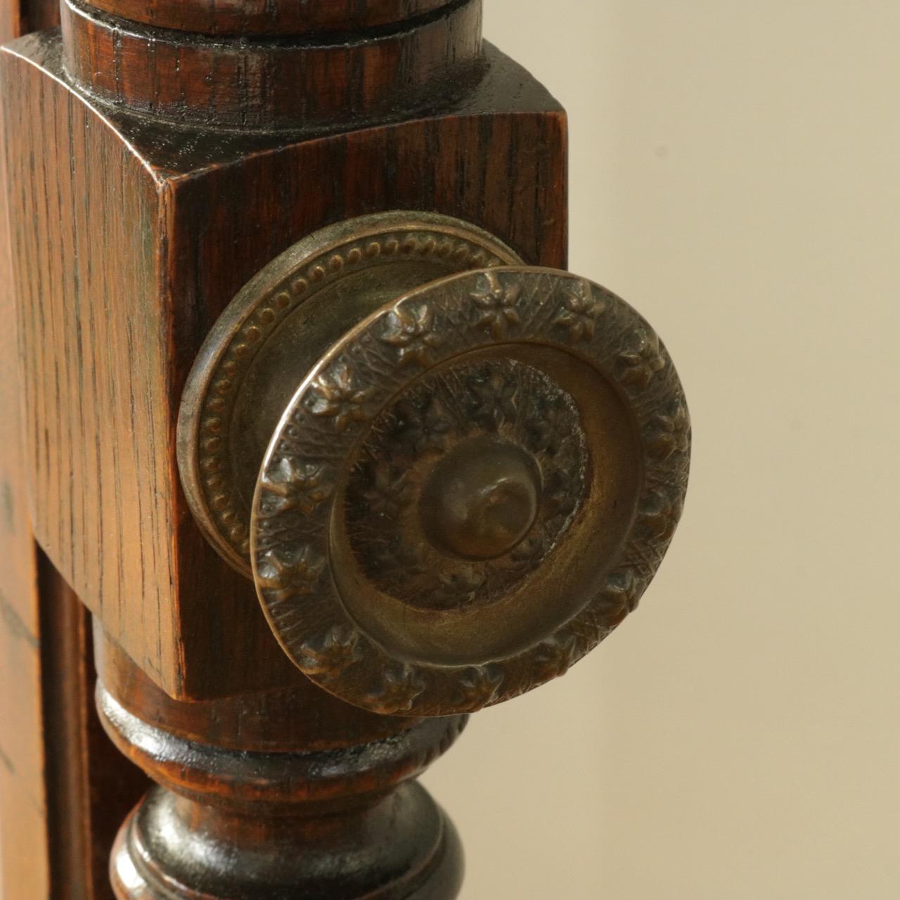 支柱トップの装飾は挽物らしい滑らかで繊細な造形。
