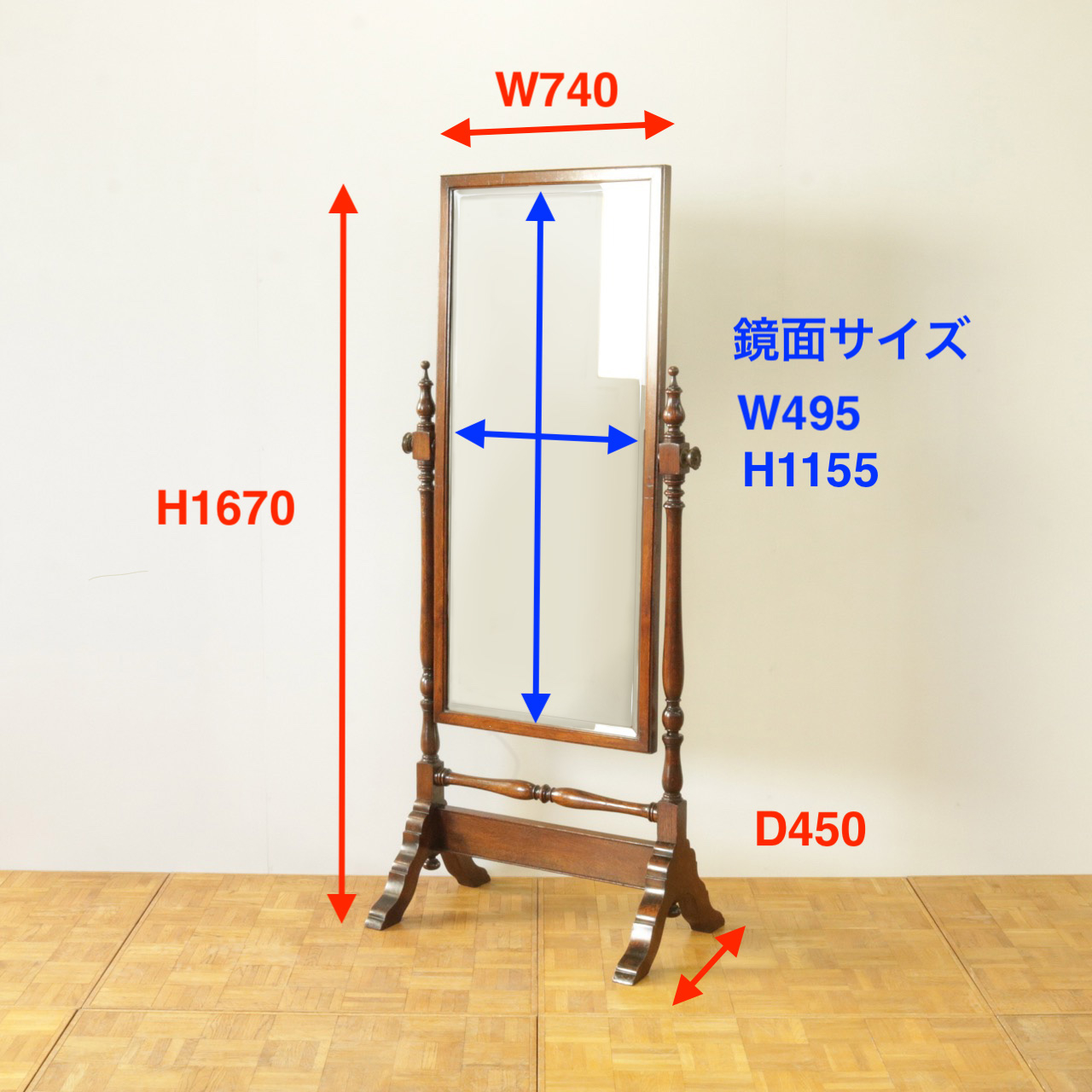 鏡面サイズ:W495 x H1155(mm)
