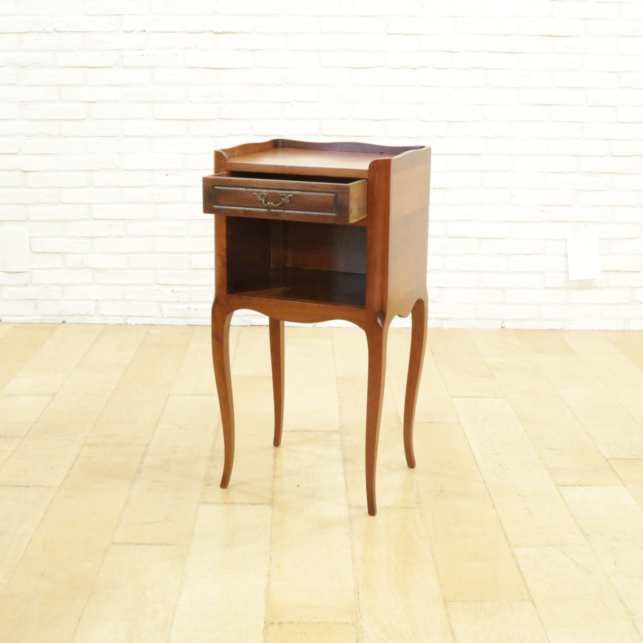 引き出し付きの小ぶりなチェストはベッドサイドにあるととても重宝するアイテム。
