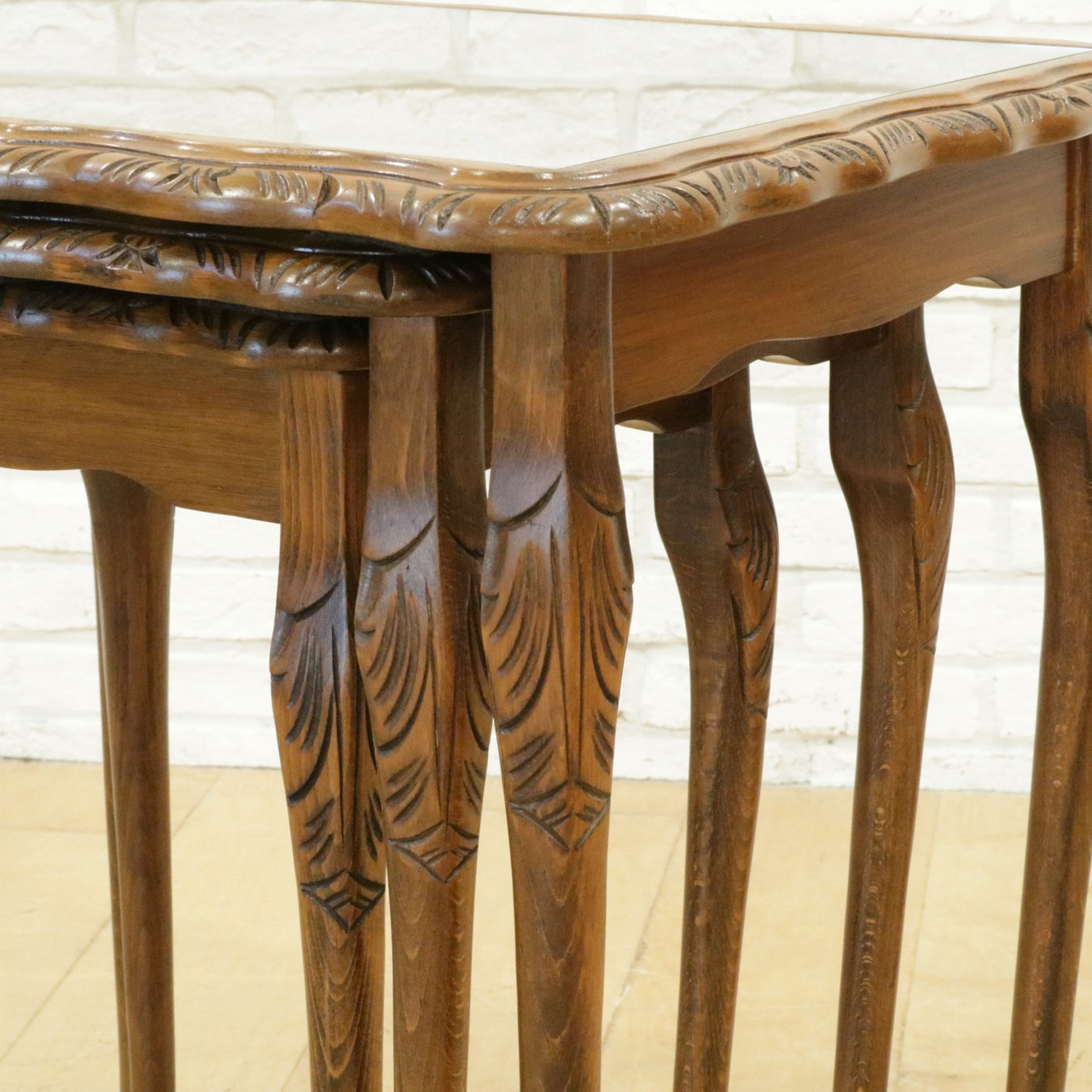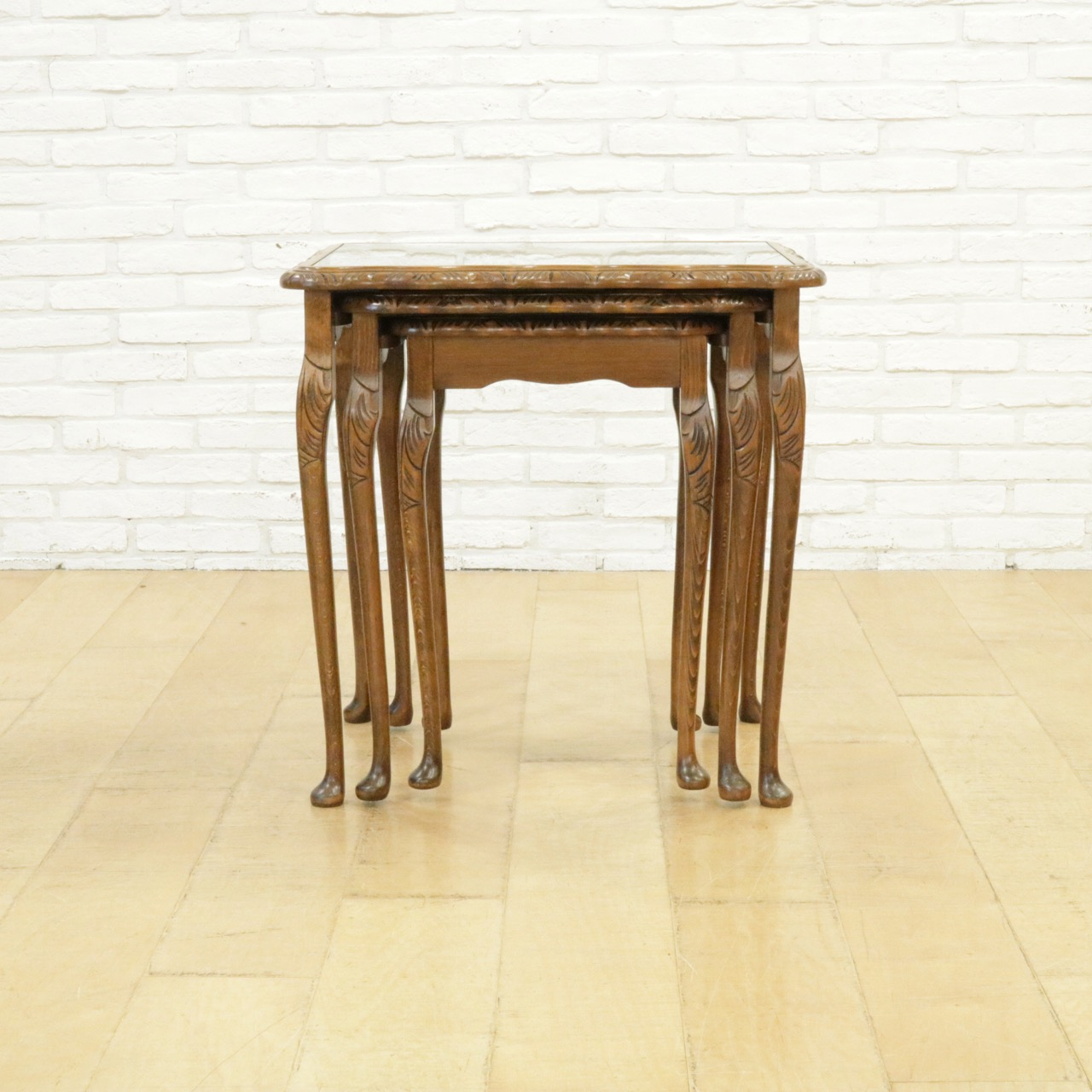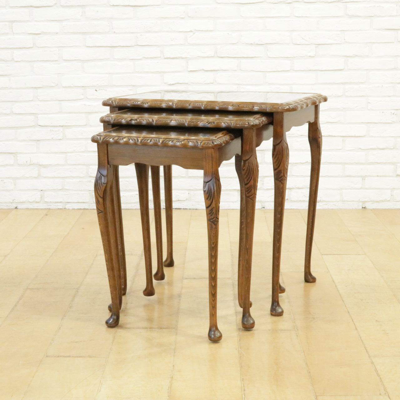 3つのテーブルが入れ子式に組み合わさったネストテーブルは1台ずつバラバラな場所にもお使い頂けてとても便利。