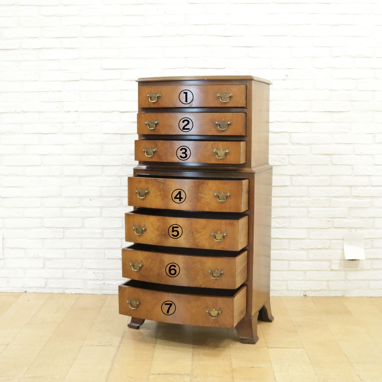 配送料の目安 ▶︎ウォールナットのチェスト。チェストの上にチェストが乗ったようなデザインを「チェストオンチェスト」と呼んでいます。