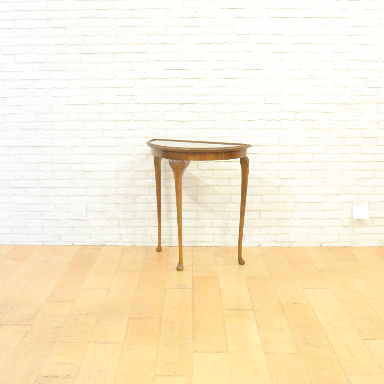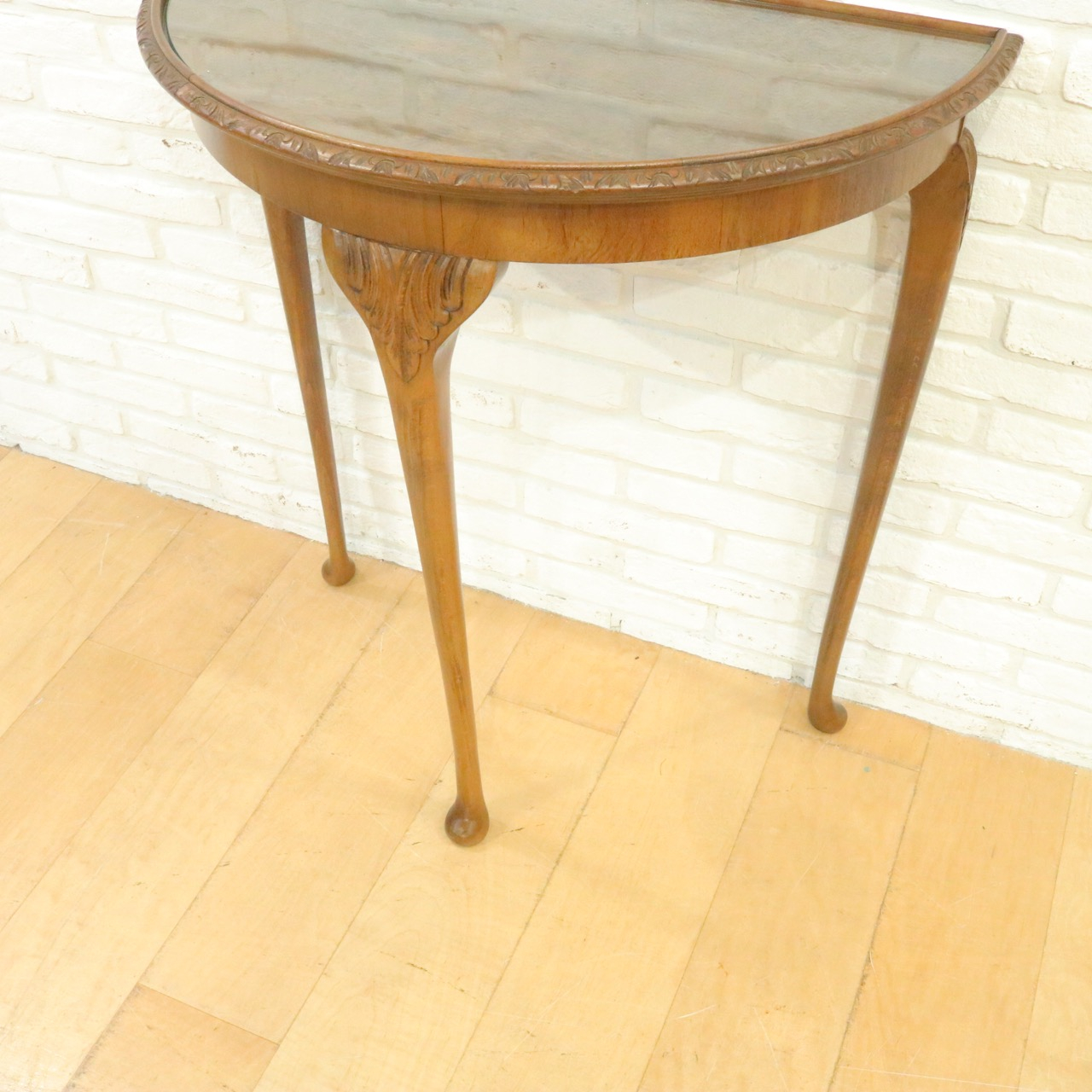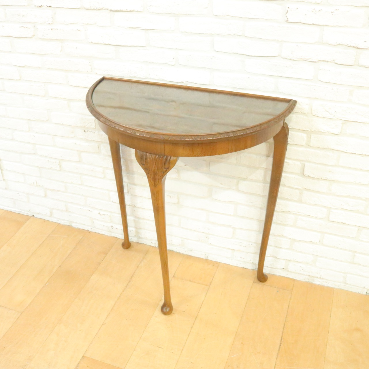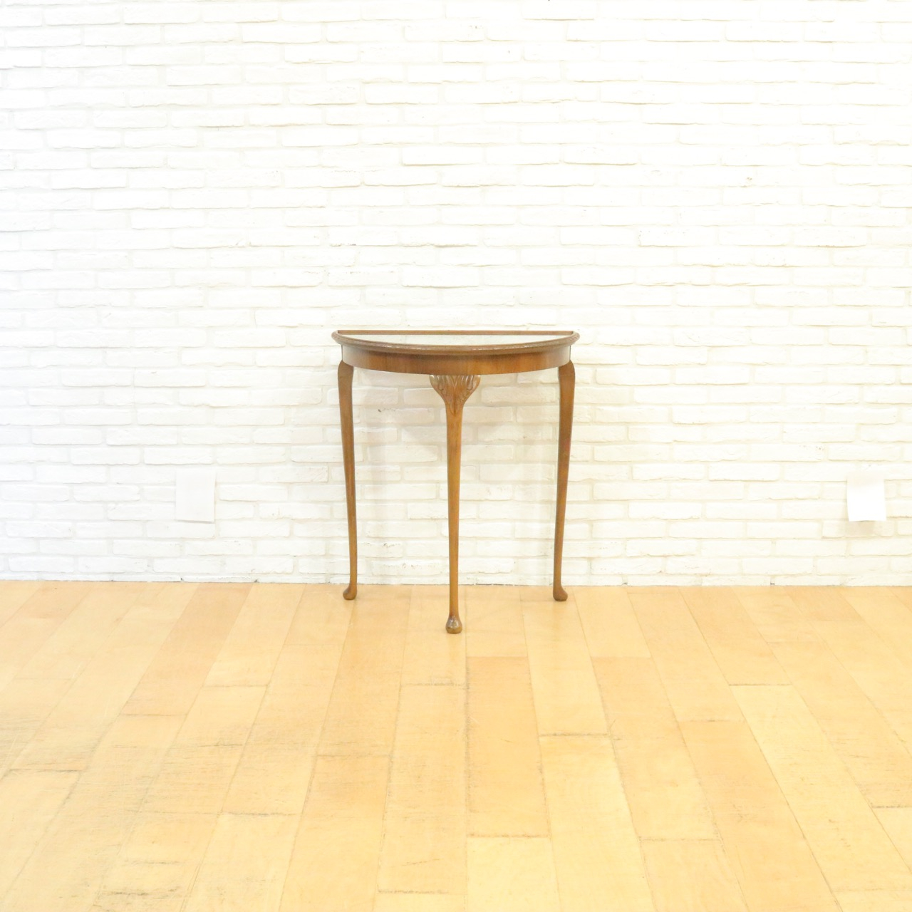 半円型にカブリオールレッグのすっきりとしたスタイルはスペースに納まりやすく、玄関やリビングのアクセントにおすすめです。華やかな彫刻にも惹かれます。