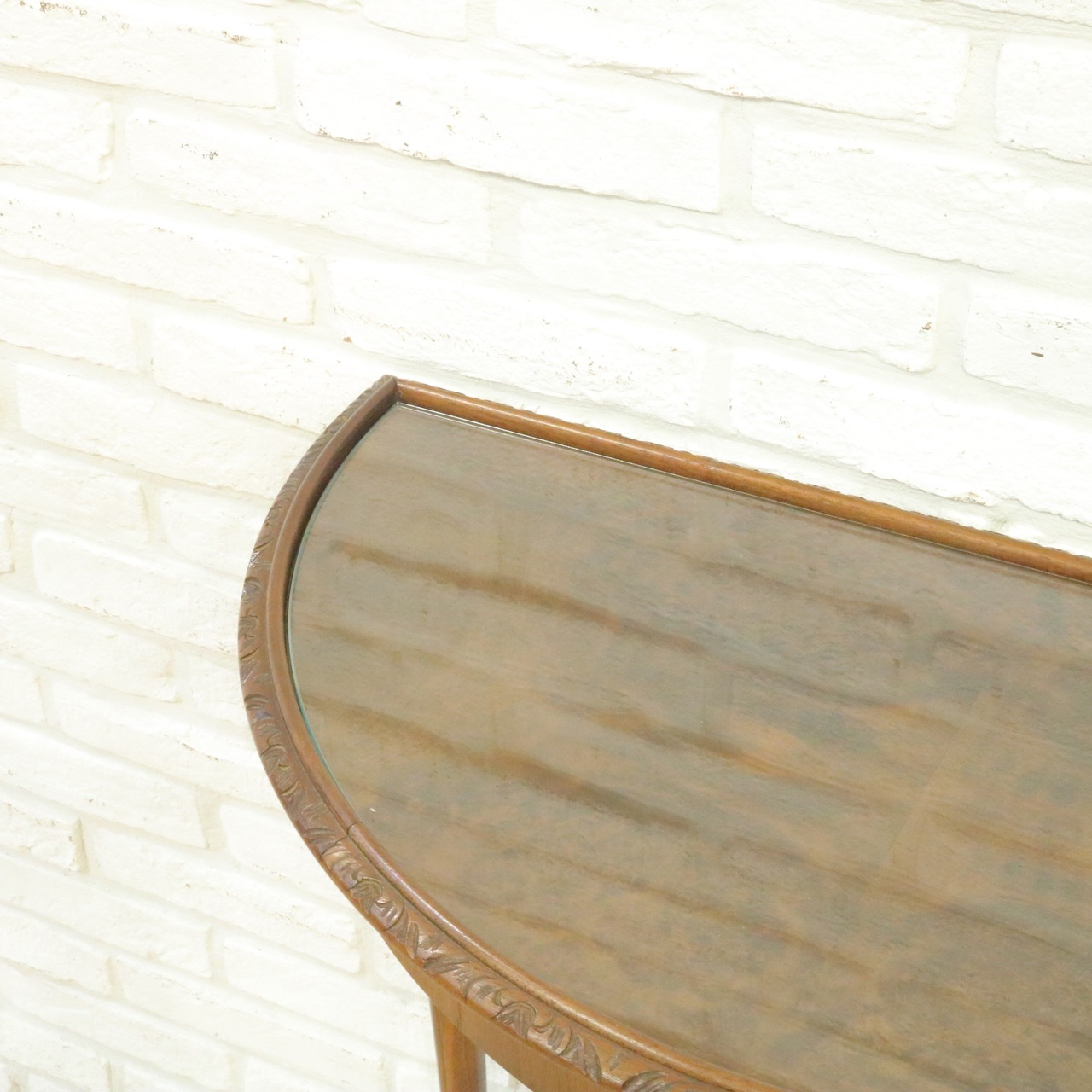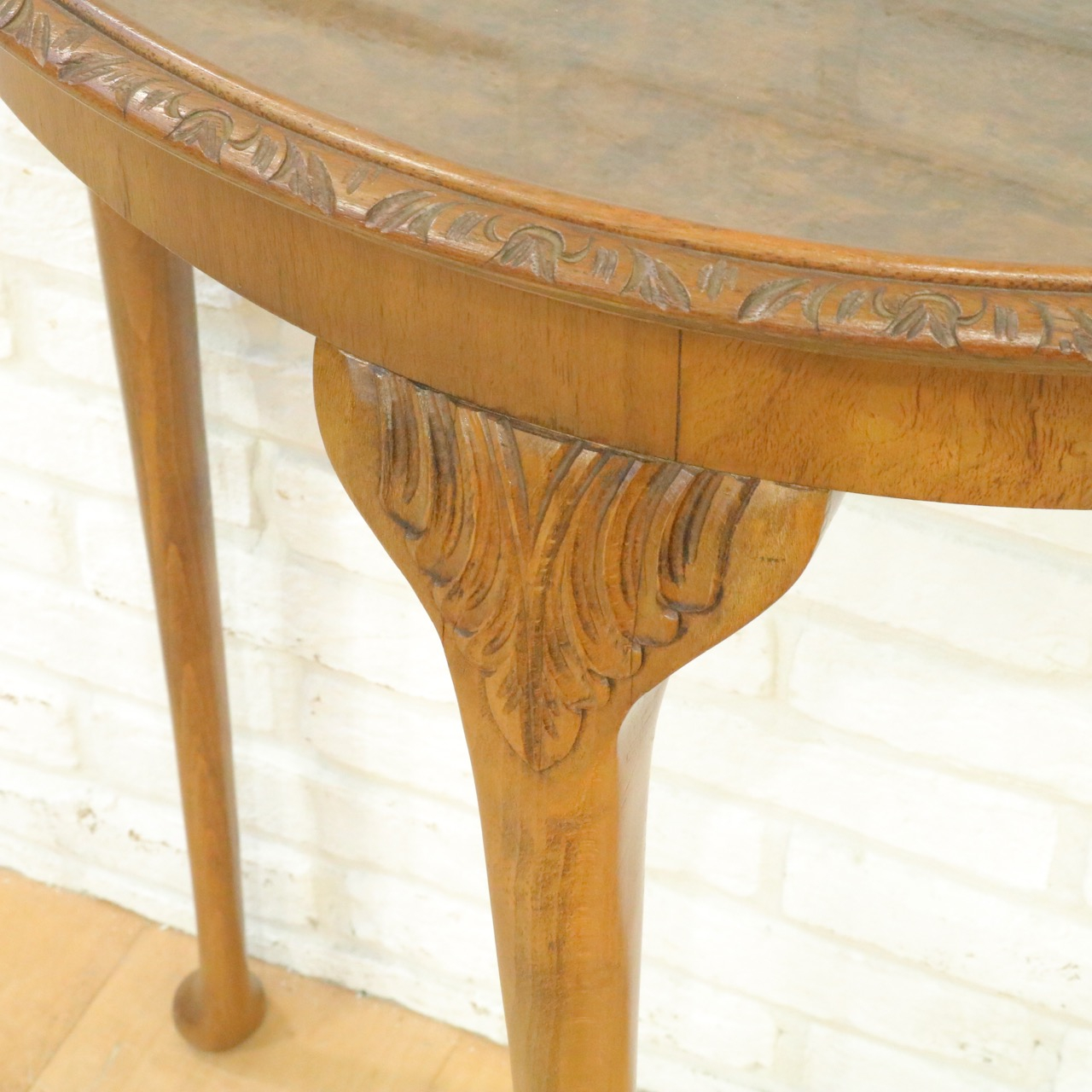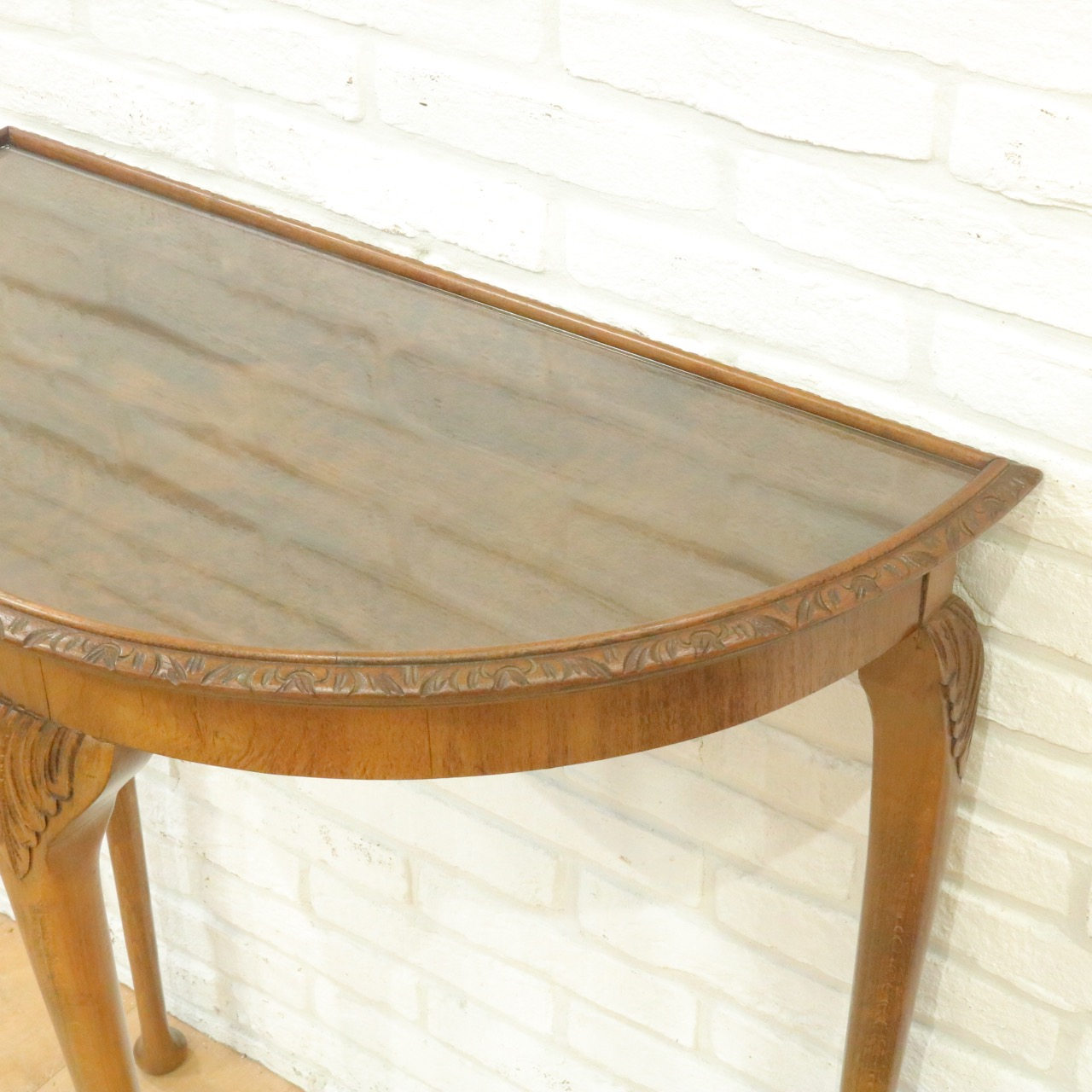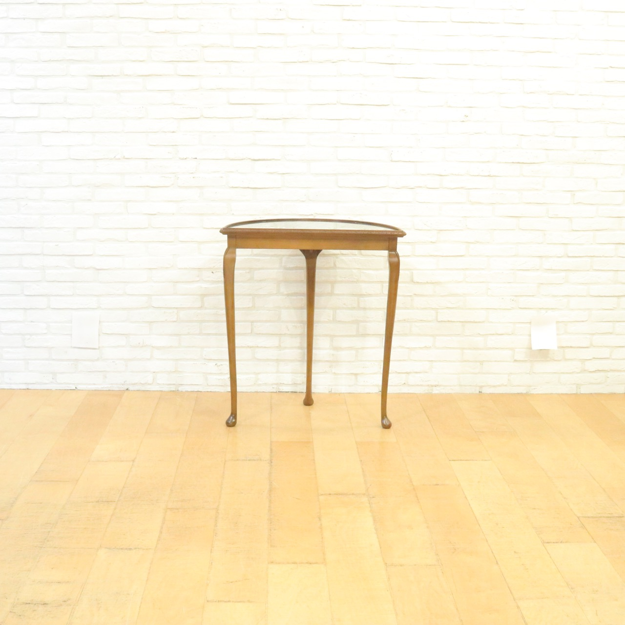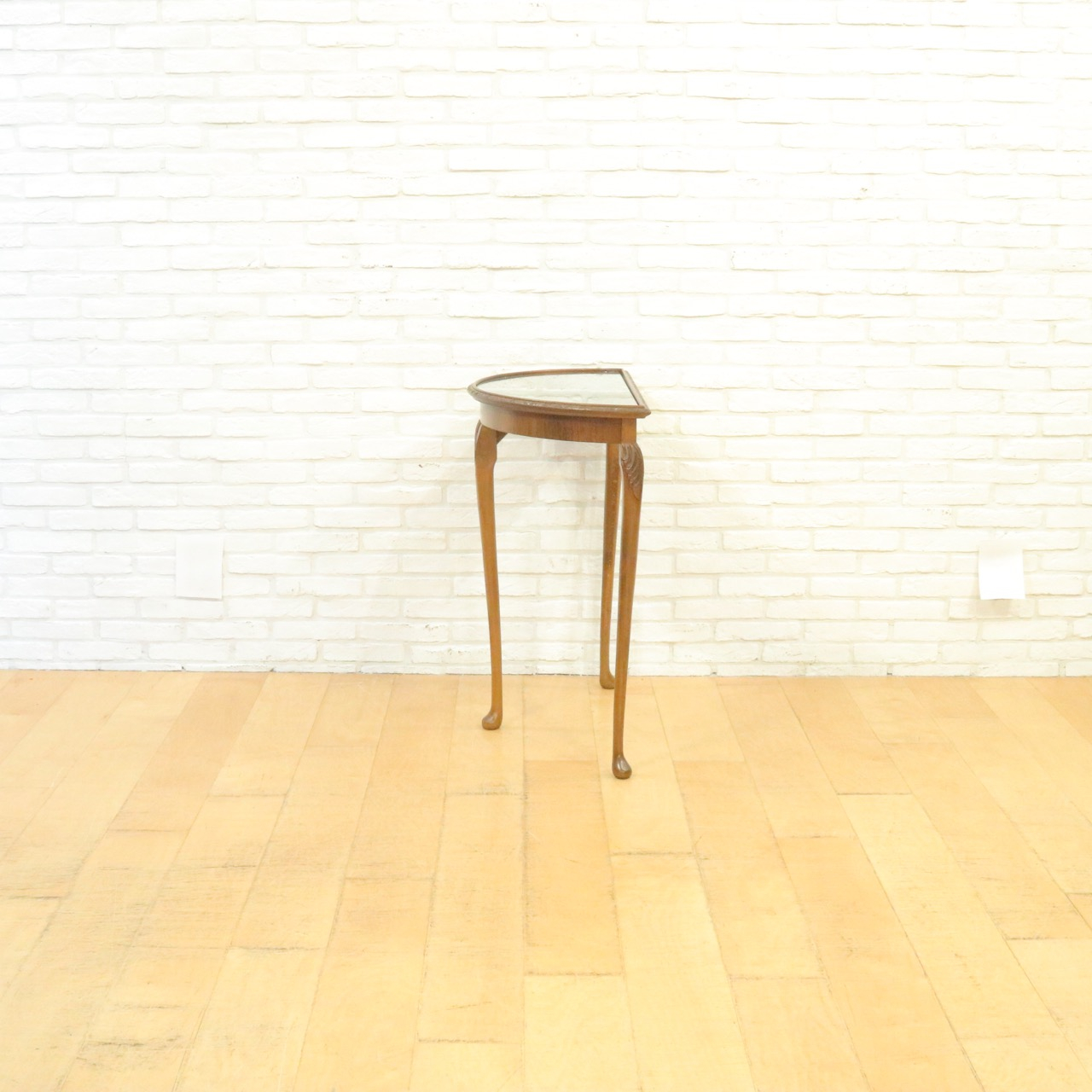 半円型にカブリオールレッグのすっきりとしたスタイルはスペースに納まりやすく、玄関やリビングのアクセントにおすすめです。華やかな彫刻にも惹かれます。