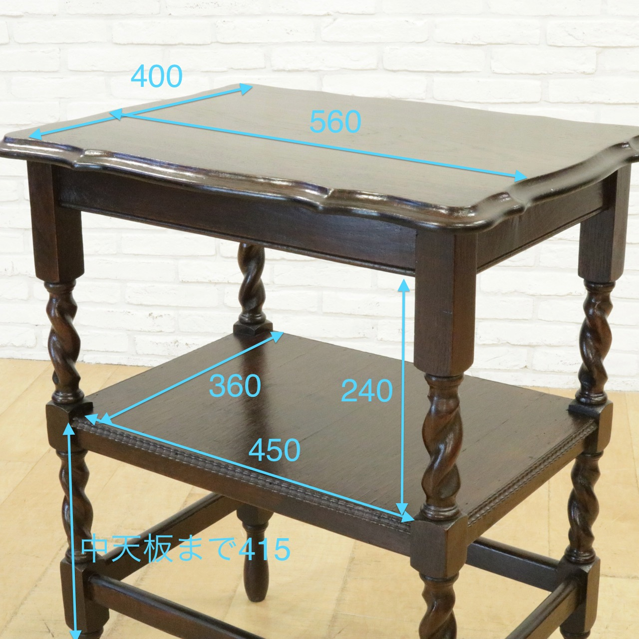 天板縁の意匠や、バーリーシュガーツイストレッグがアンティークらしく絵になるひと品。