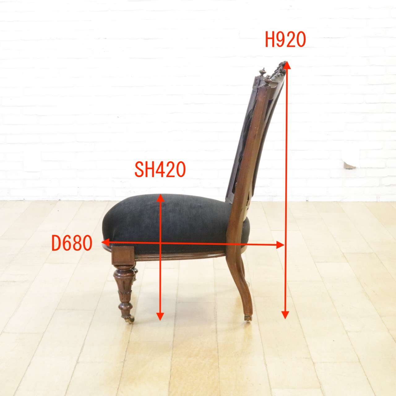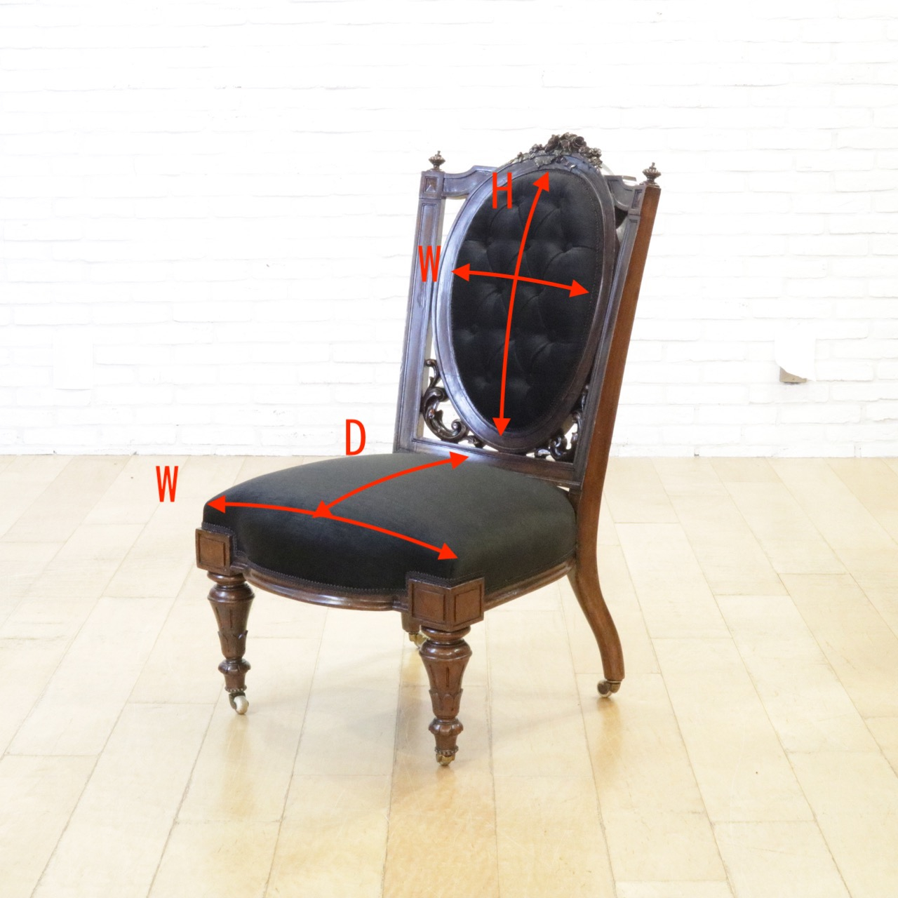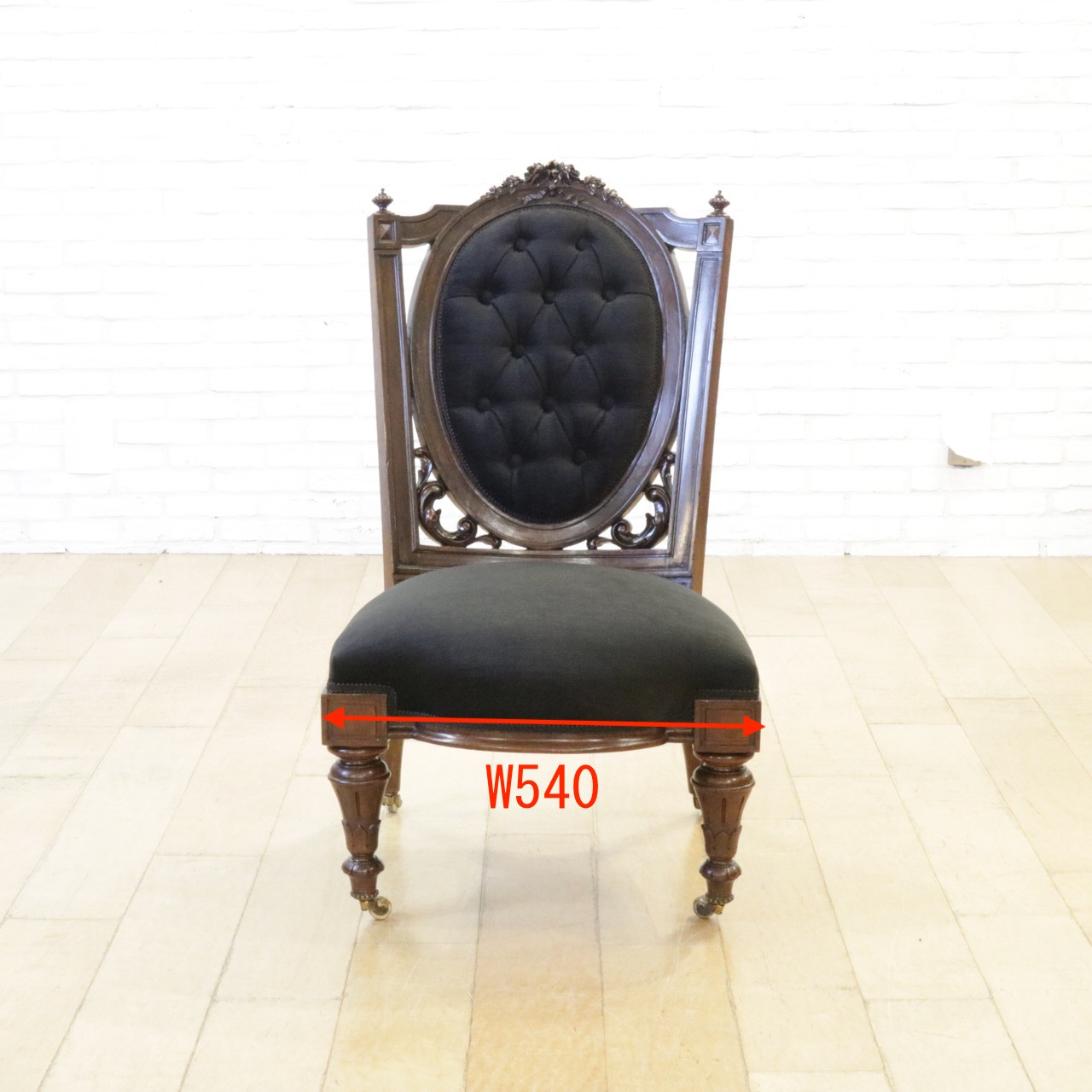 繊細で写実的、立体的で美しいバラのレリーフがトップに配された印象的なチェアーです。