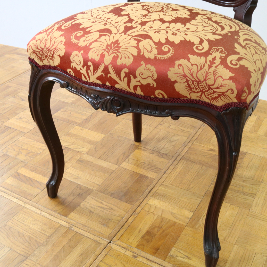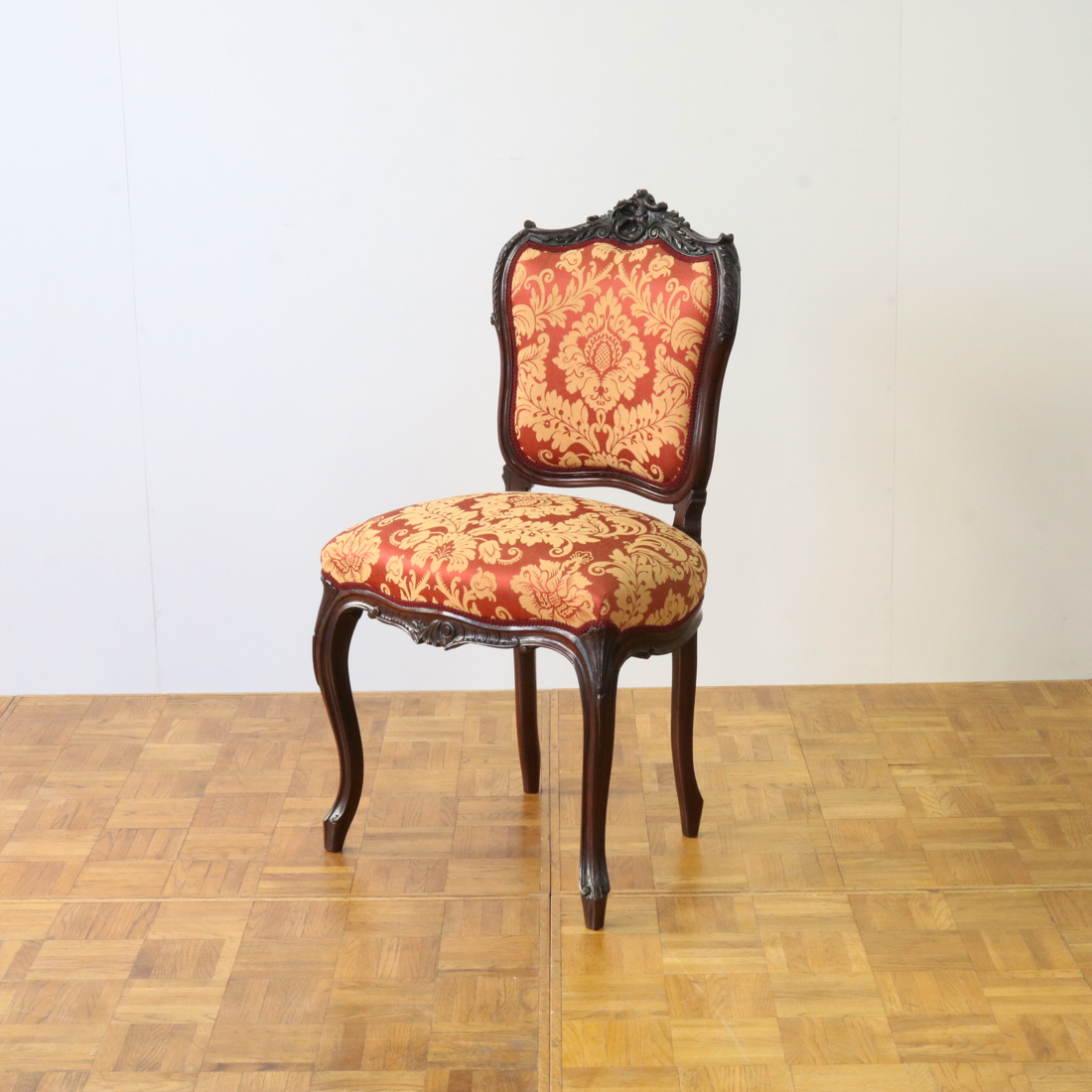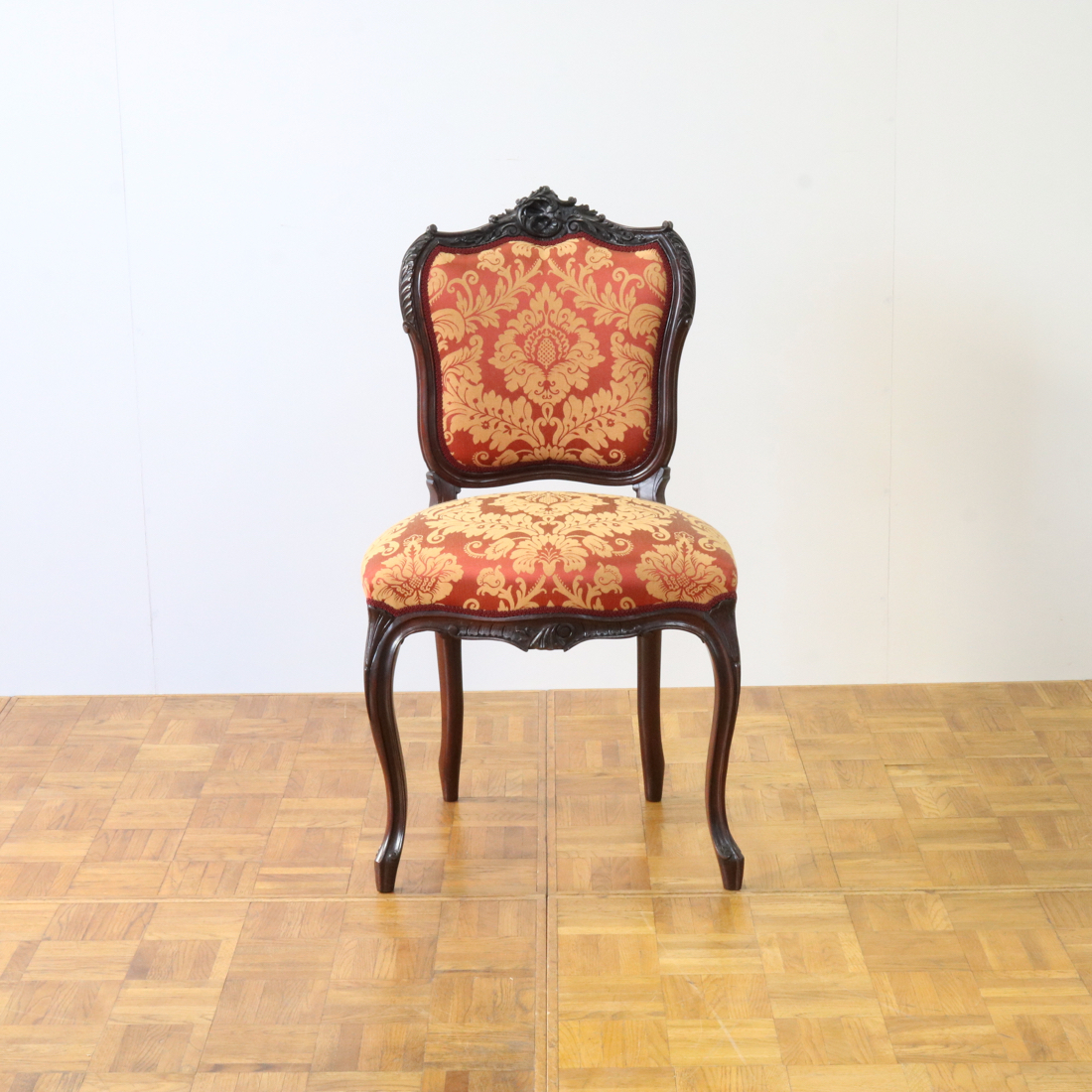 トップのロカイユやルイ14世様式特有の曲線的な背のデザインなど、優美で美しいチェアーです。