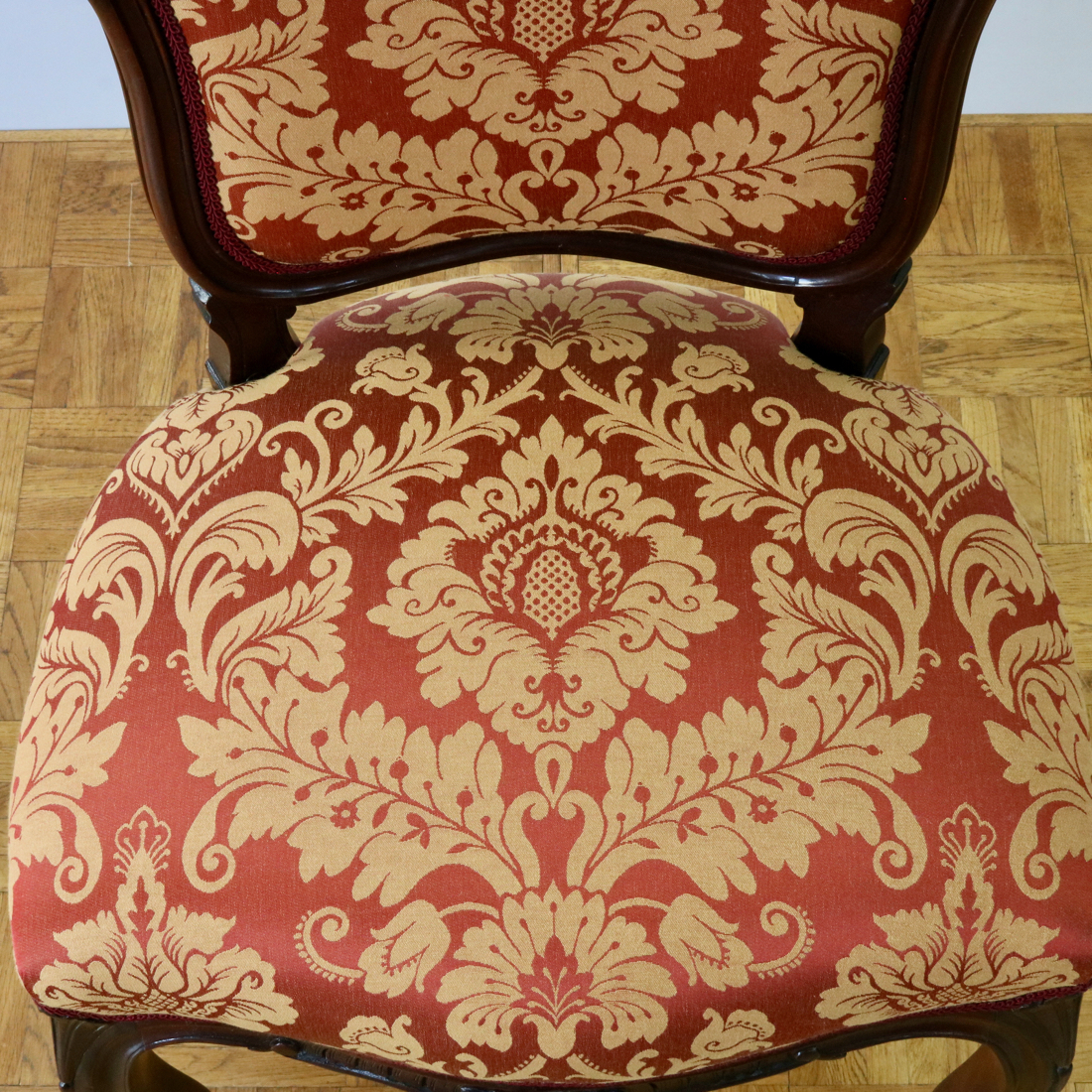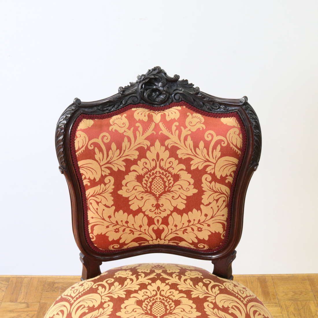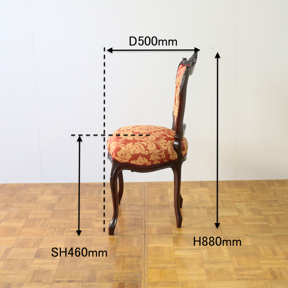 トップのロカイユやルイ14世様式特有の曲線的な背のデザインなど、優美で美しいチェアーです。