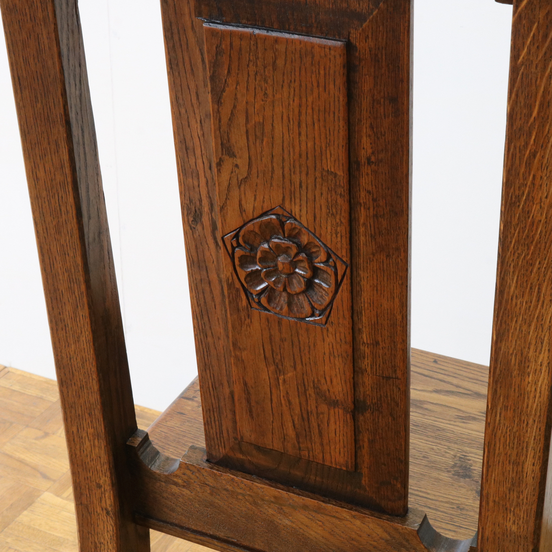 配送料の目安 ▶︎オーク材のホールチェアー。しっかりと身体を支えてくれる頼もしい安定感があります。背中に施されたお花のレリーフがかわいらしいワンポイントアクセントになっています。