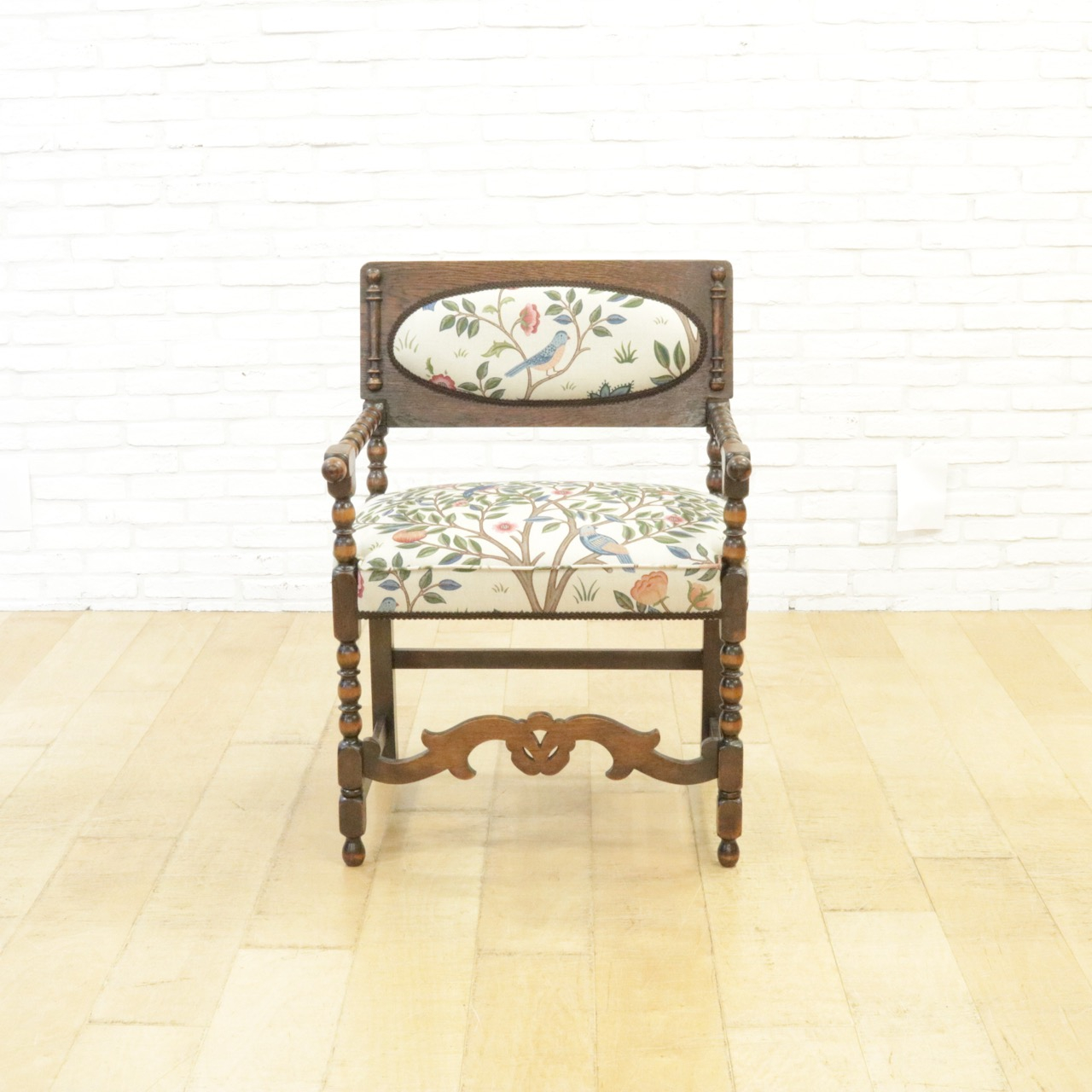 オーク材の様々な表情が楽しめるボビンターニングのアームや脚部。美しいツヤも魅力的です。