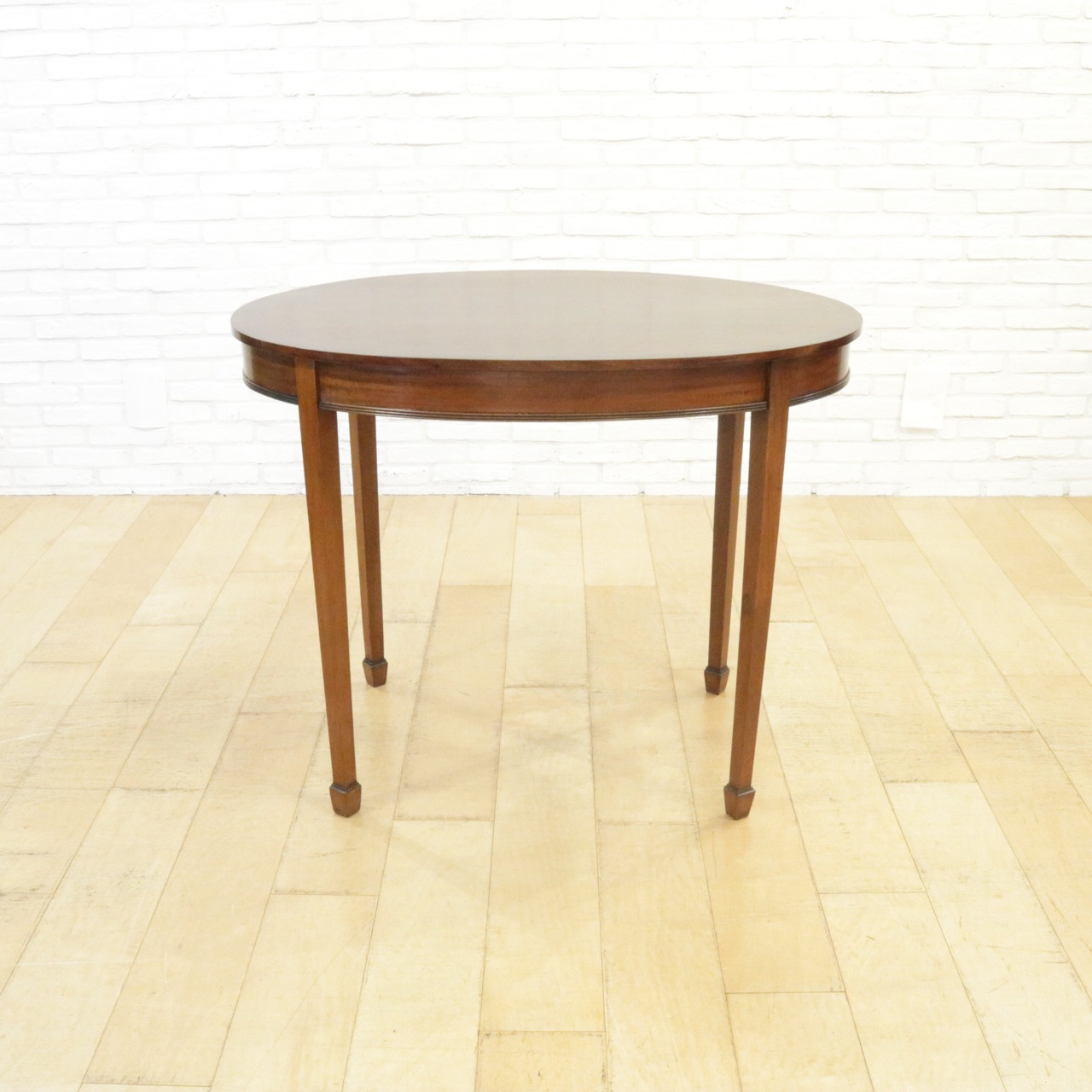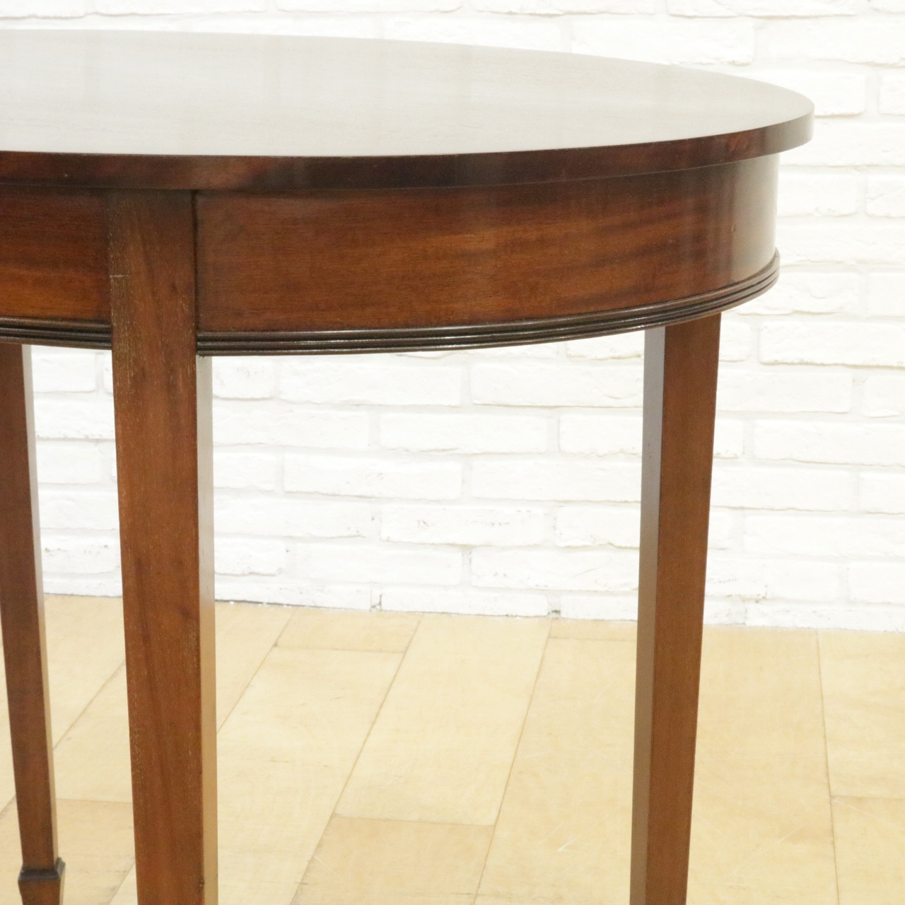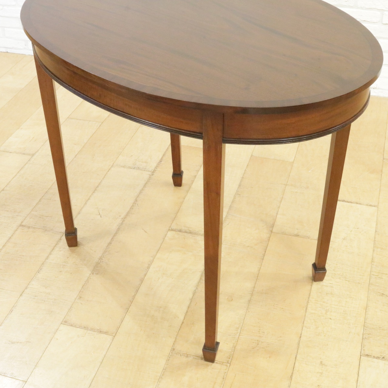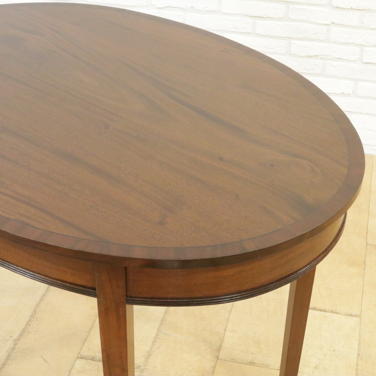 配送料の目安 ▶︎1930年代、マホガニーのオケージョナルテーブル。優雅なオーバル型に、縁を囲まれた天板はマホガニーらしい滑らかで深みのある杢目が美しく引き立ちます。