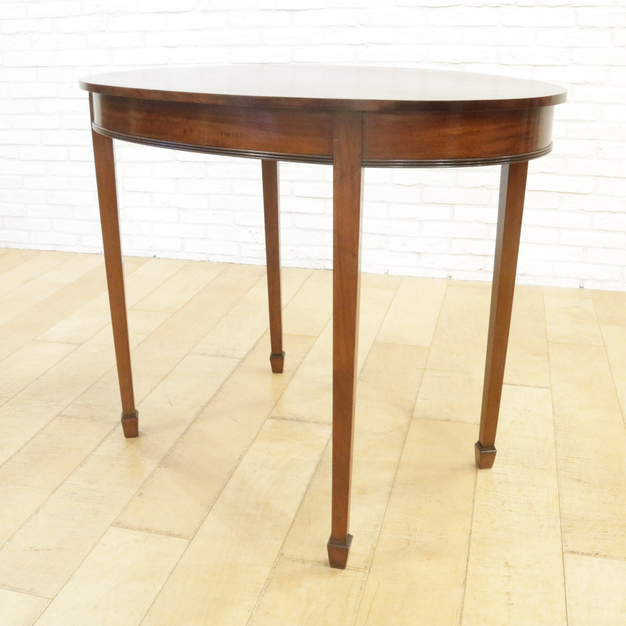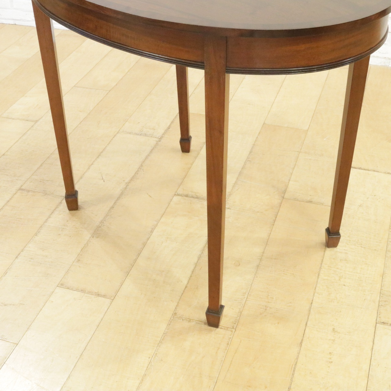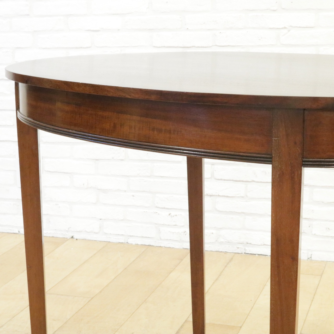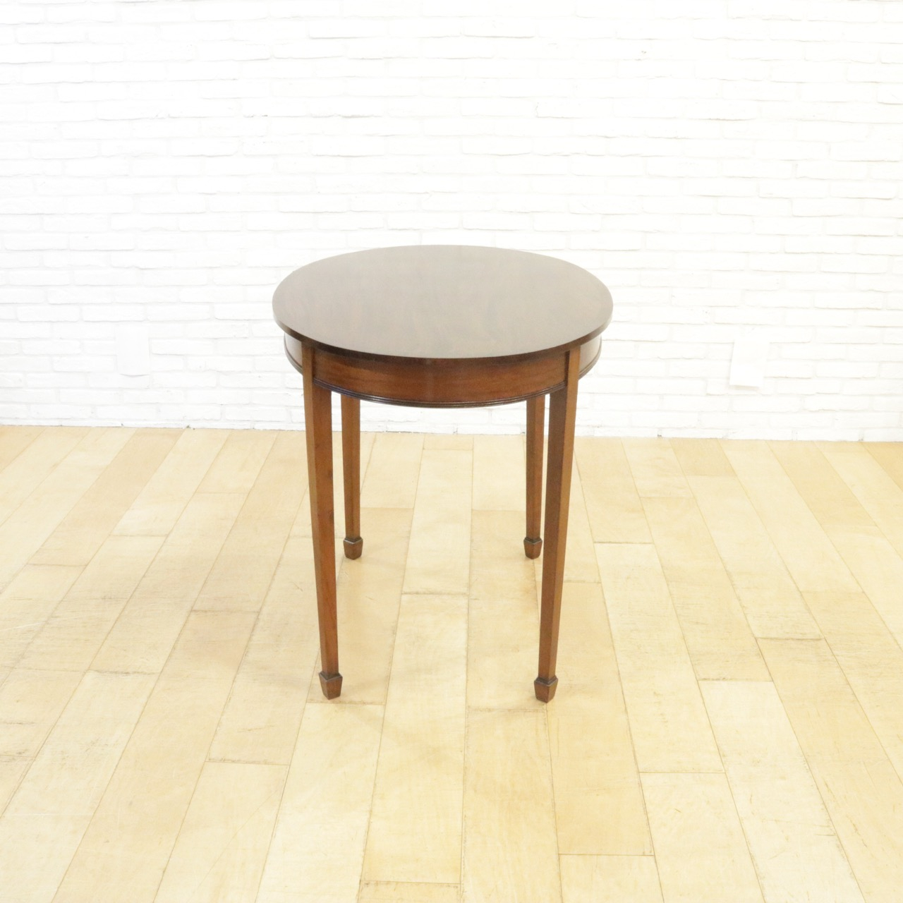 配送料の目安 ▶︎1930年代、マホガニーのオケージョナルテーブル。優雅なオーバル型に、縁を囲まれた天板はマホガニーらしい滑らかで深みのある杢目が美しく引き立ちます。