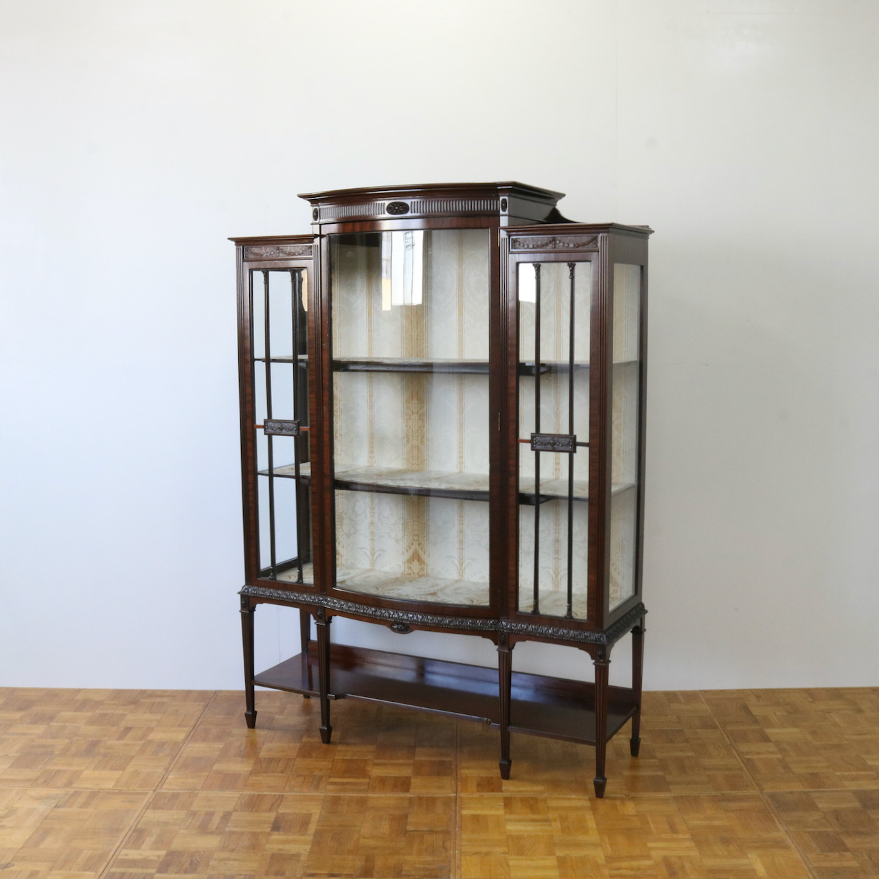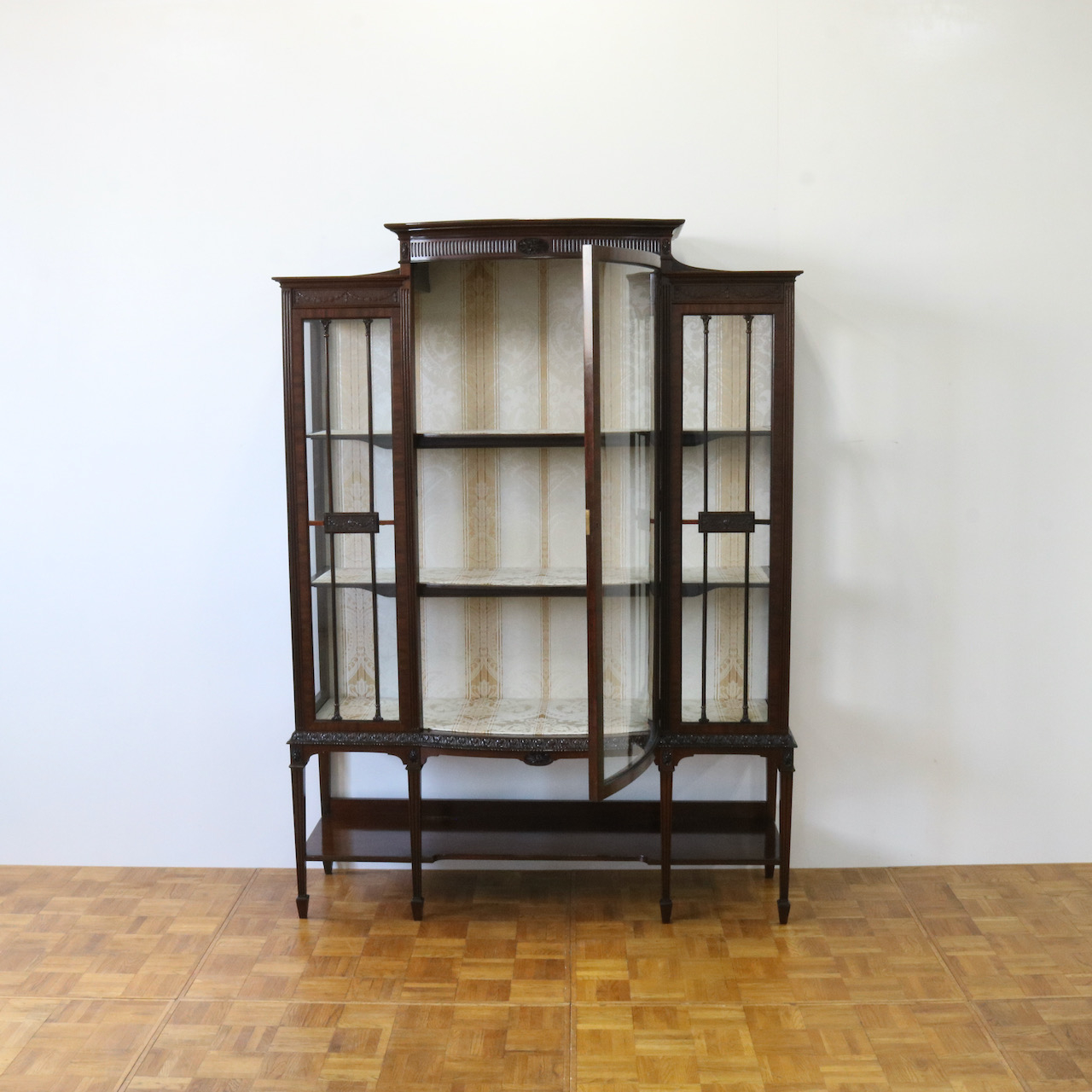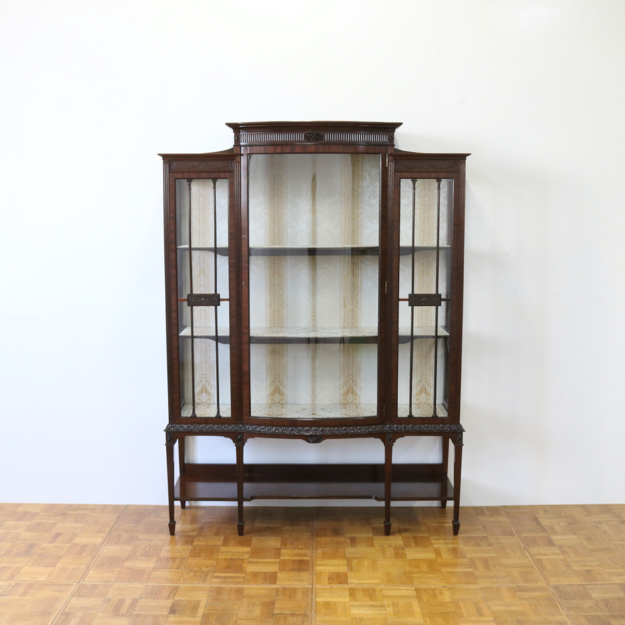 配送料の目安 ▶︎1930年代、マホガニー のグラスキャビネット 。直線を基調とした洗練されたラインが美しく、華やかな佇まい。リビングのメインにも相応しい存在感です。