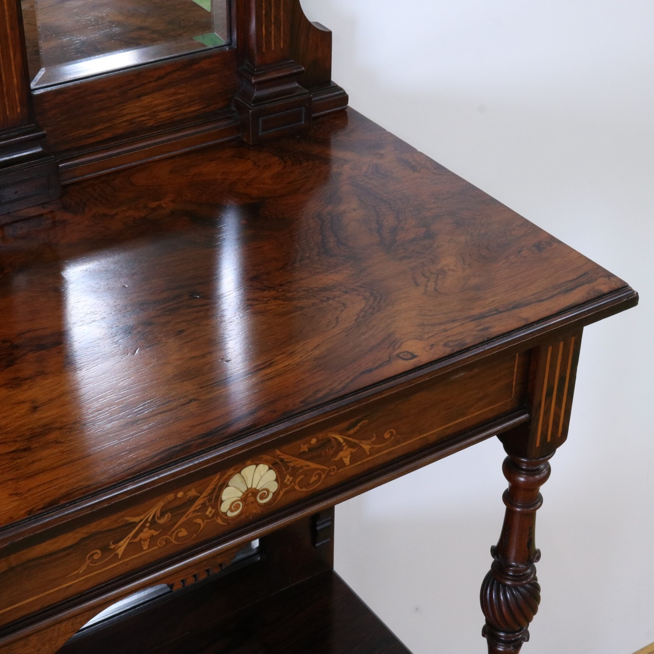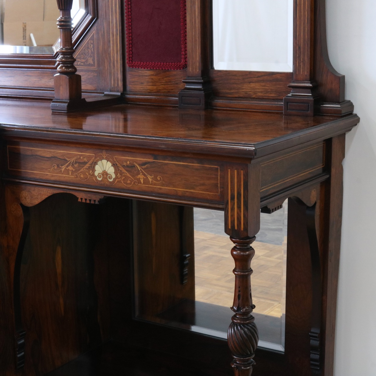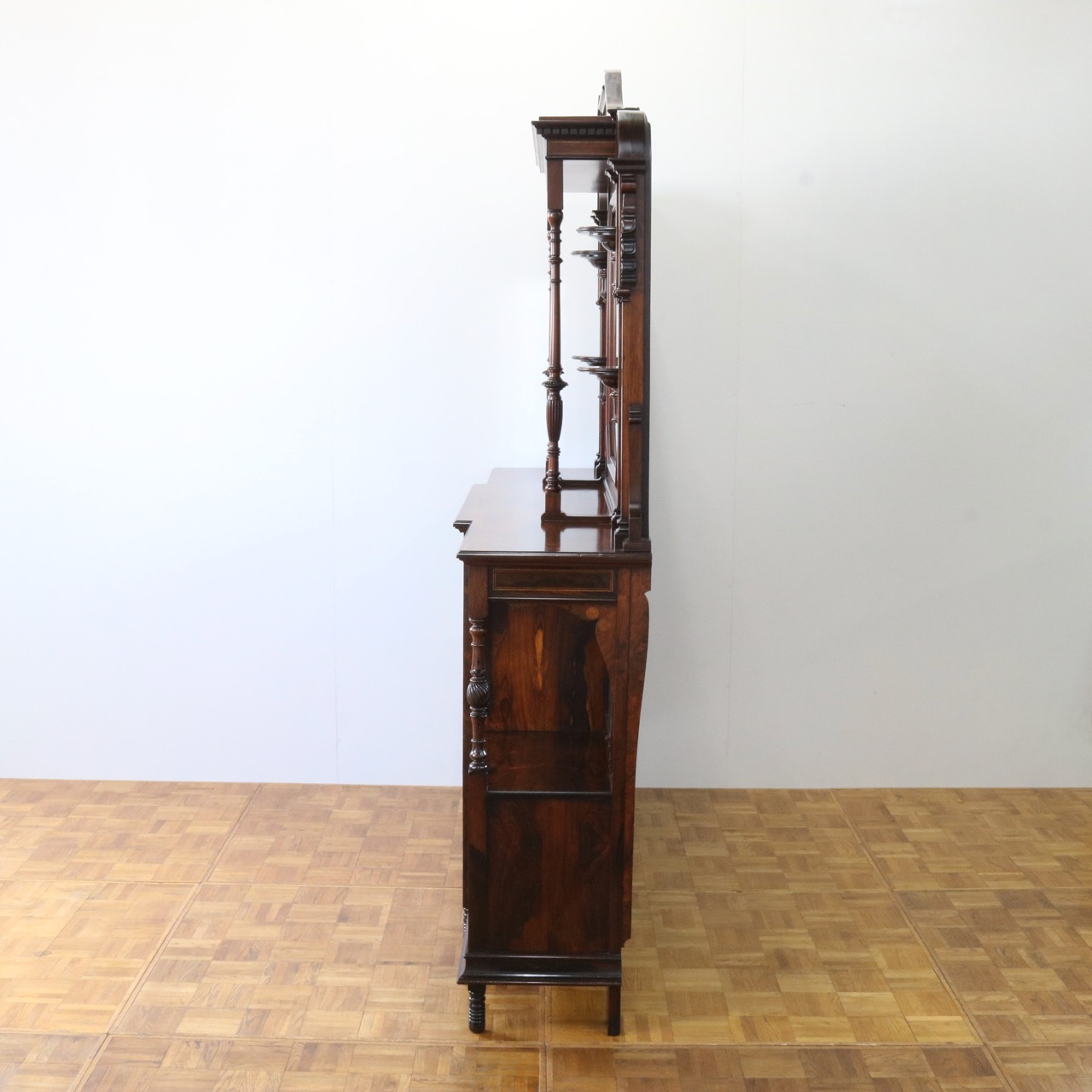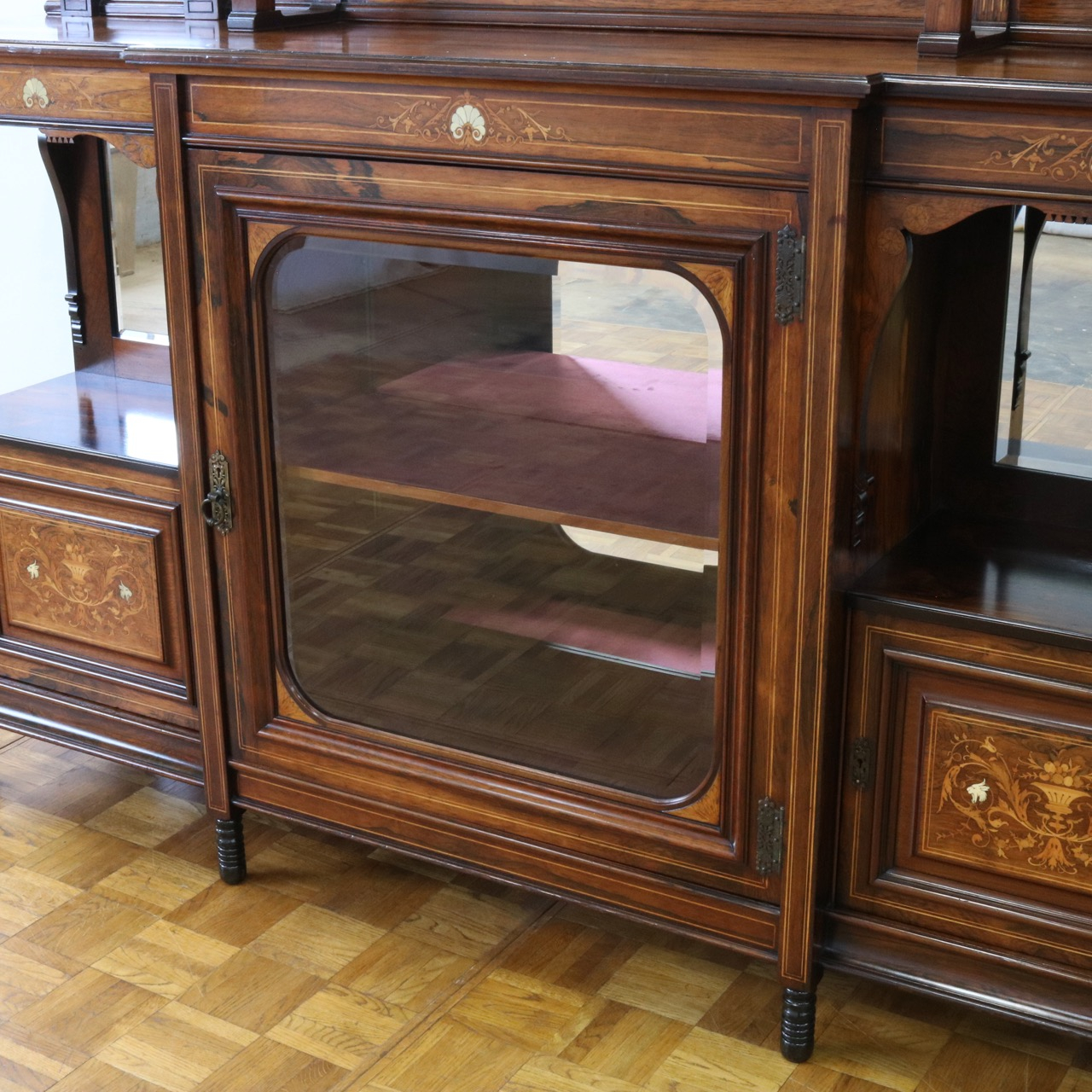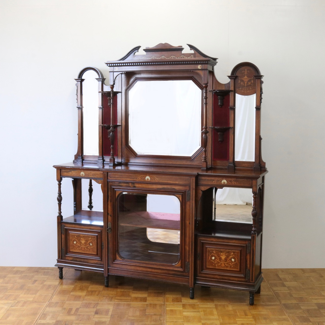 1900年代、希少なローズウッド材で製作されたミラーバックサイドボードです。
