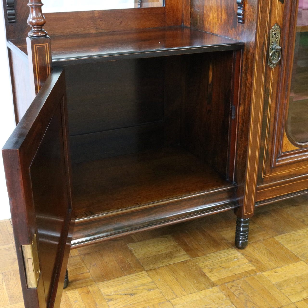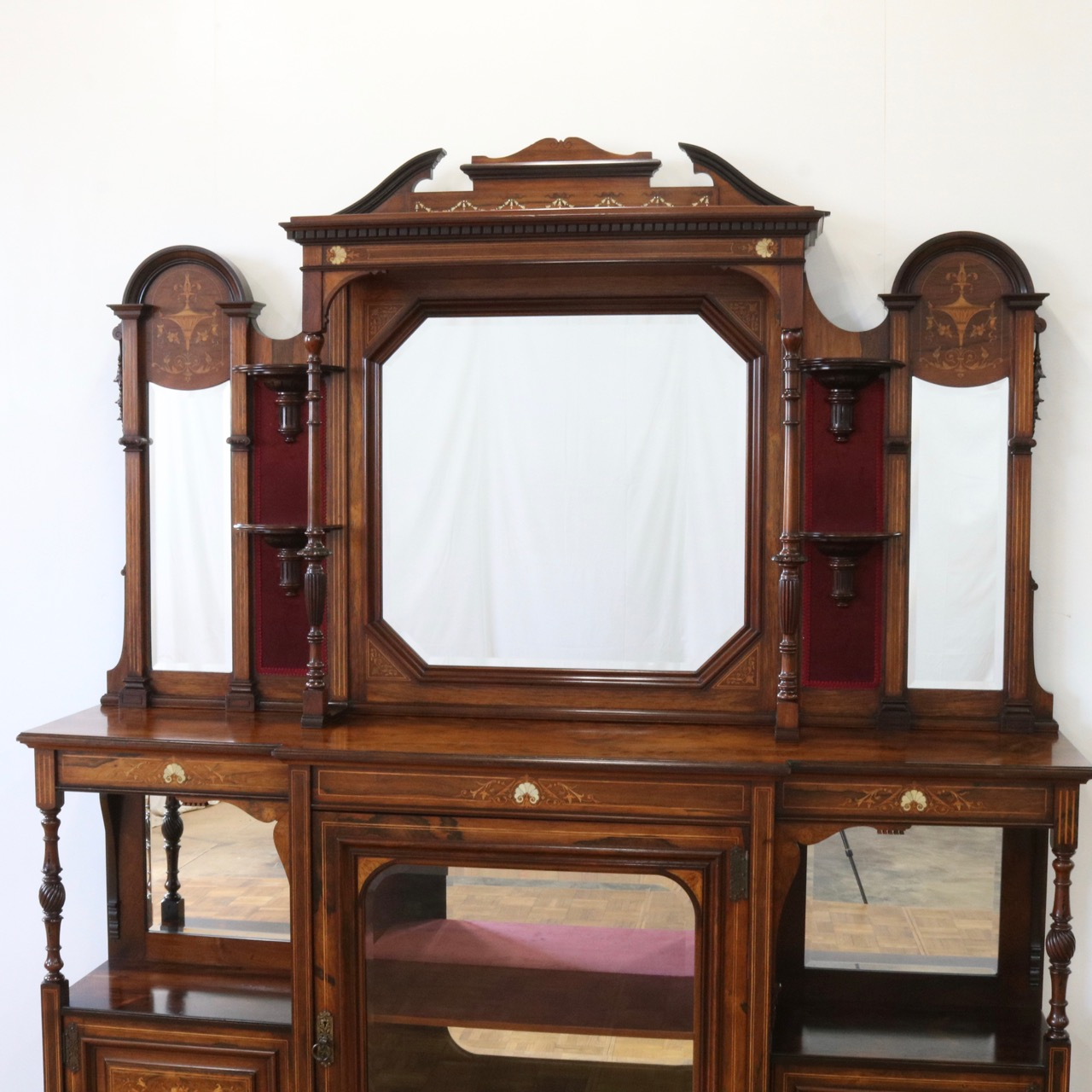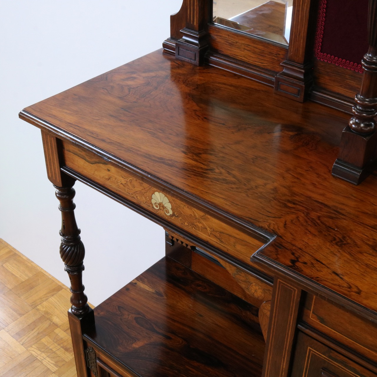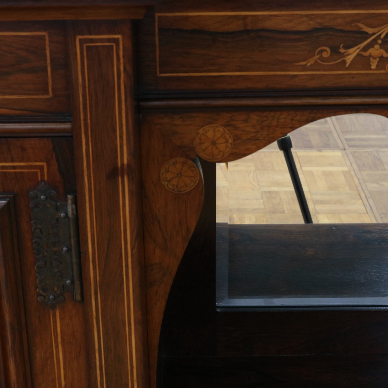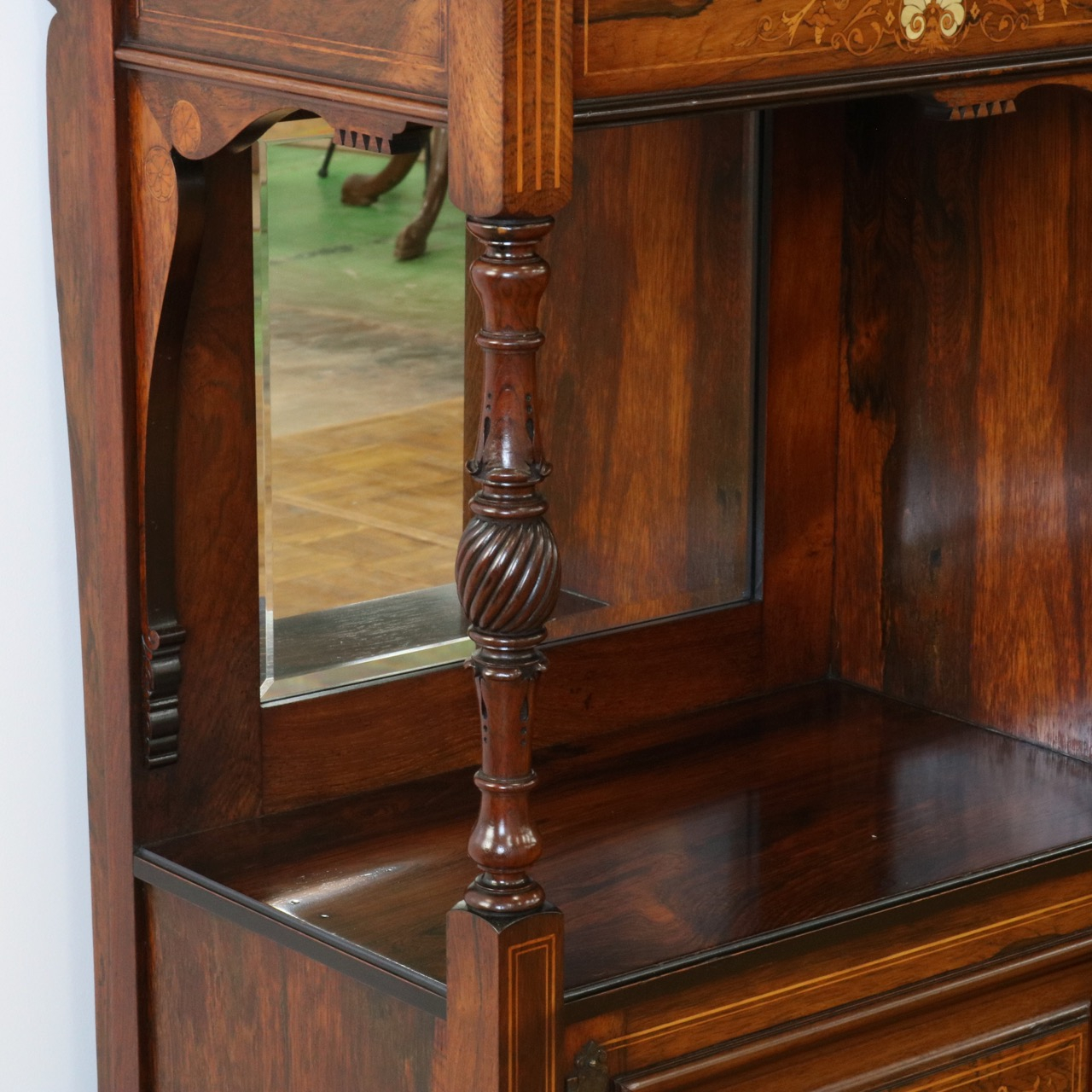 1900年代、希少なローズウッド材で製作されたミラーバックサイドボードです。