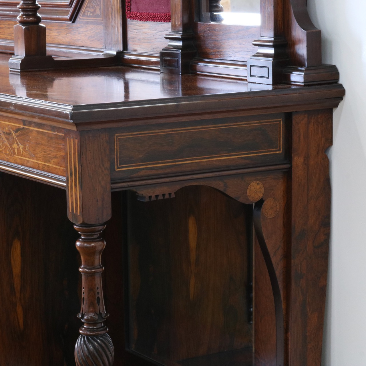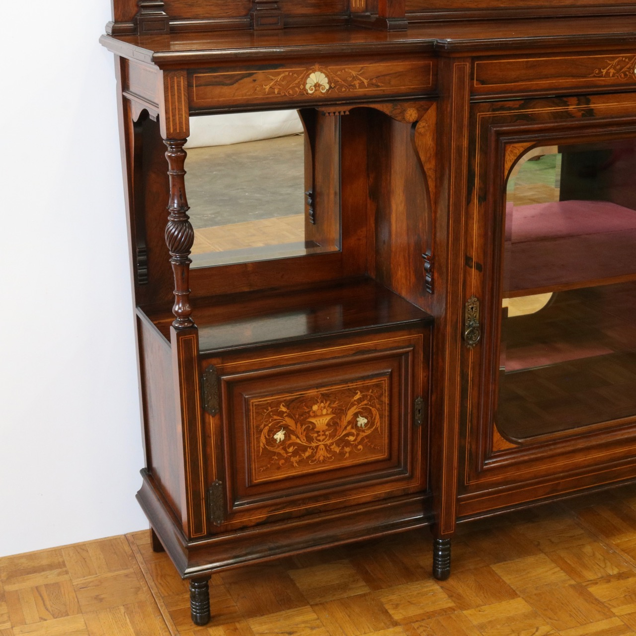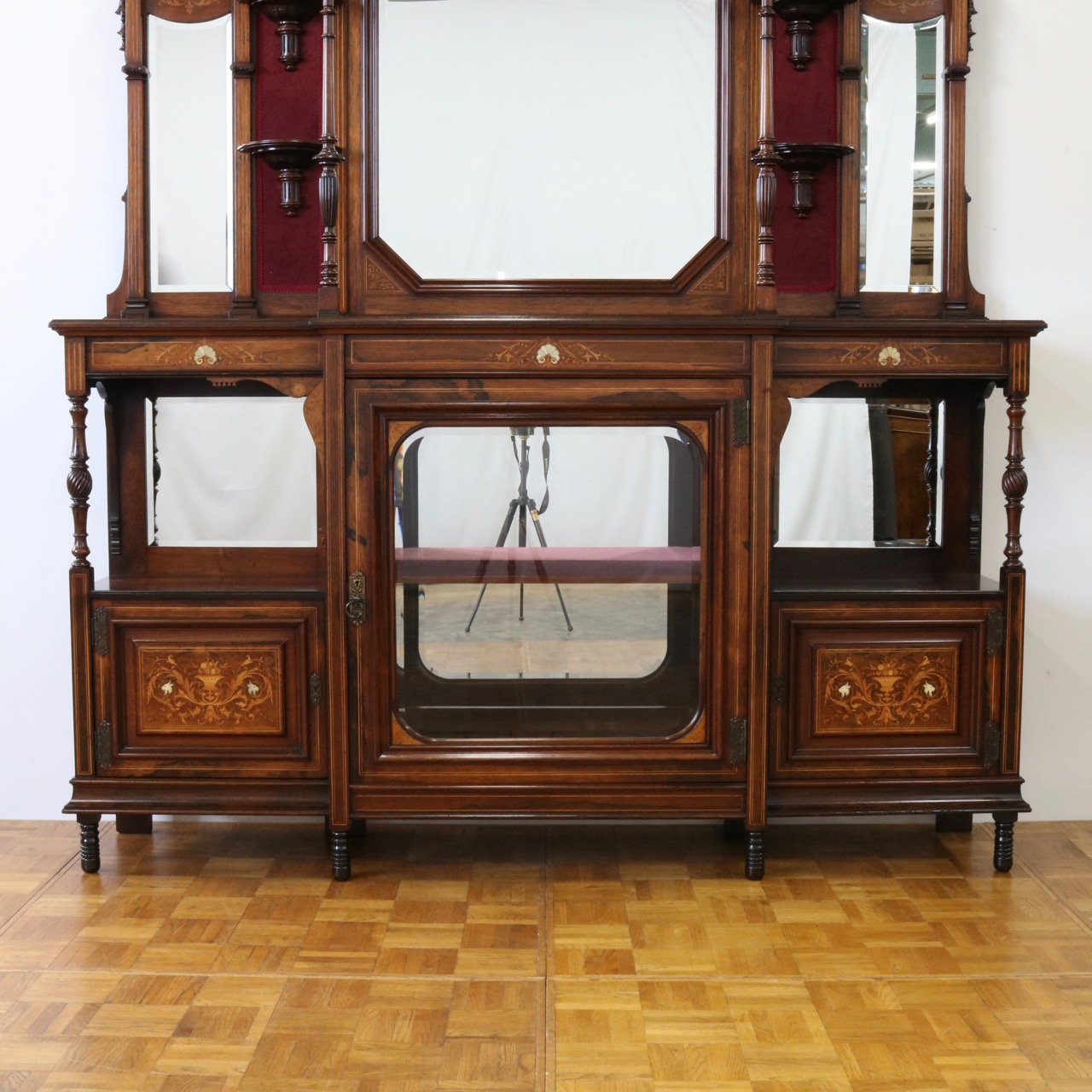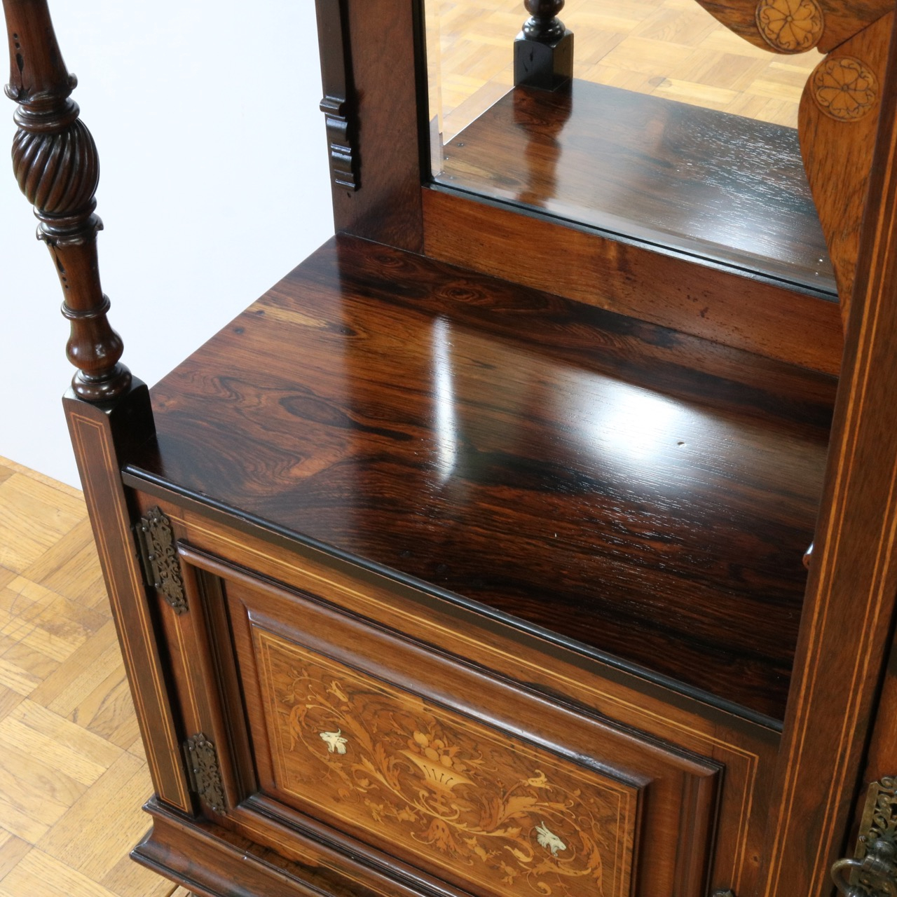 1900年代、希少なローズウッド材で製作されたミラーバックサイドボードです。