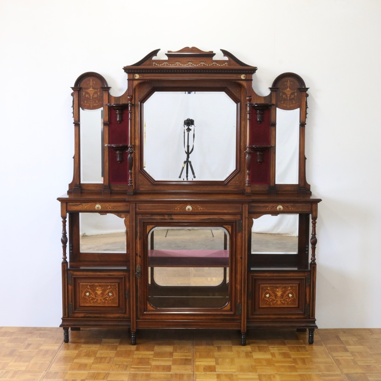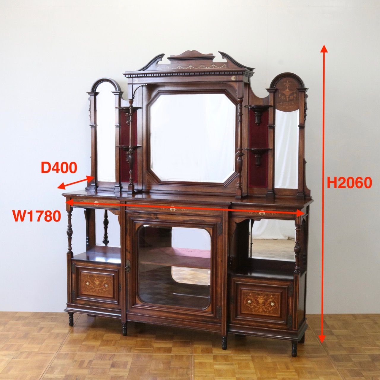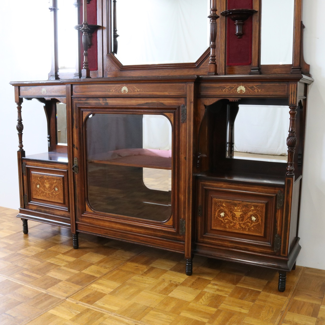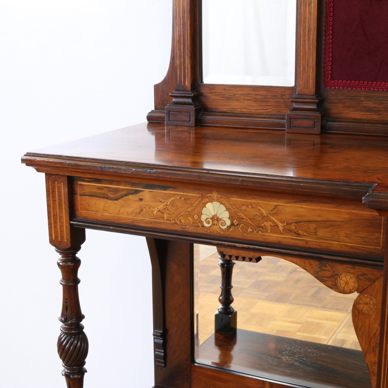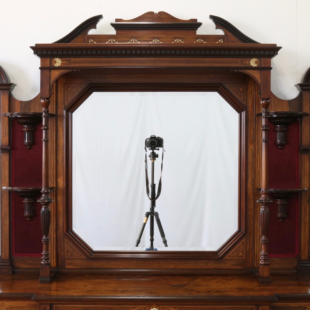 1900年代、希少なローズウッド材で製作されたミラーバックサイドボードです。