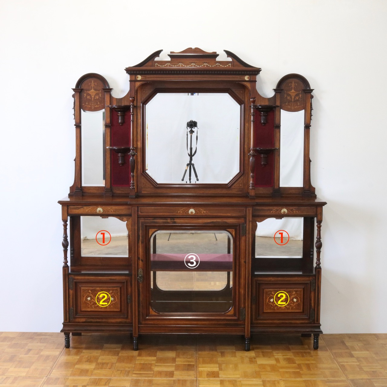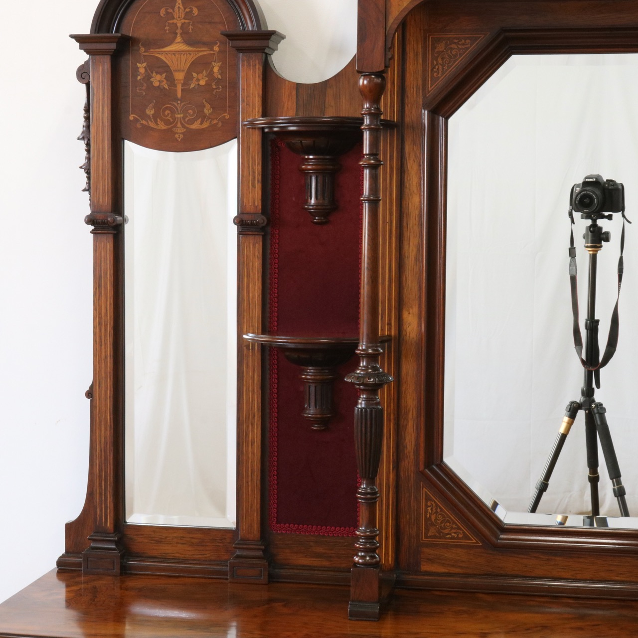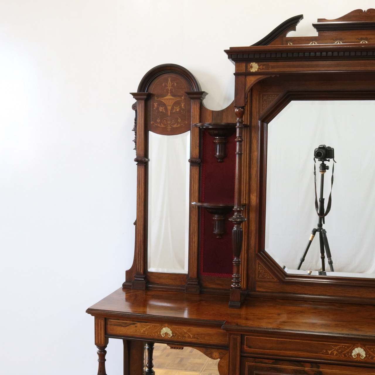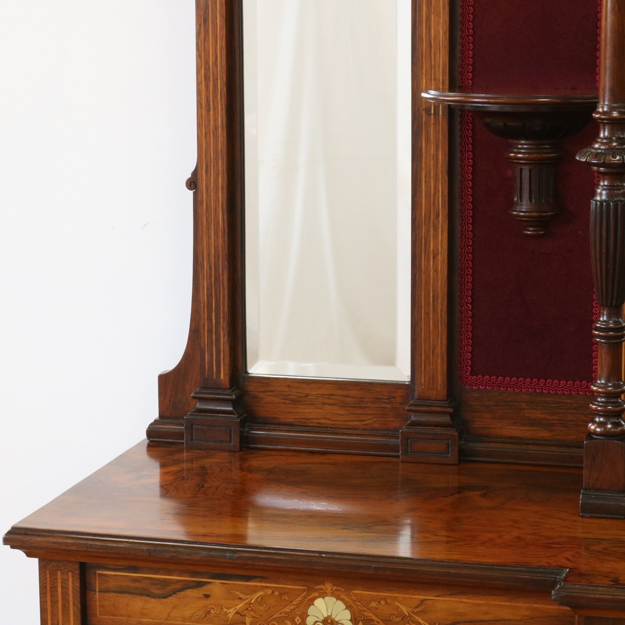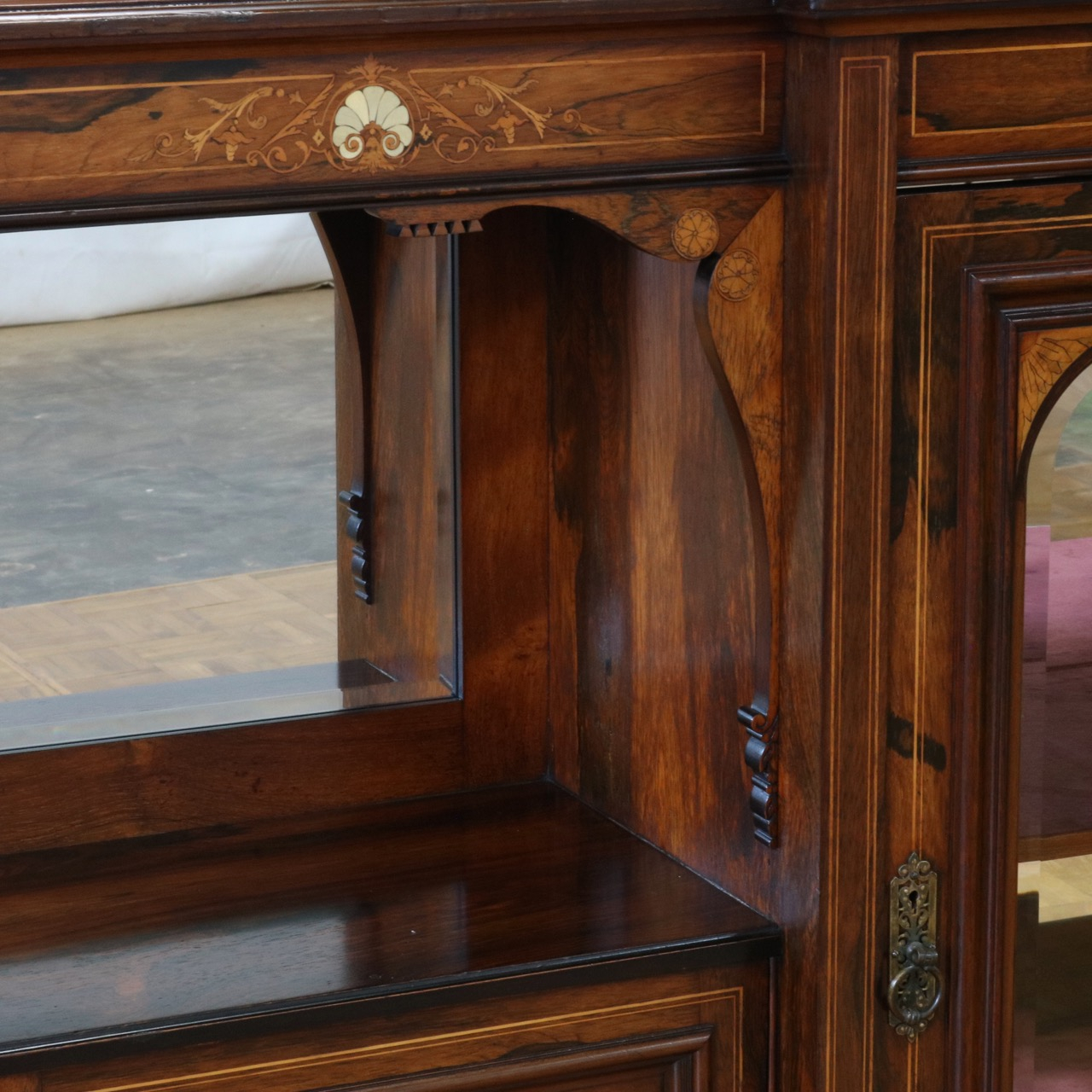 1900年代、希少なローズウッド材で製作されたミラーバックサイドボードです。