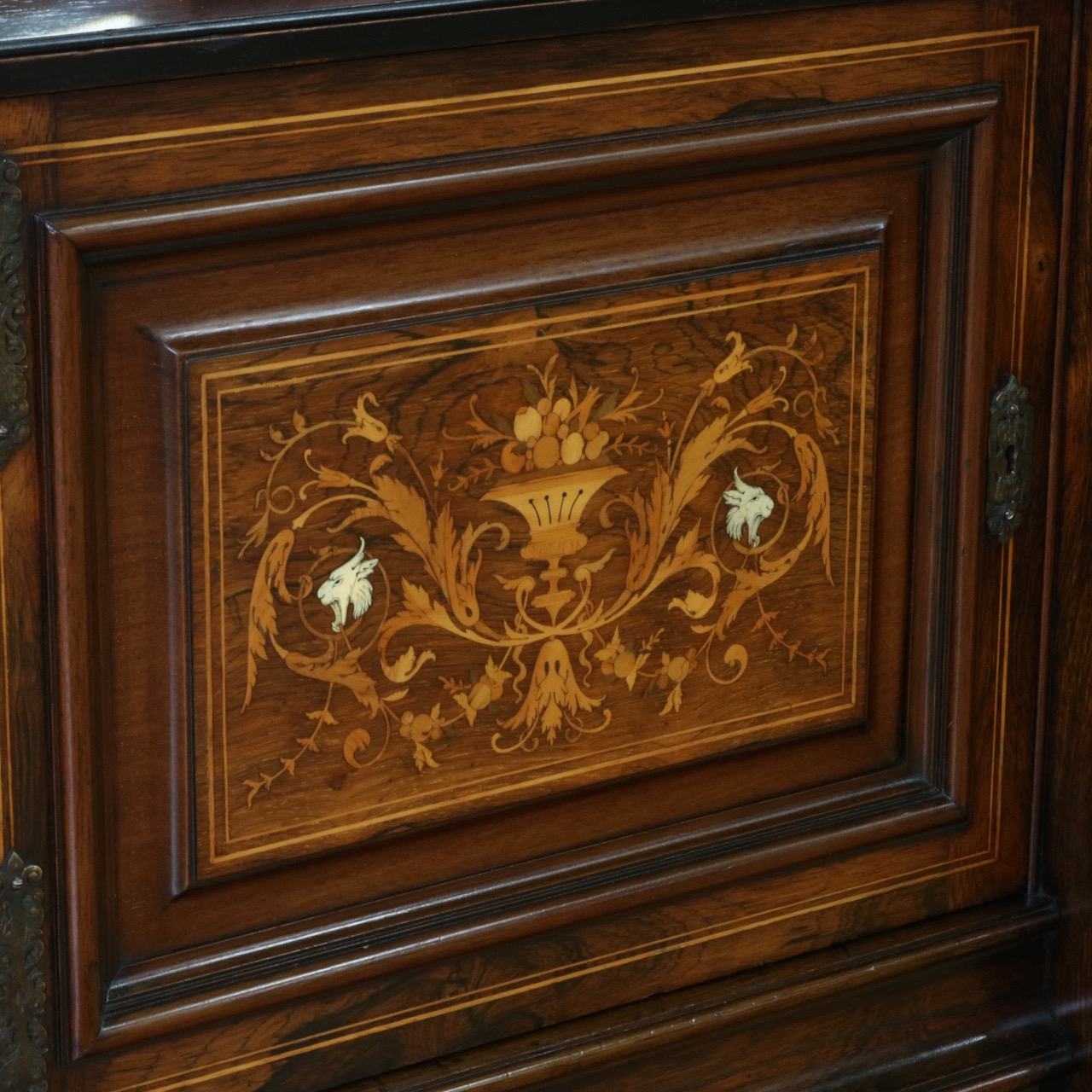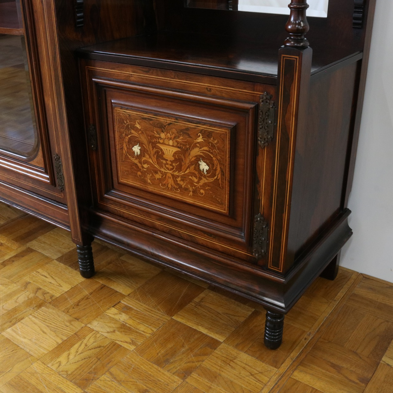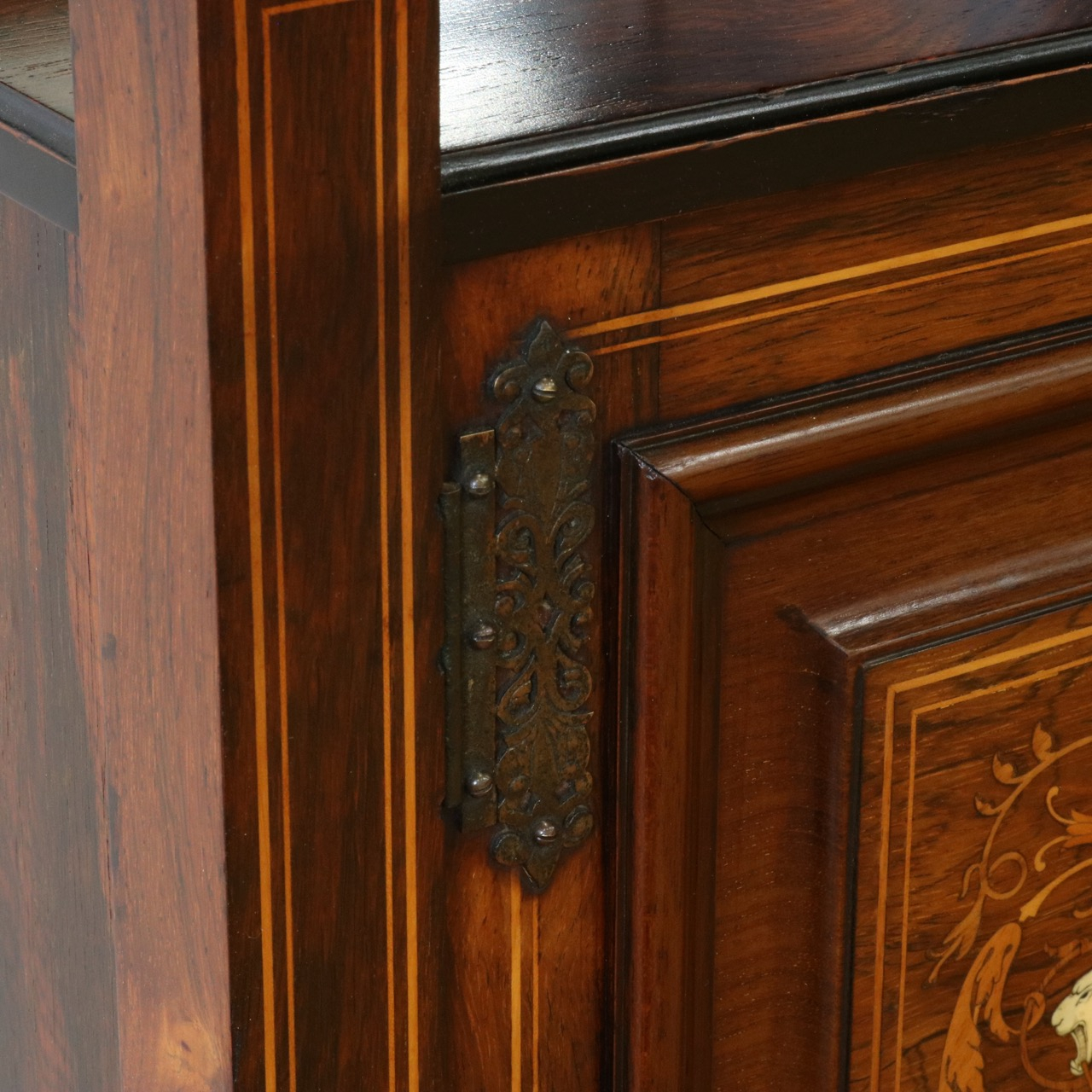 扉や幕板、パネル等に施されたインレイ細工は非常に細やかでクオリティの高い仕上がりです。