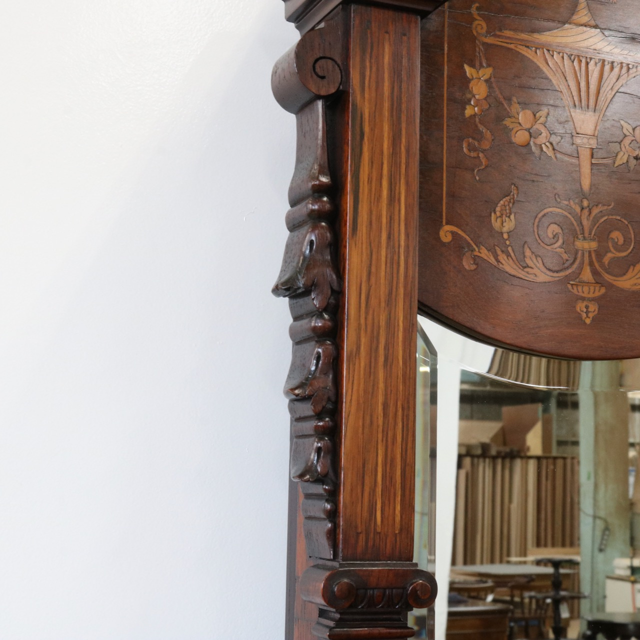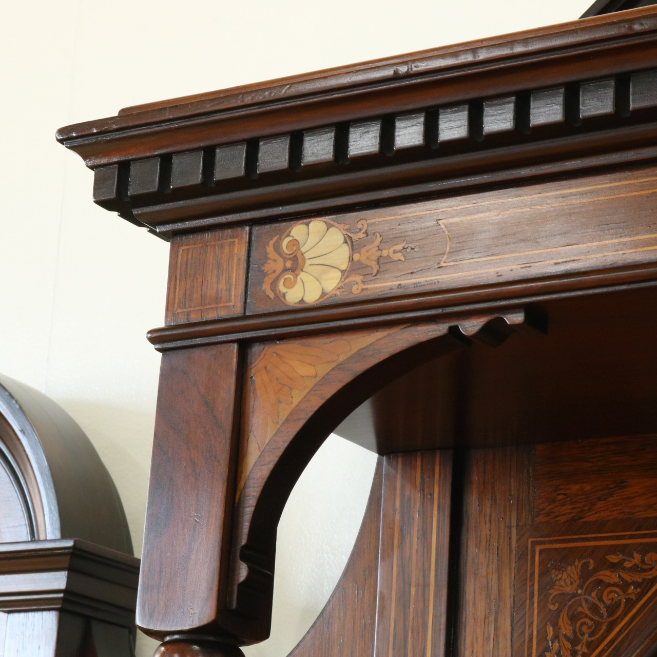 インレイの華やかさもさることながら、上部アーチ上のモールディンングも滑らかで美しい仕上がり。