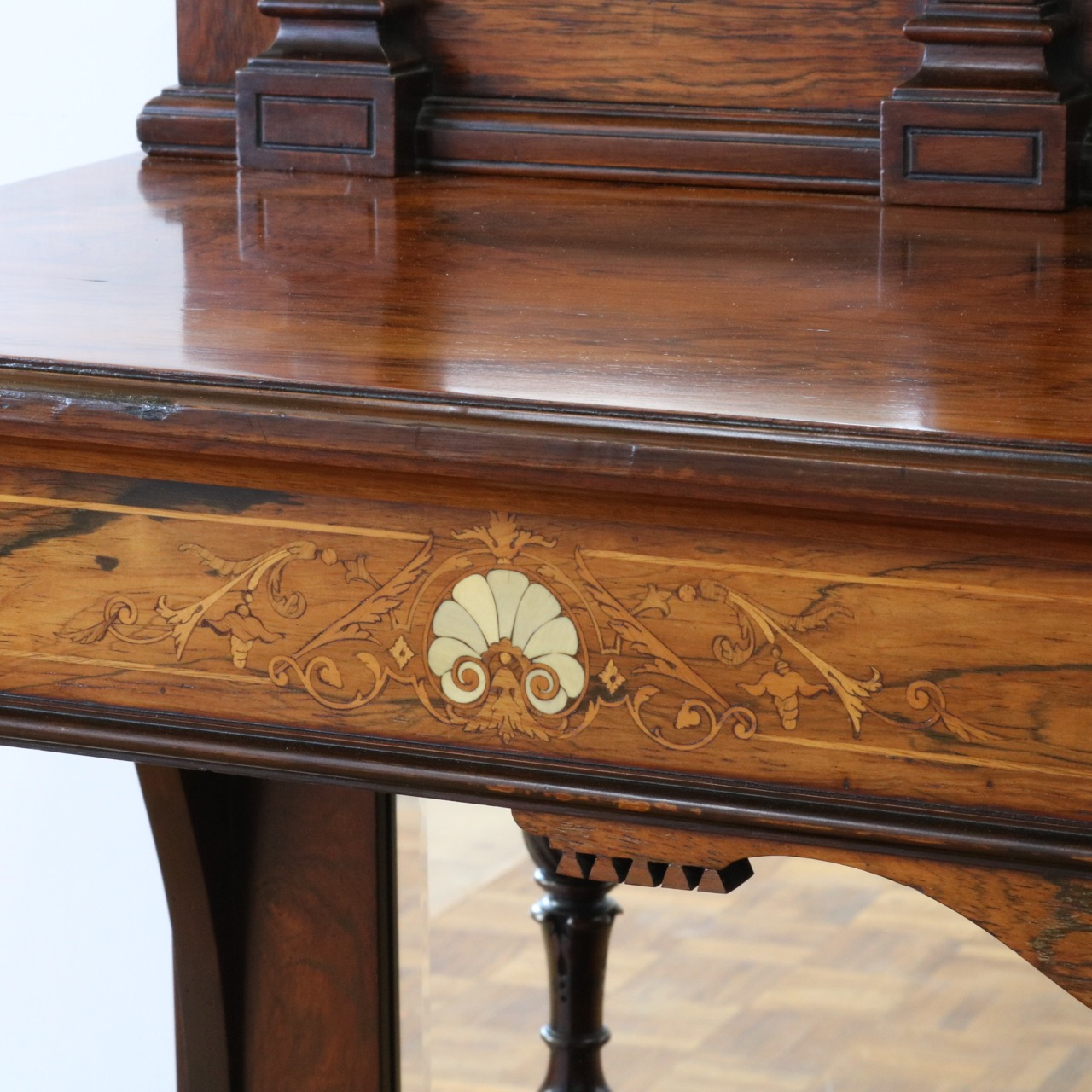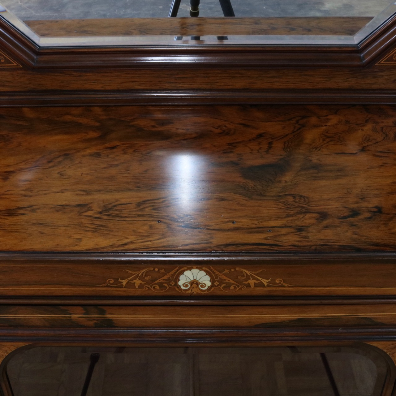 幕板部分にも細やかなインレイが。モチーフも上下で統一性があり、一貫したデザイン性が伺えます。