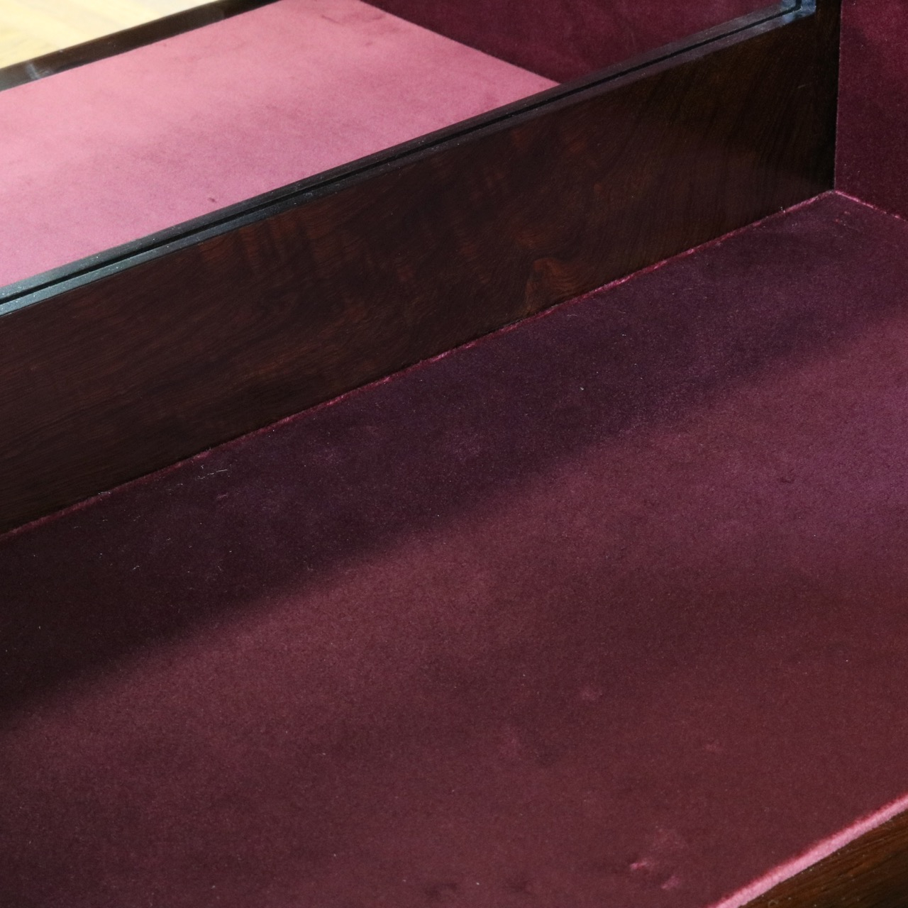 艶やかな光沢のある天板にはローズウッドの豊かな濃淡で美しい木目がよく表れています。