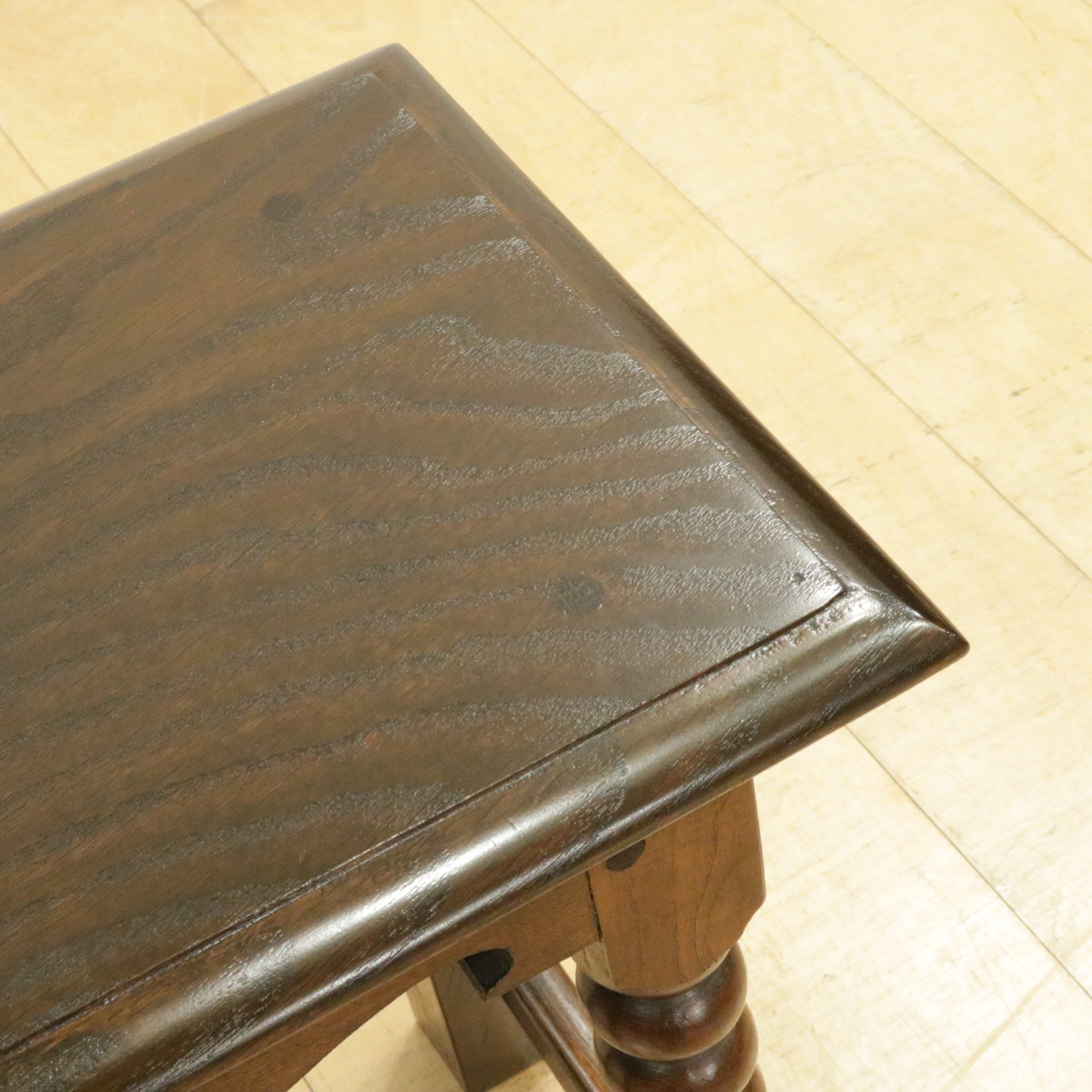 天板にはオーク材らしい大きな木目が見られます。