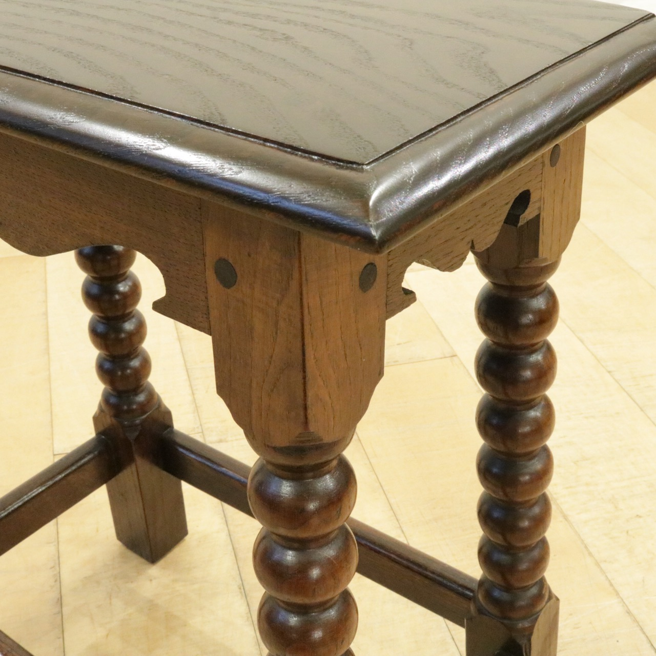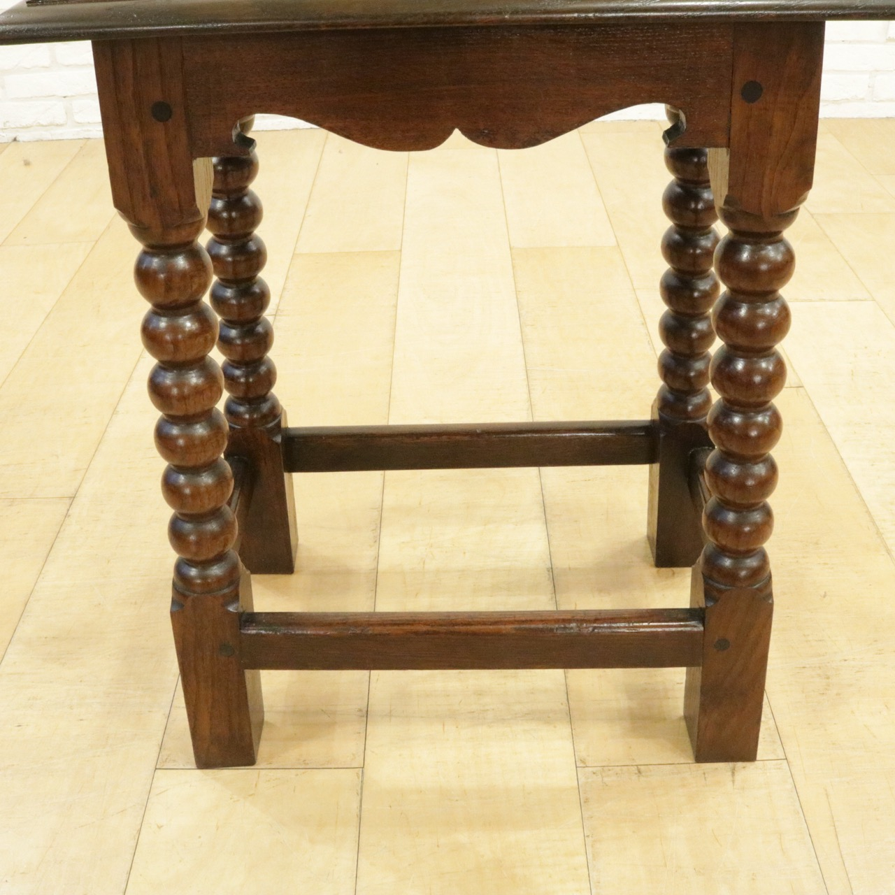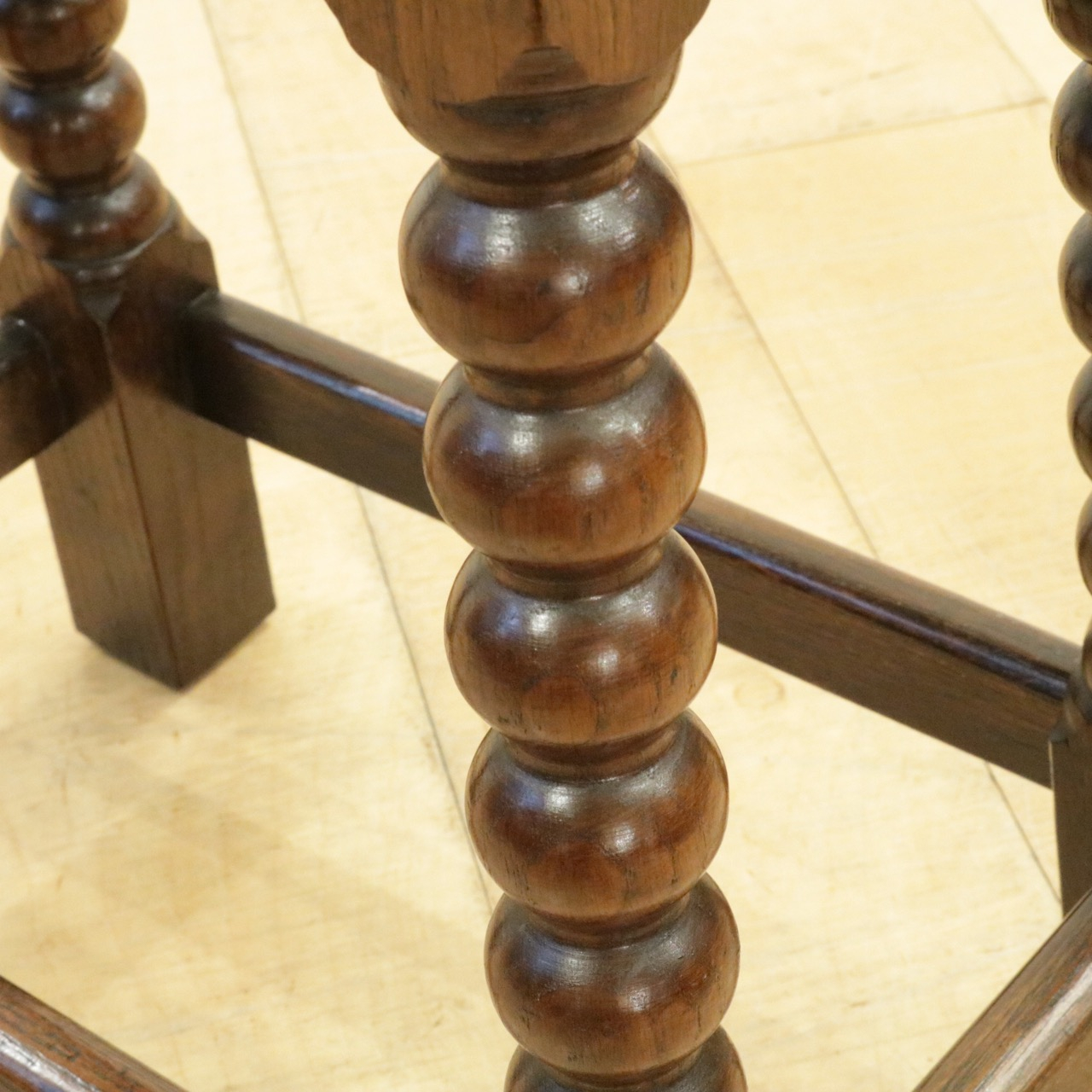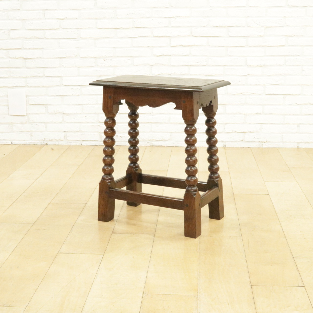 ボビンターニングの大きなお団子のような脚がチャーミングな、安定感のあるスツールです。