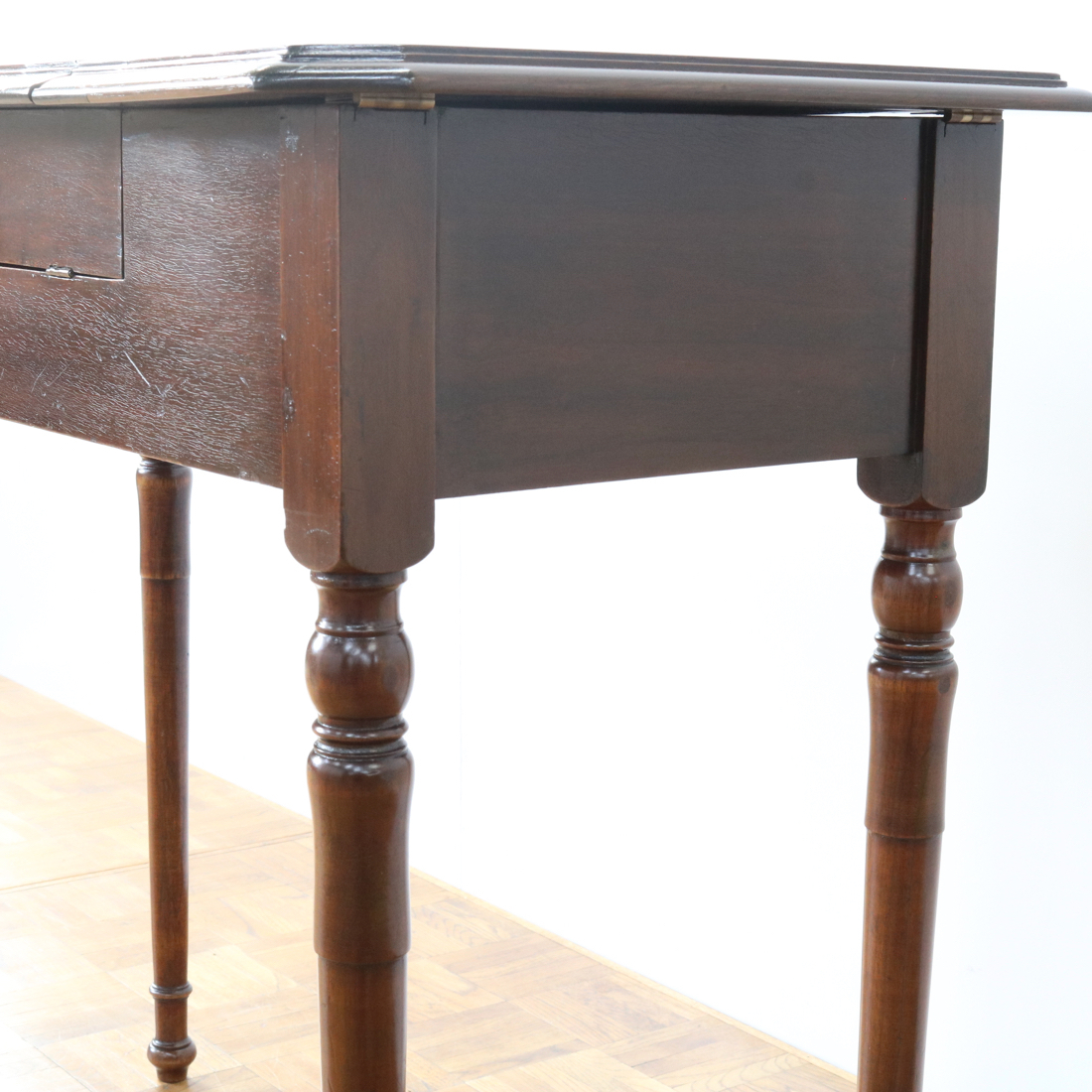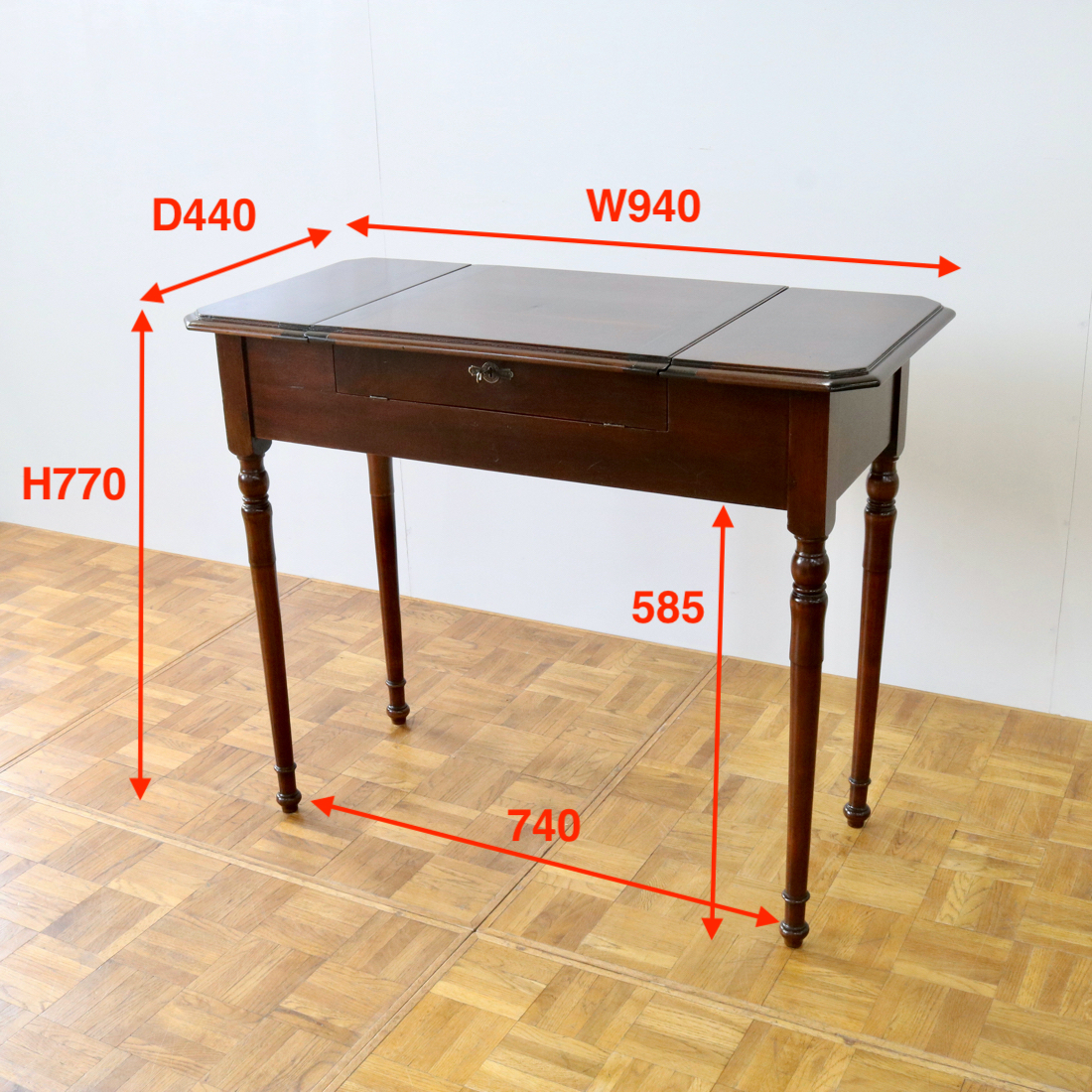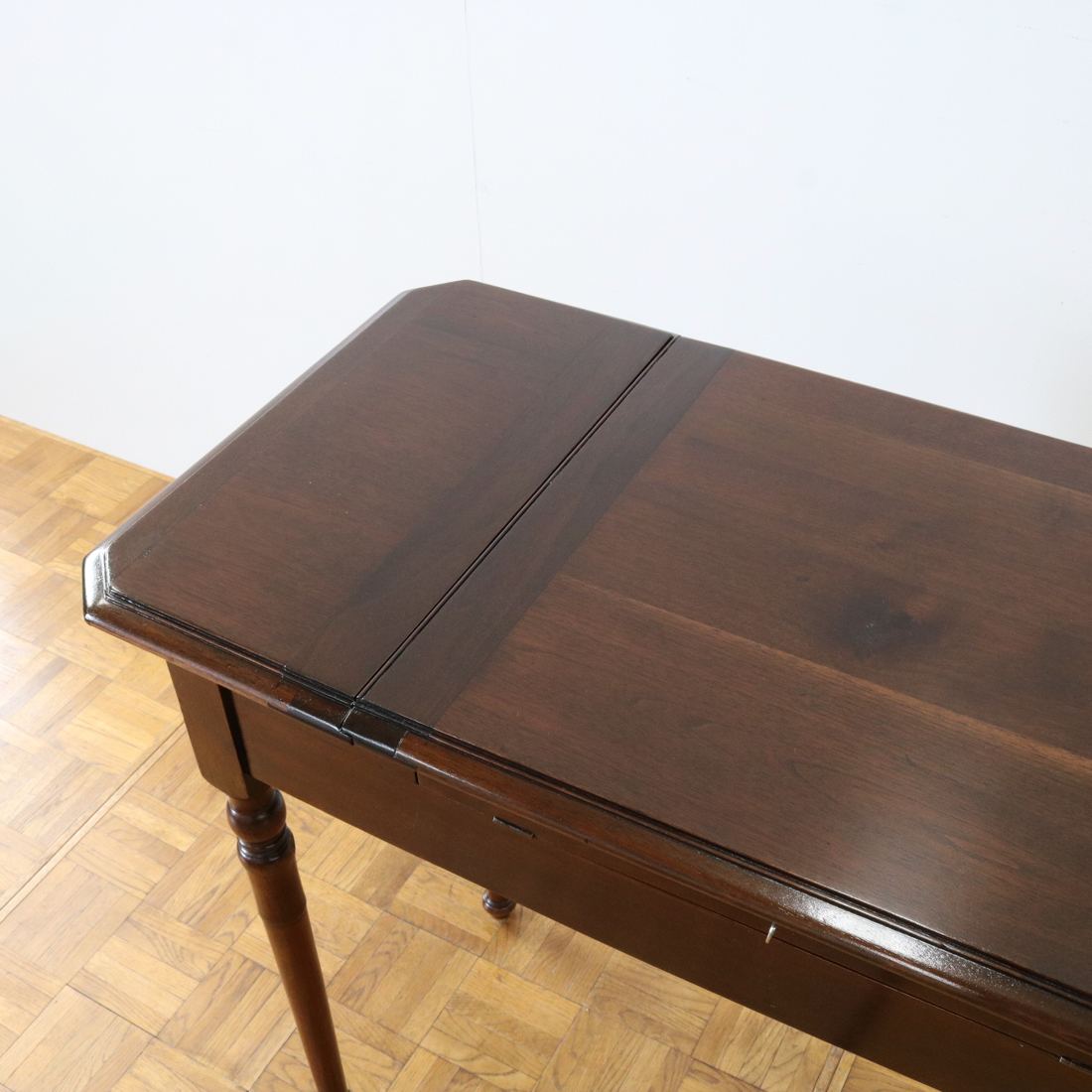 マホガニー材らしい赤みがかった艶やかな天板。