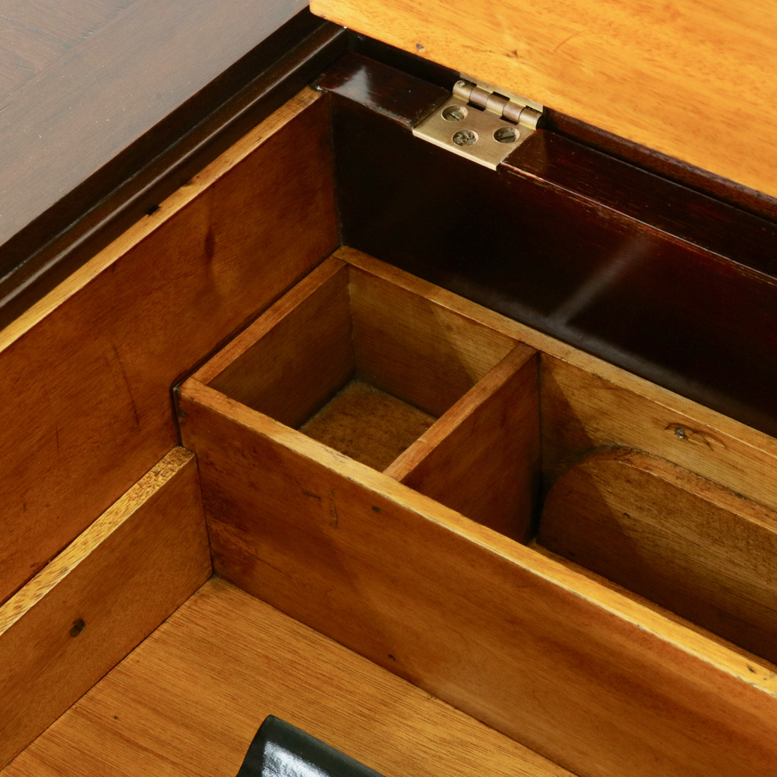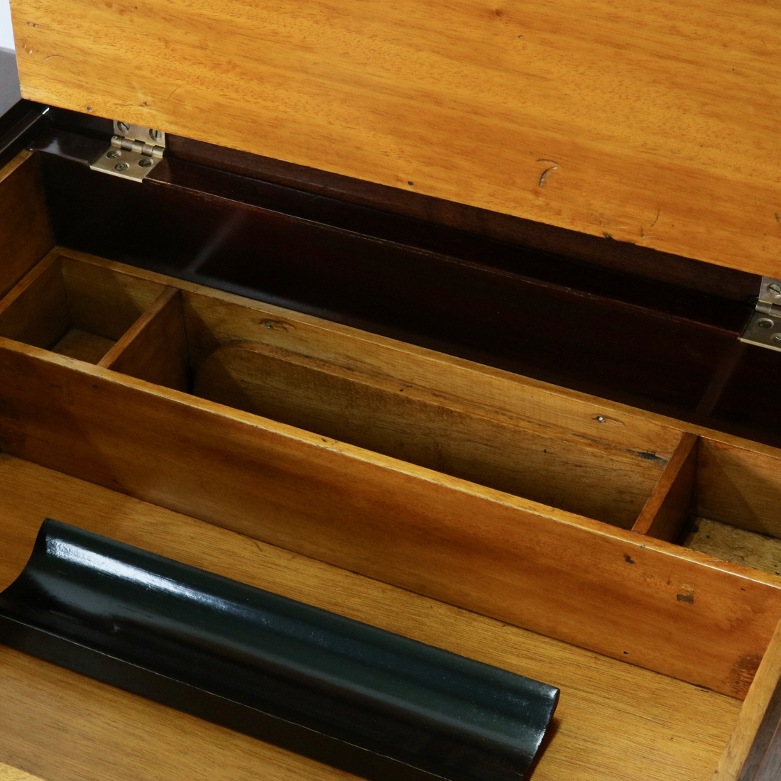 天板を開くと見える明るい色の材がアクセント。